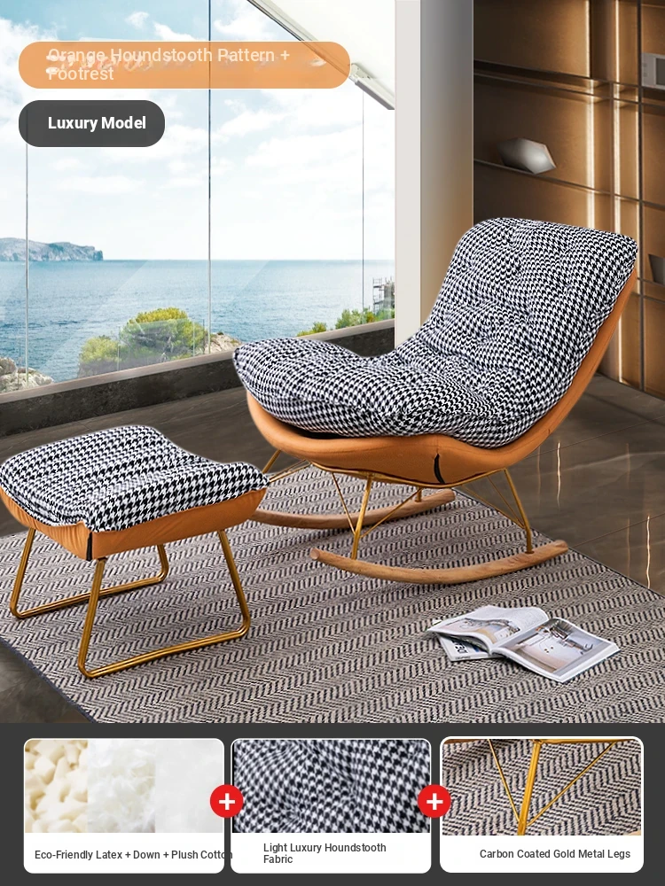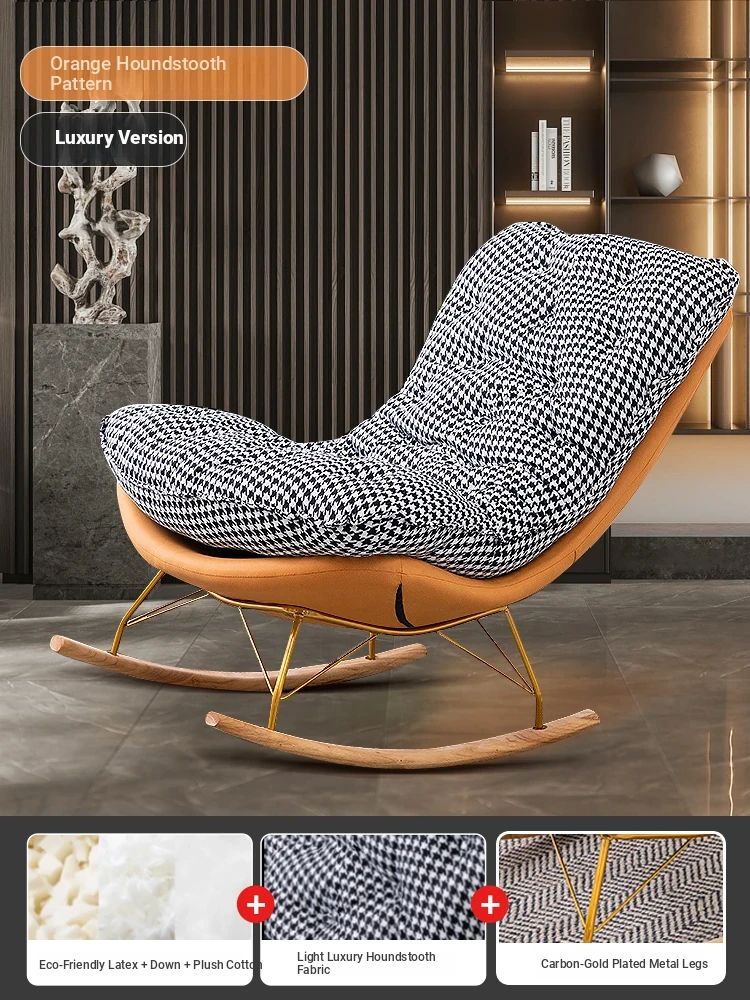 [Luxury Solid Wood Leg Quality + Foot Gold Leg] [Cotton and Linen] Orange Spell Houndstooth