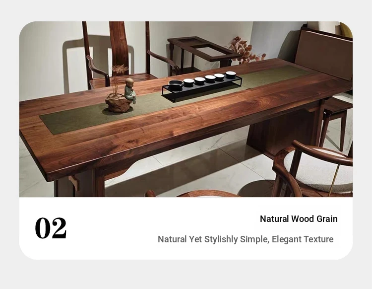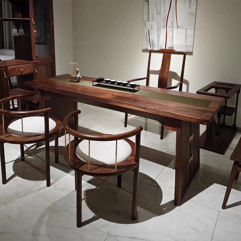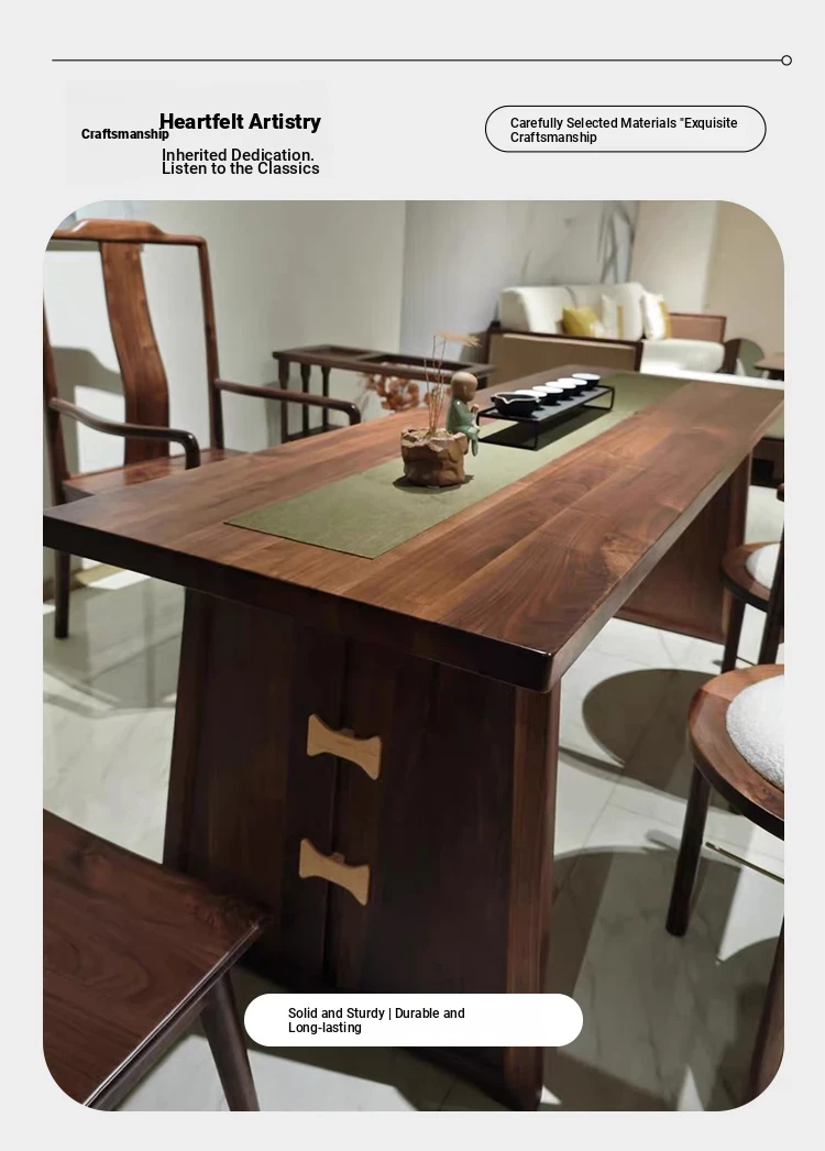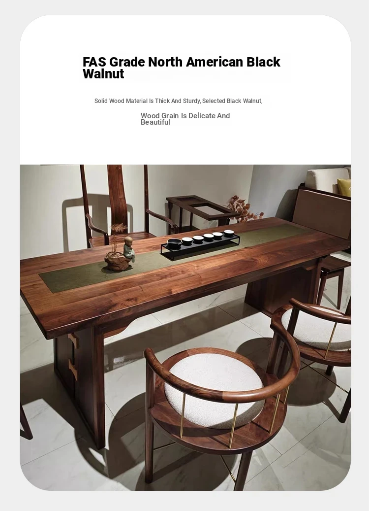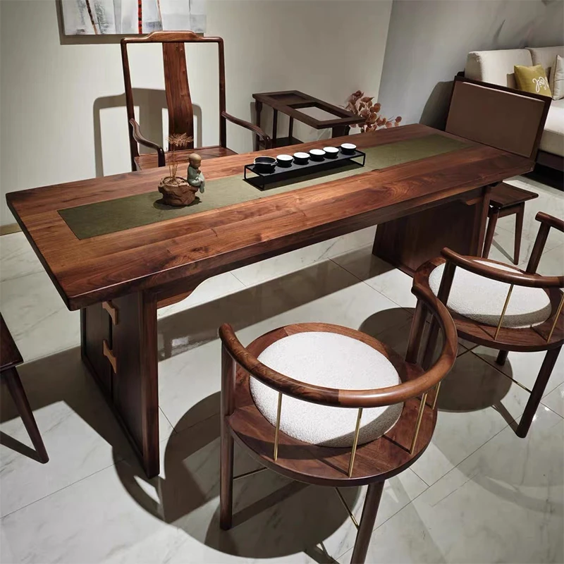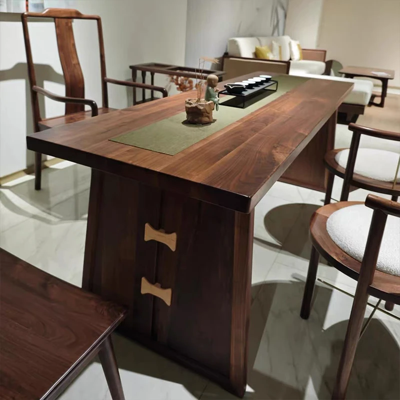 Versatile New Chinese Style Solid Wood Dining and Tea Table – Walnut Wood Coffee Table for Home and Office, Perfect for Tea Brewing and Entertaining Guests