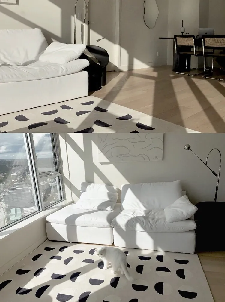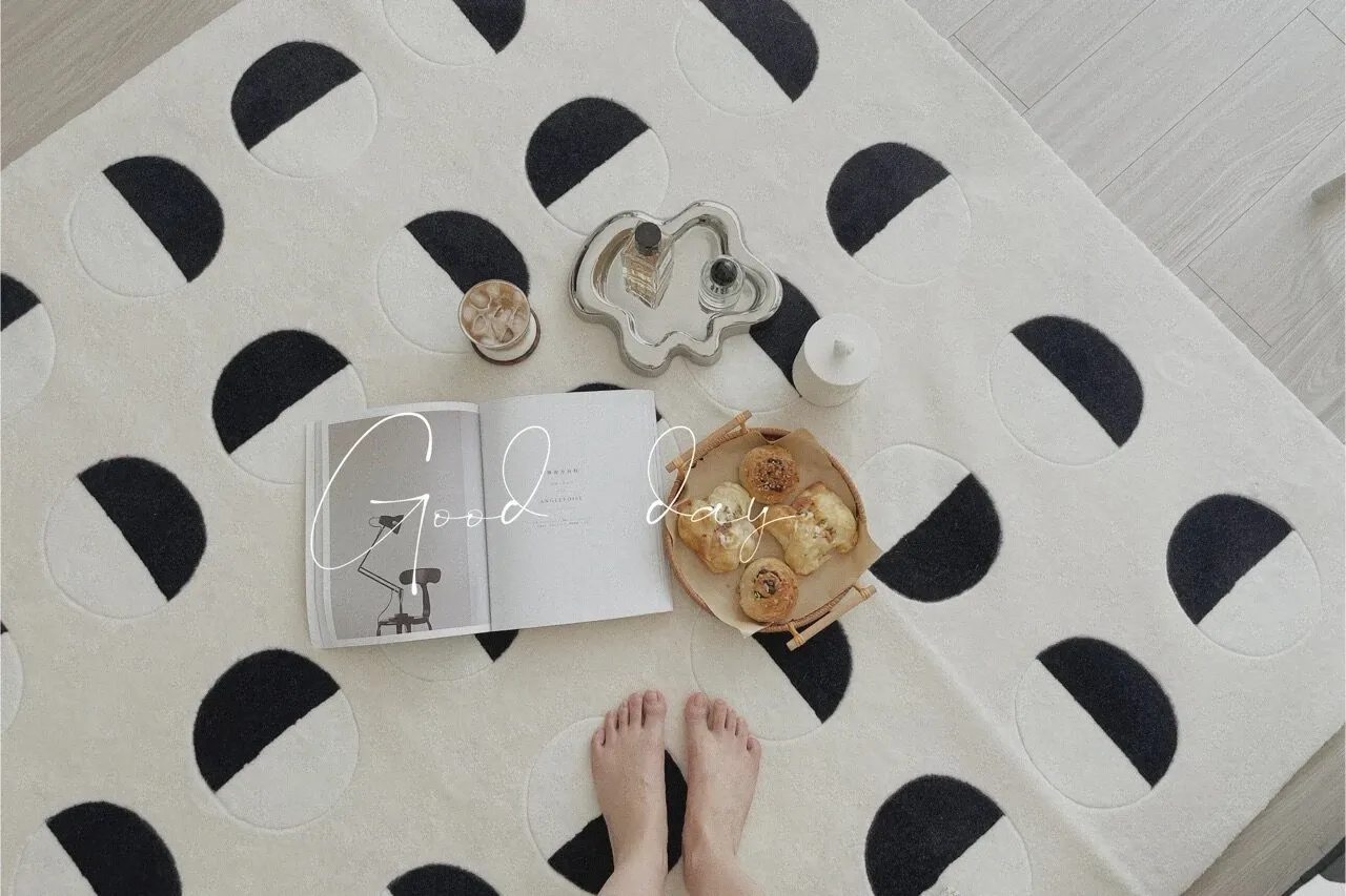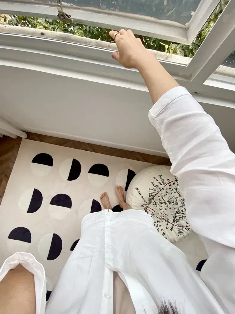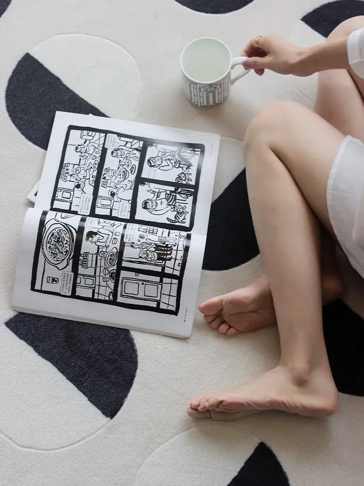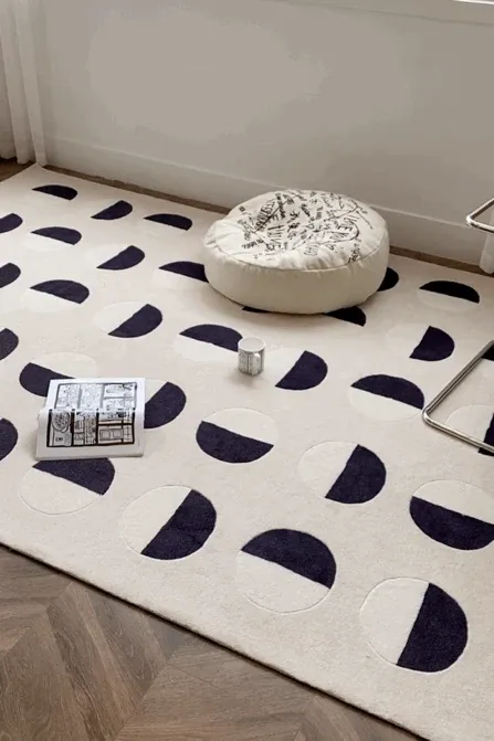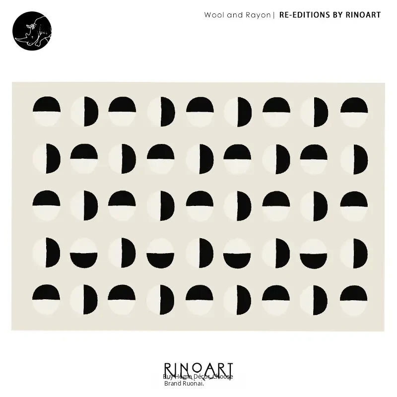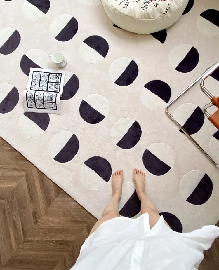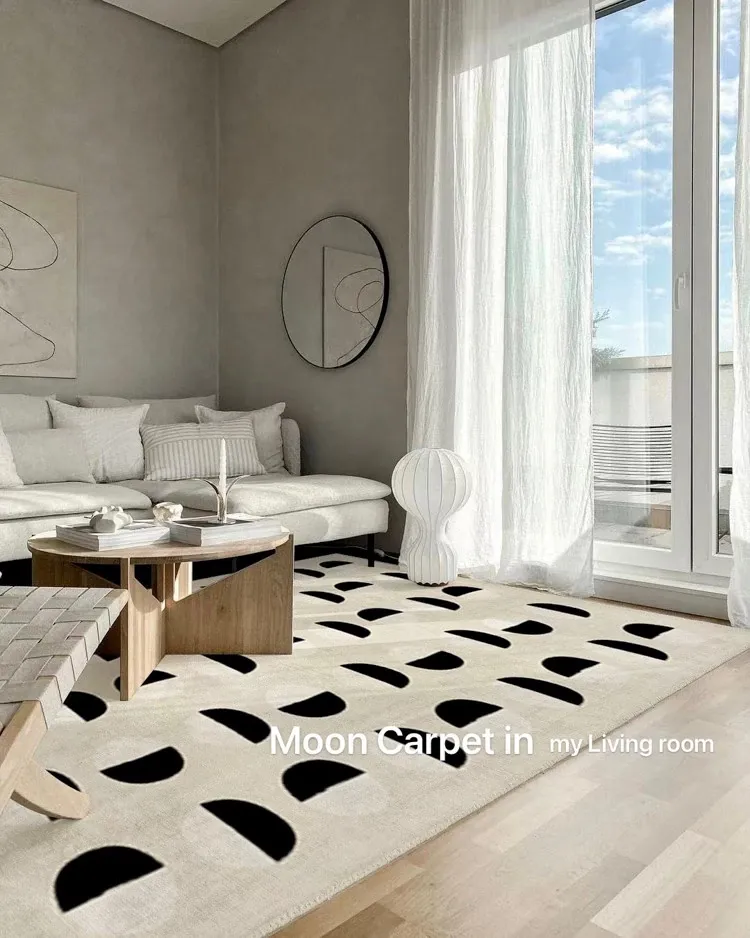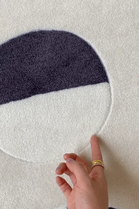 Younai MOONWALL Cream Black and White Moon Carpet - Handcrafted Inlaid 3D Design for Bedroom and Living Room, Perfect for Bedside Decor