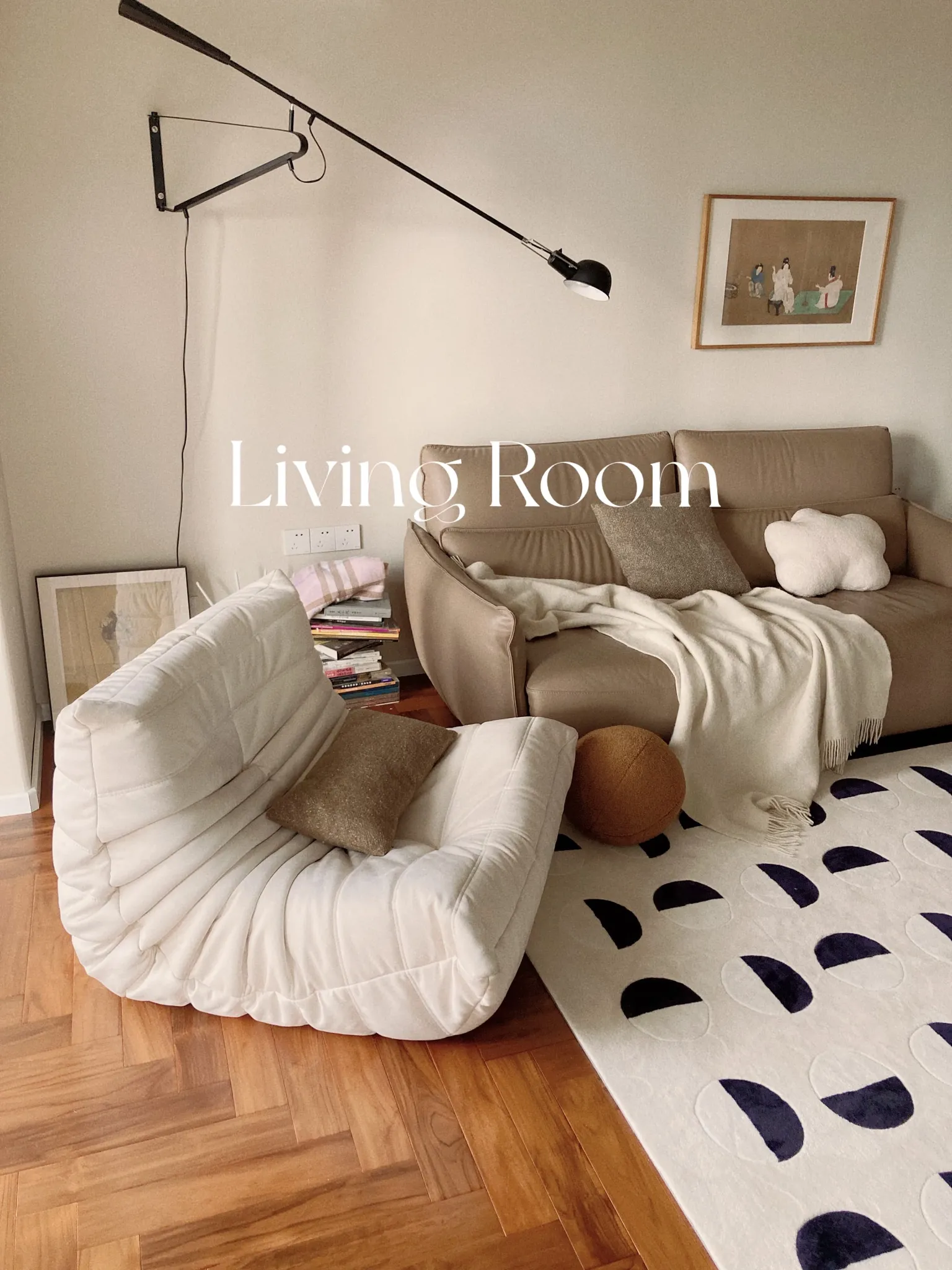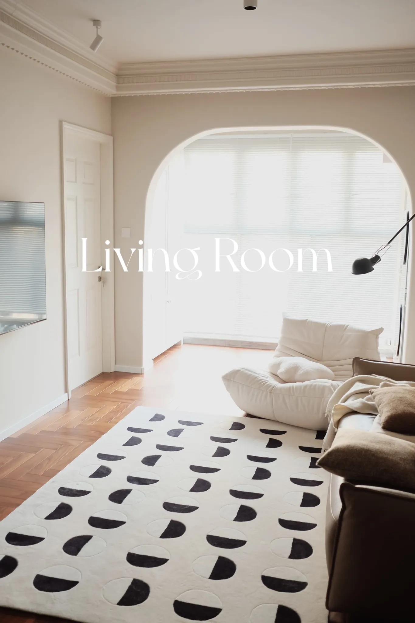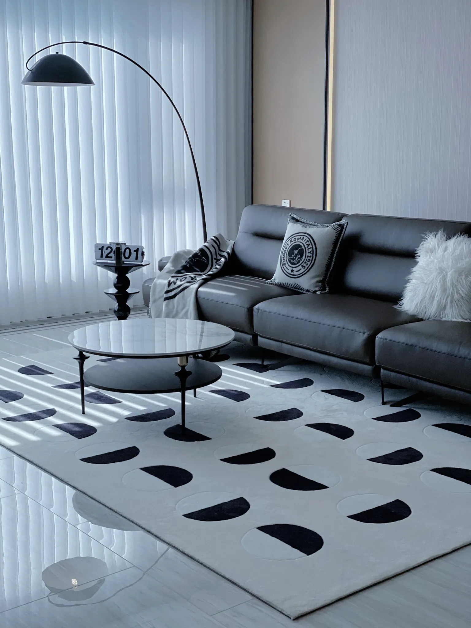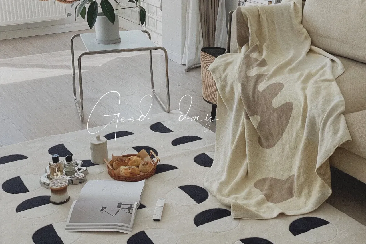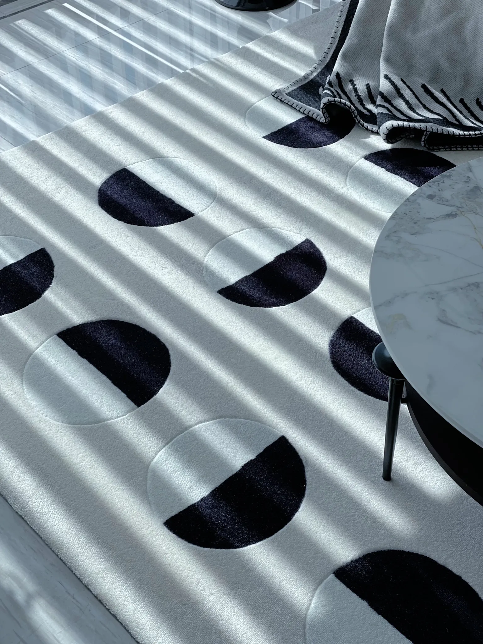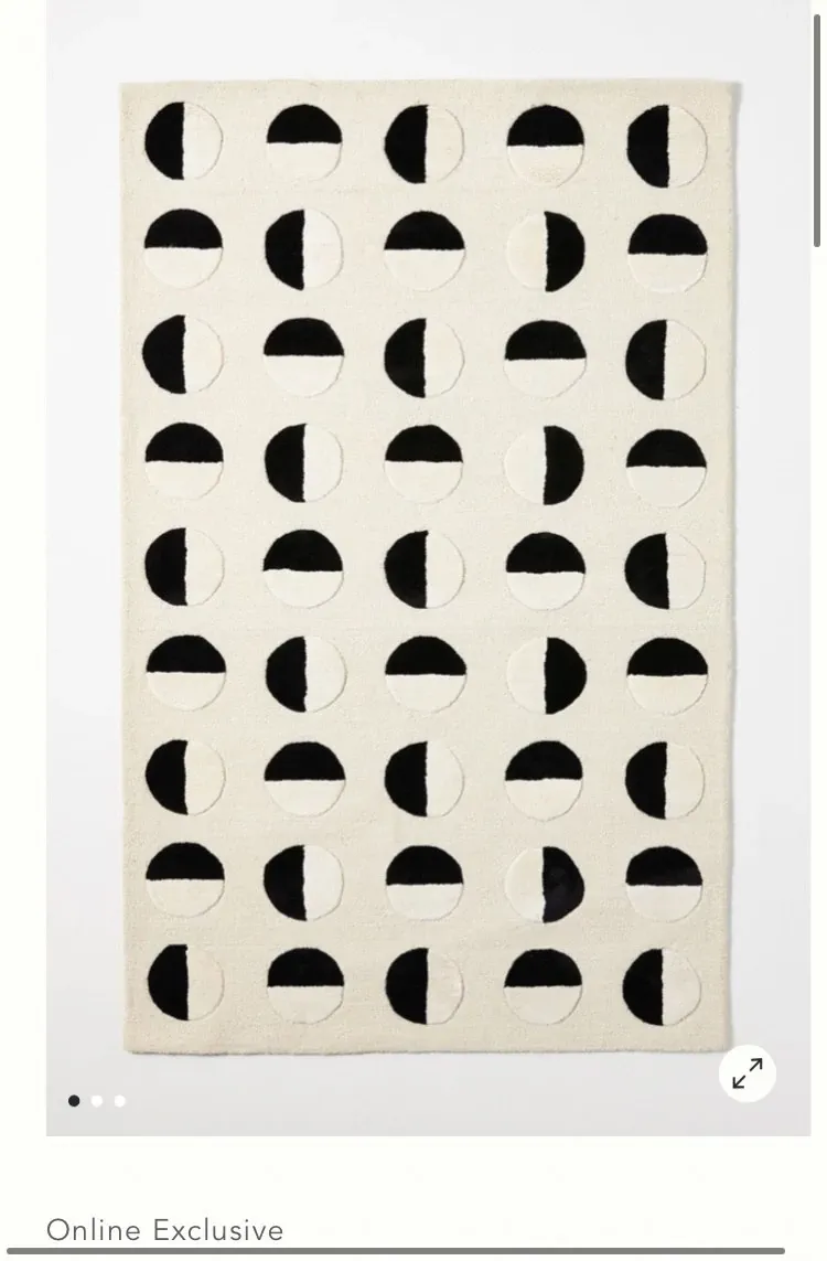 Younai MOONWALL Cream Black and White Moon Carpet - Handcrafted Inlaid 3D Design for Bedroom and Living Room, Perfect for Bedside Decor