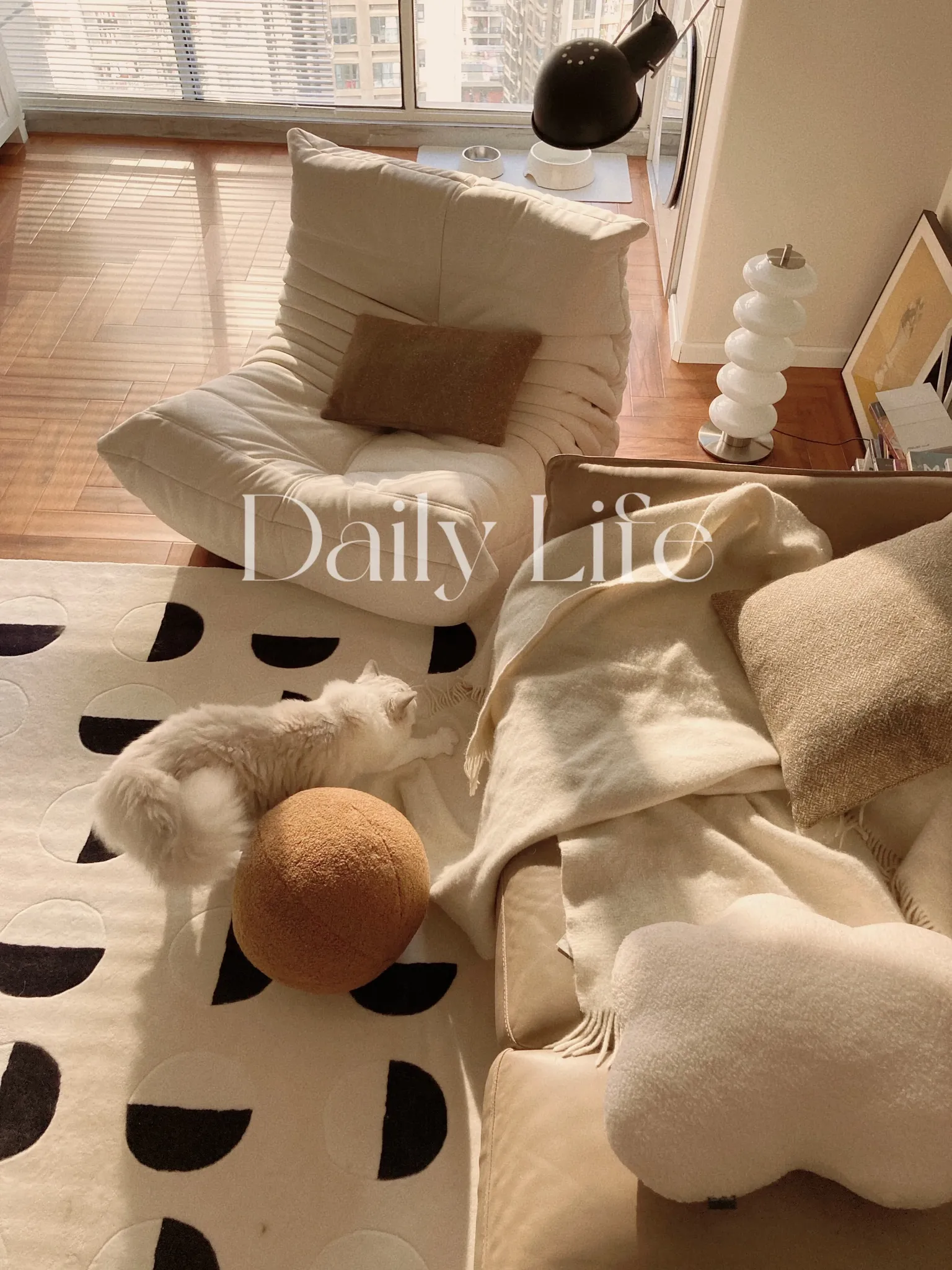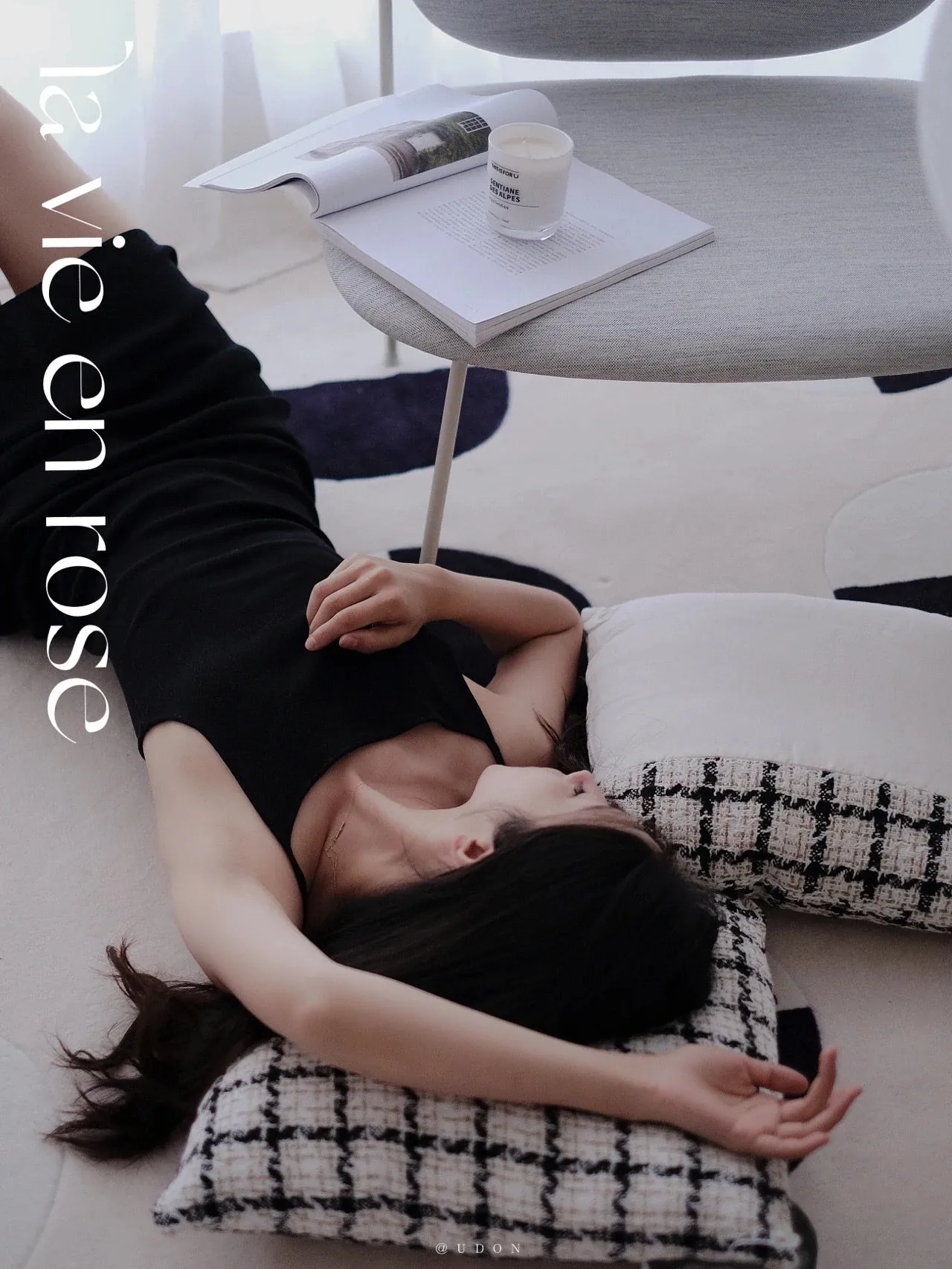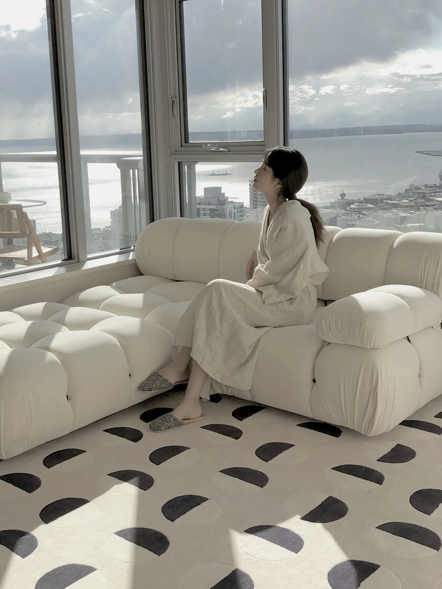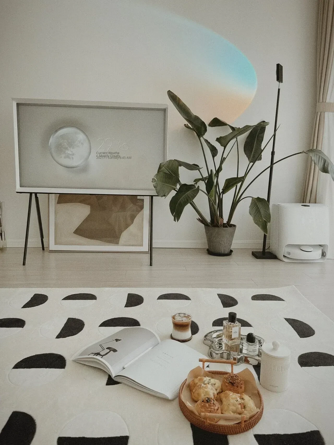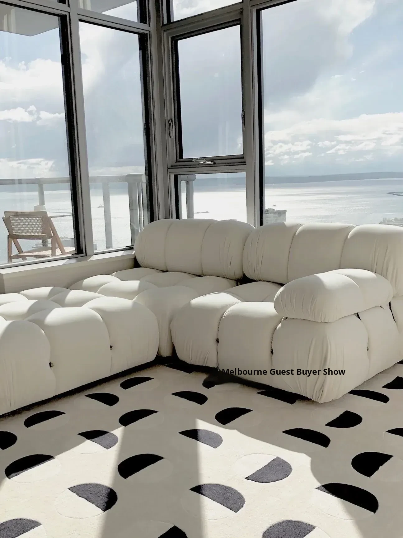 Younai MOONWALL Cream Black and White Moon Carpet - Handcrafted Inlaid 3D Design for Bedroom and Living Room, Perfect for Bedside Decor