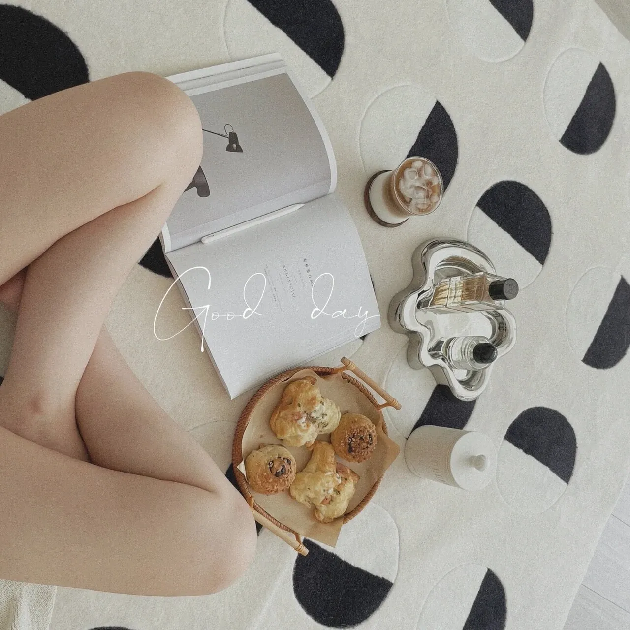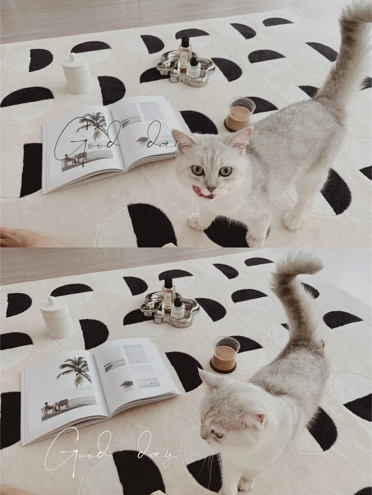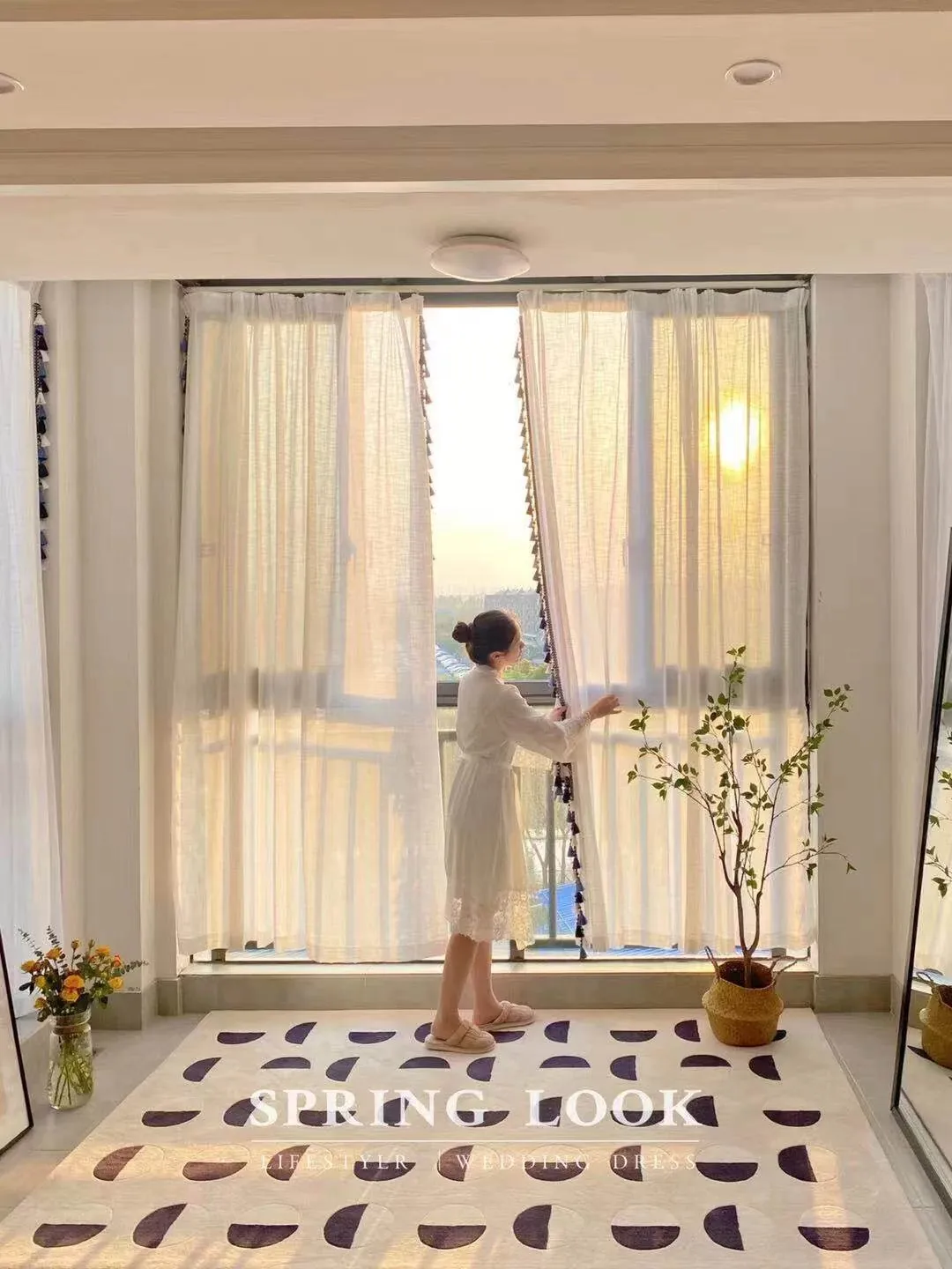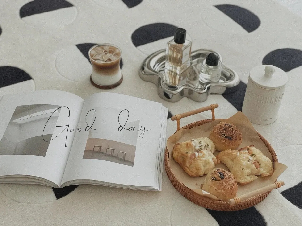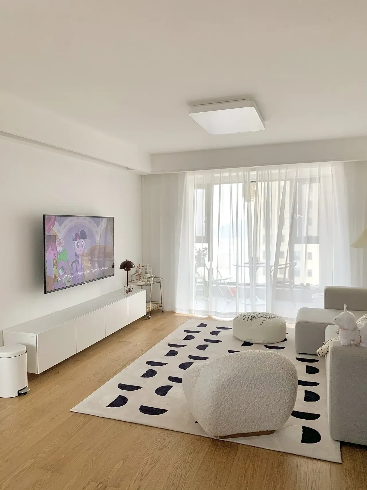 Younai MOONWALL Cream Black and White Moon Carpet - Handcrafted Inlaid 3D Design for Bedroom and Living Room, Perfect for Bedside Decor