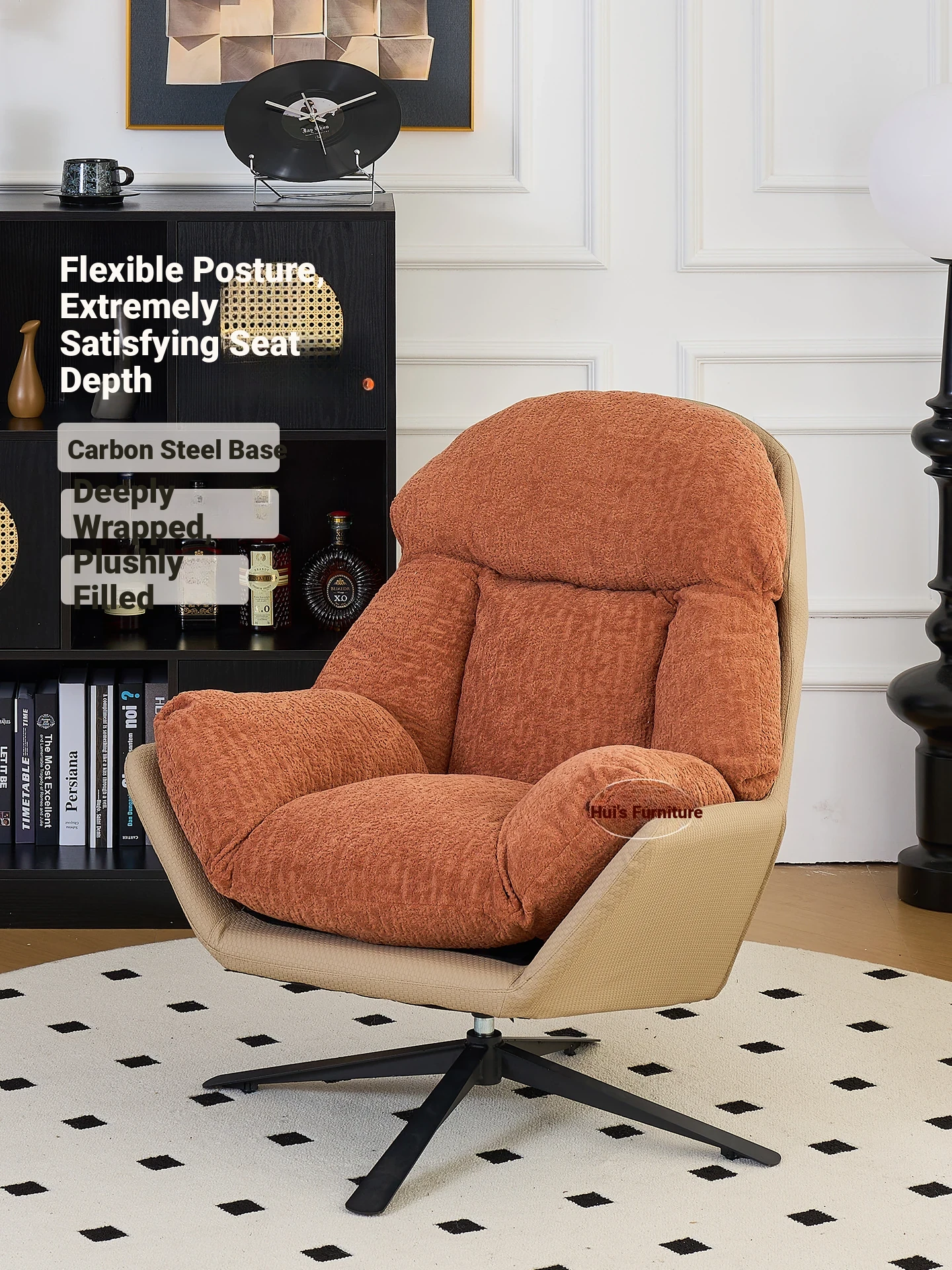 Modern Minimalist Lazy Chair - Trendy Rotating Snail Armchair for Living Room and Balcony, Plush Genuine Leather Single Sofa for Ultimate Comfort and Style