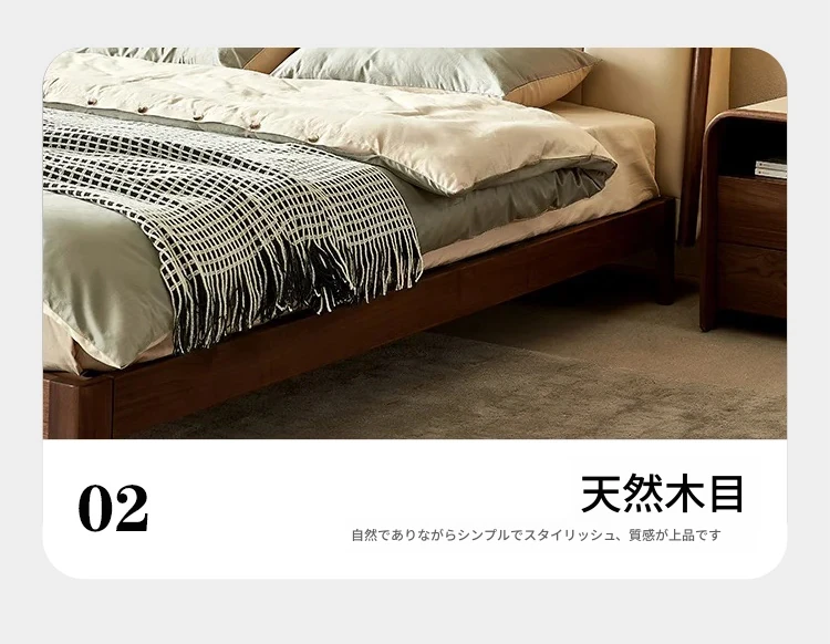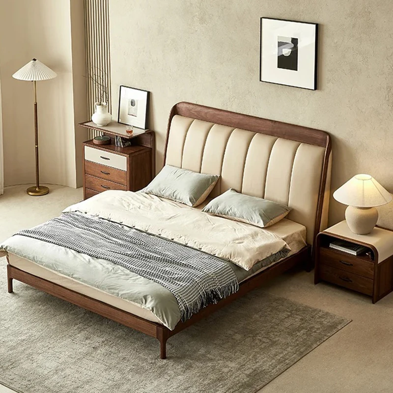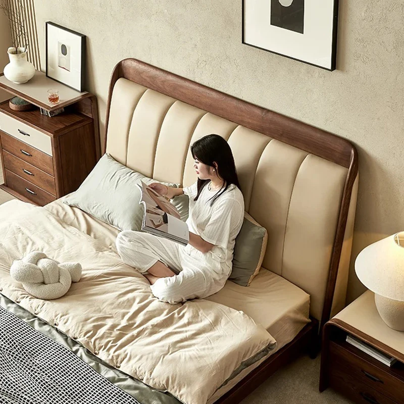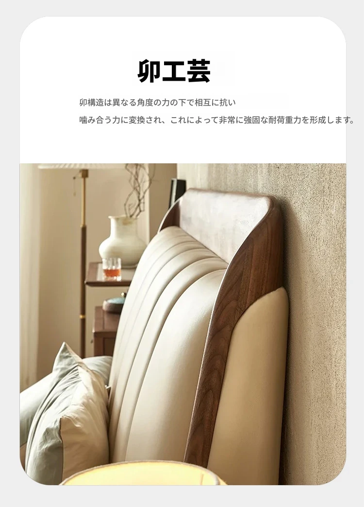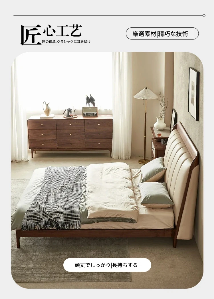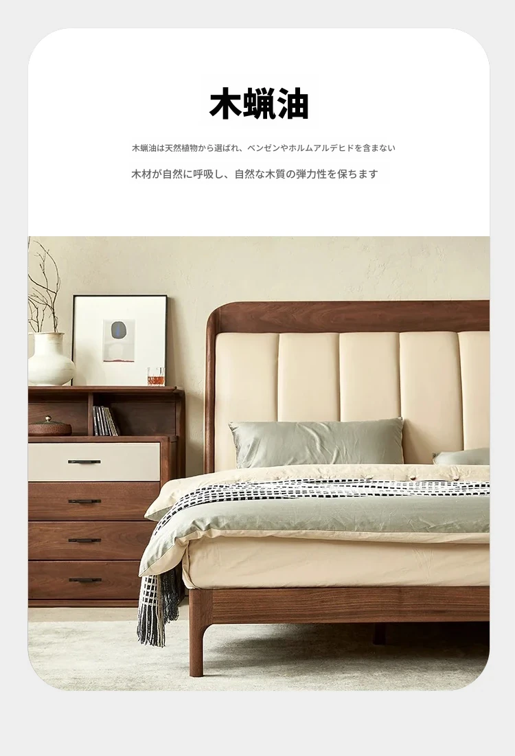 1.8m軽奢ソフトパッケージベッド 皮革調 ダブルベッド 2025年新作 ウォールナット材 主寝室にぴったりなモダンシンプルデザイン!快適な睡眠空間を実現!