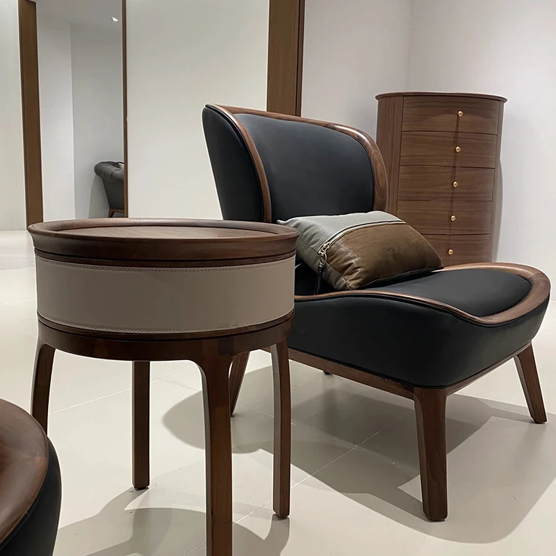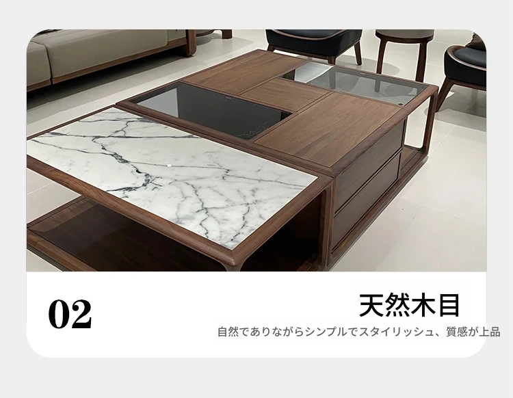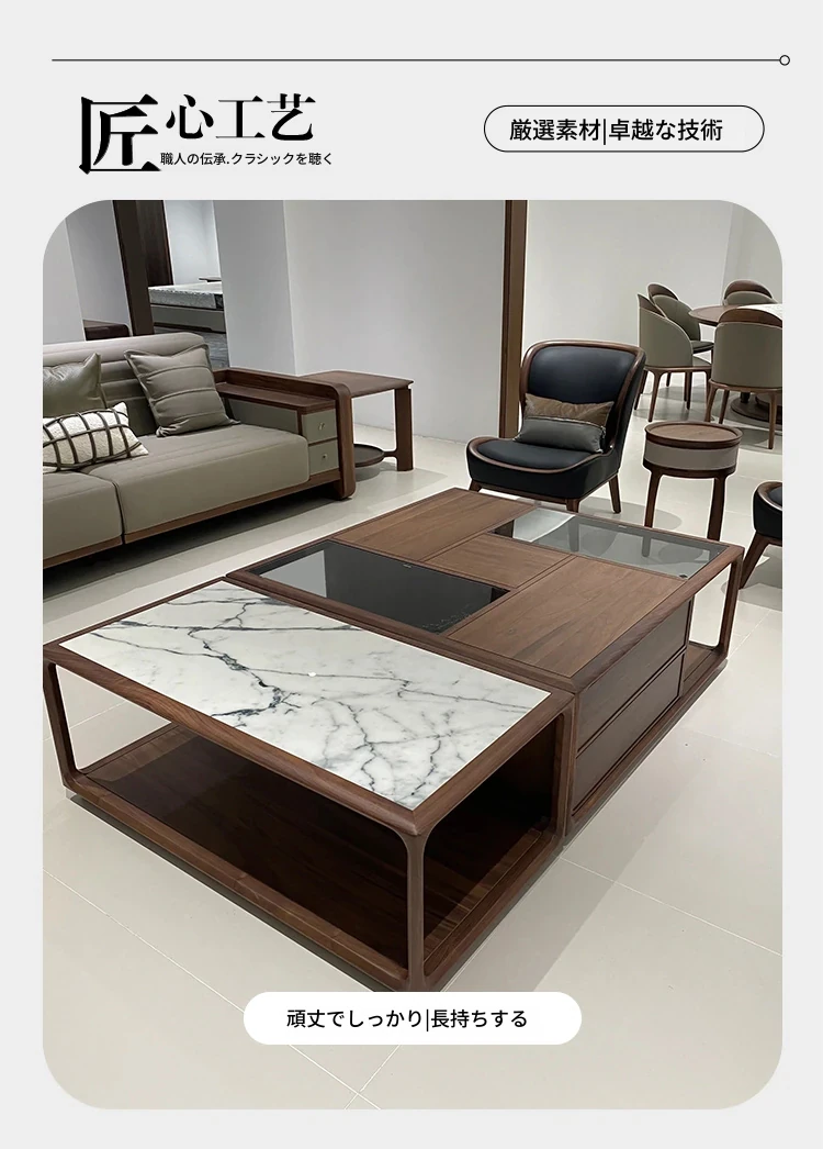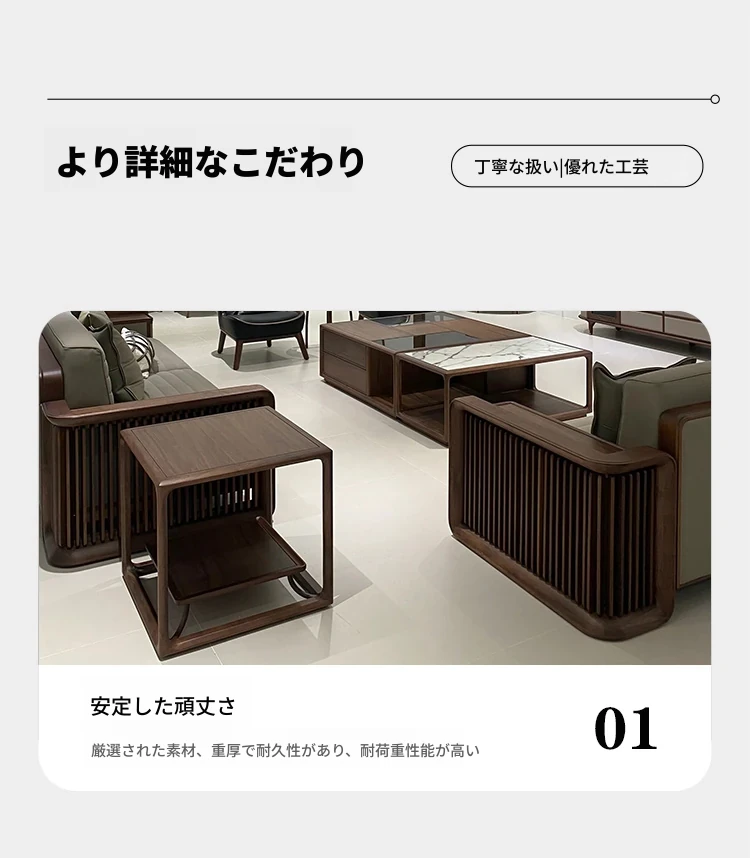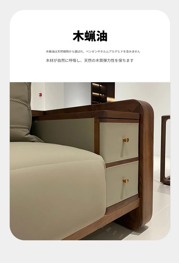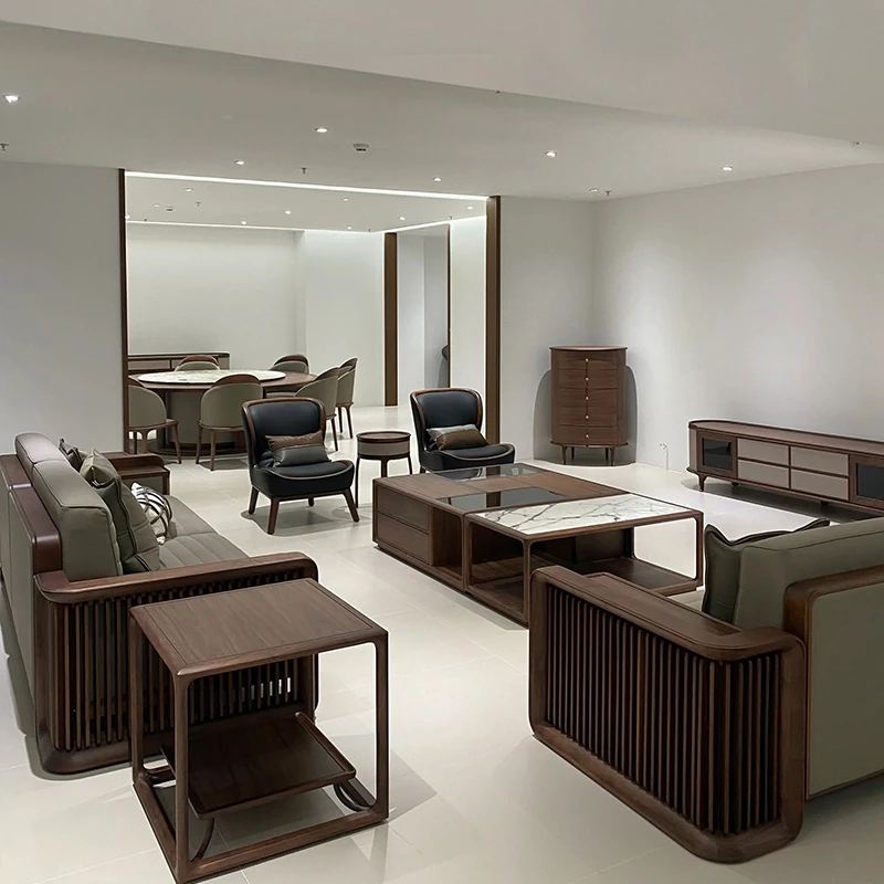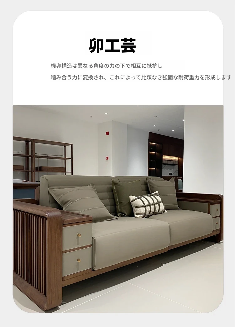 2025年新作!大空间向けリビングソファ - 高級中式デザイン、実木とレザーのコンビネーション、ビラに最適なクルミ材使用!お客様をお迎えするための上質な空間を演出します。