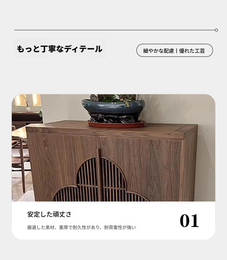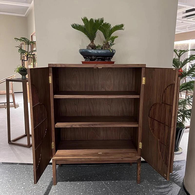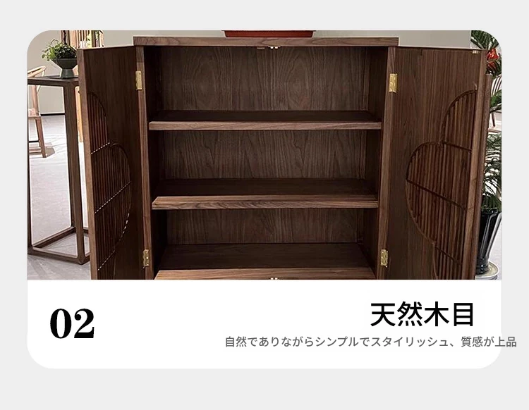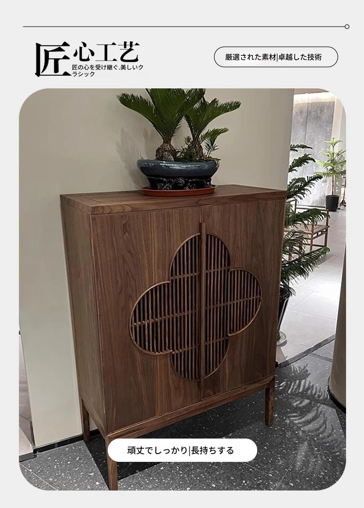 新中式実木製サイドキャビネット2025年新作!モダンでシンプルなデザイン、リビングルームやダイニングルームにぴったり。収納力抜群の便利なシューズキャビネットとしても使用可能!