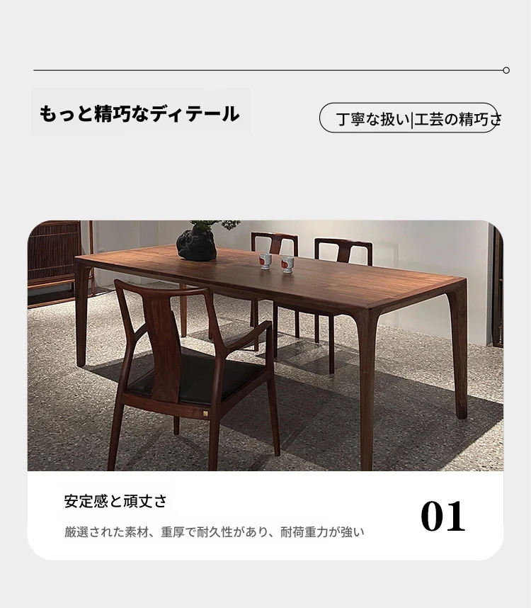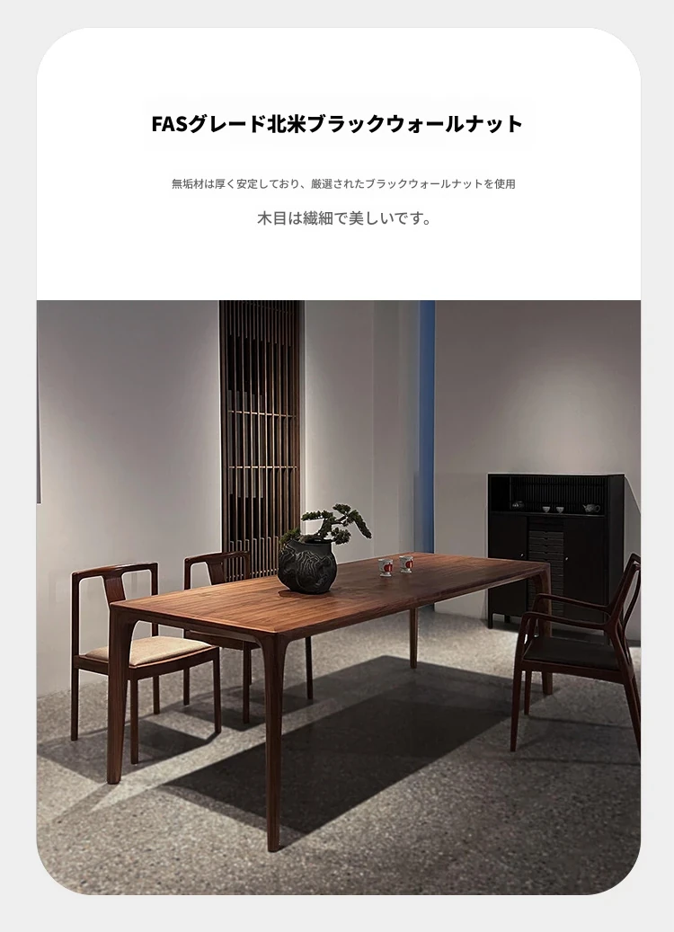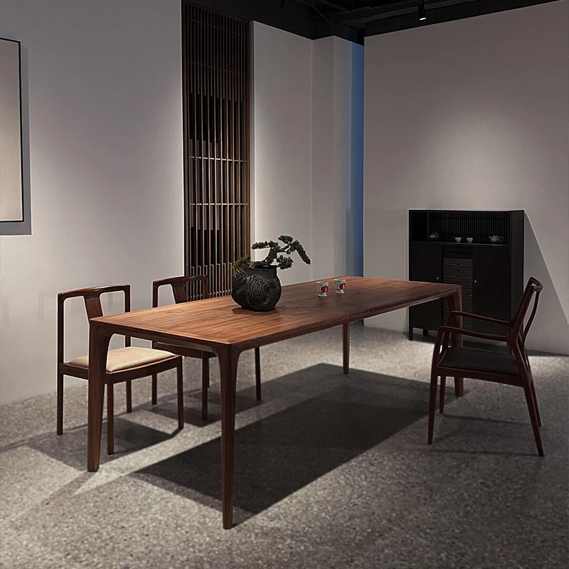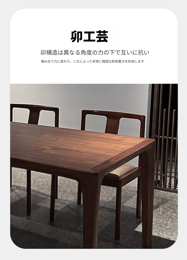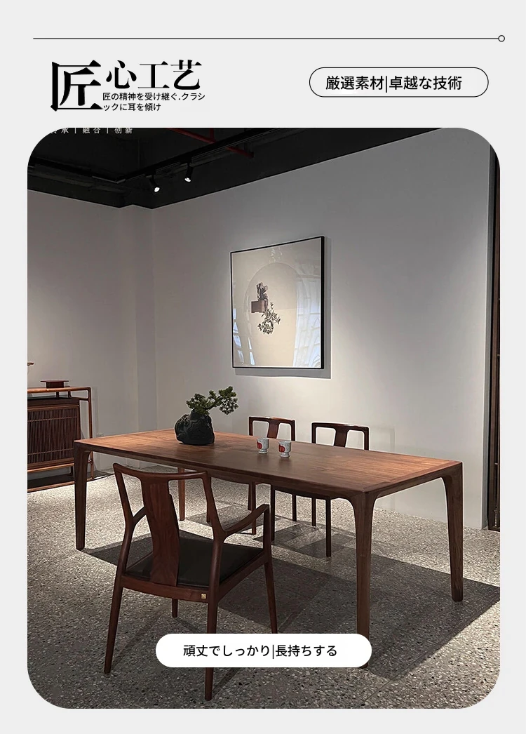 2025年新作!新中式スタイルの無垢材ティーテーブル - モダンでシンプルなデザイン、リビングルームにぴったりなクルミ材のダイニングテーブル&チェアセット!おしゃれで心地よい空間を演出します。