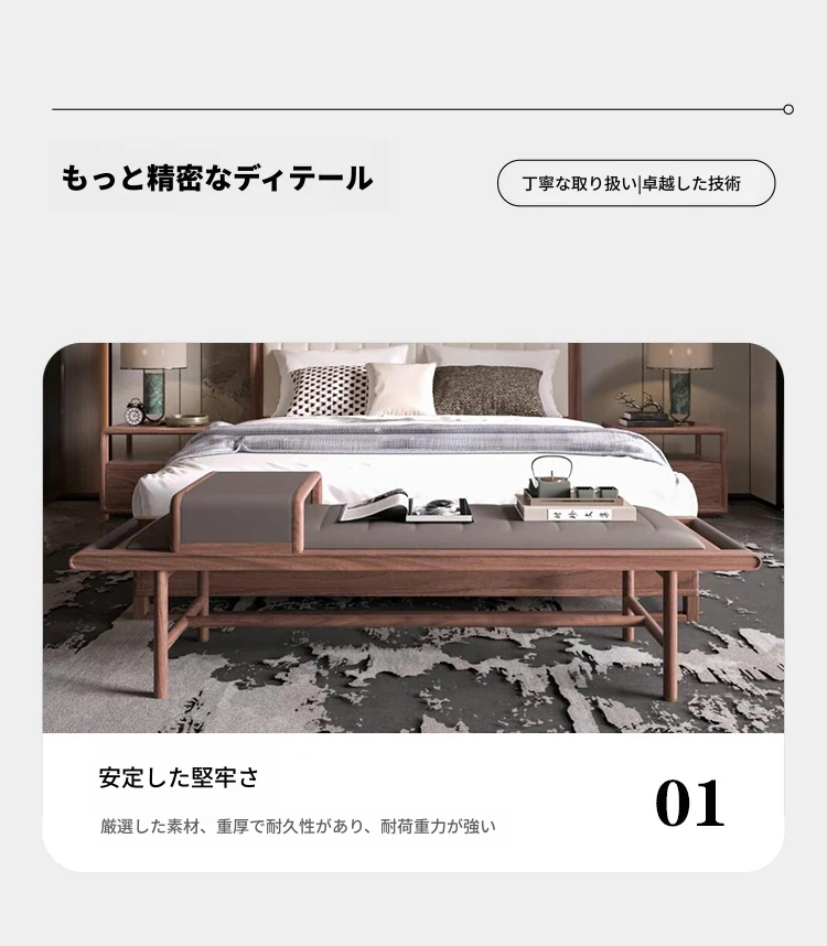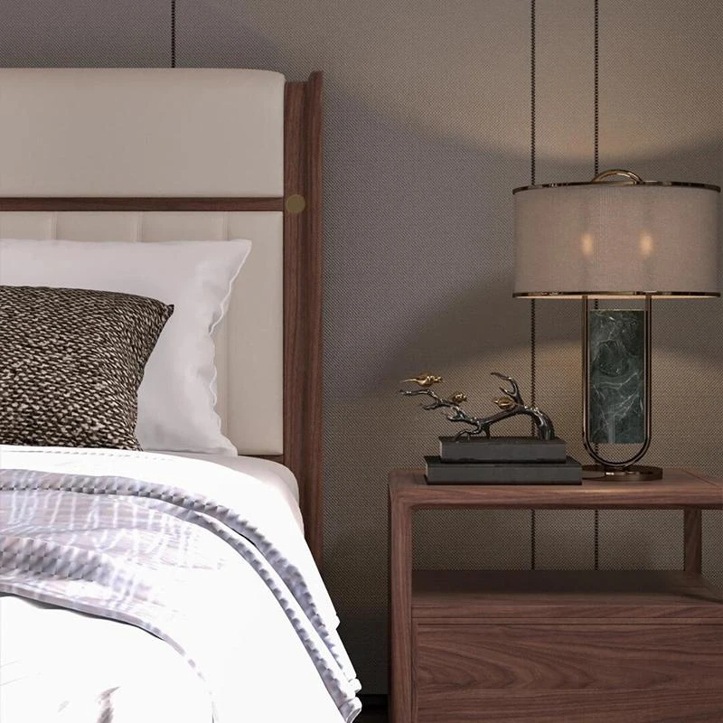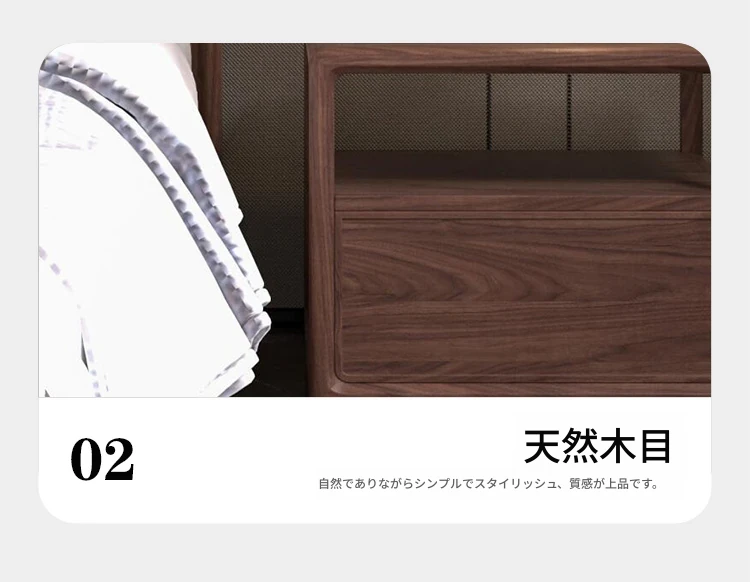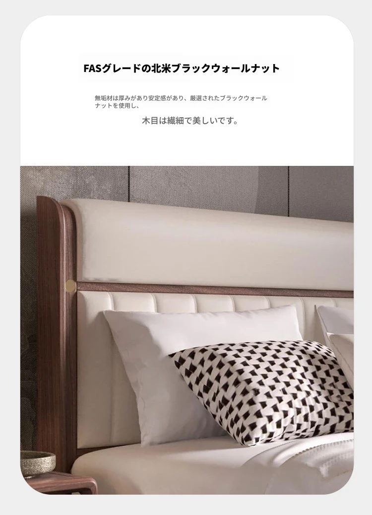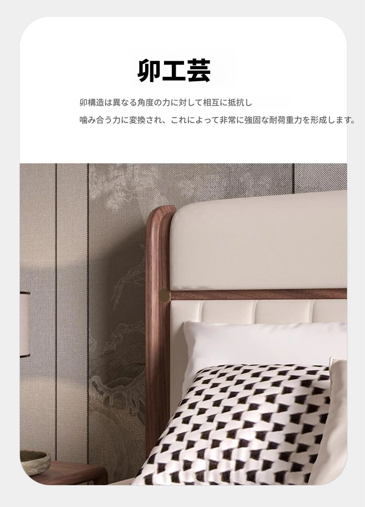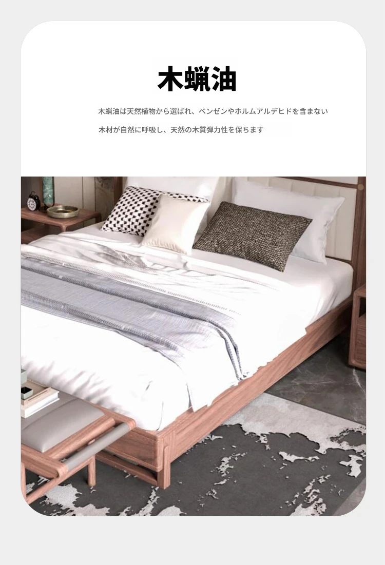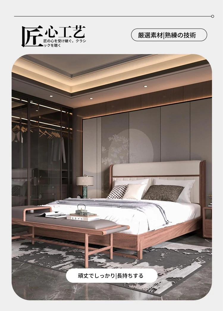 新中式スタイルの無垢材ベッド2025年新作!モダンでシンプルなウォールナットの軽やかなラグジュアリー感。主寝室にぴったりなダブルベッド、結婚祝いにも最適です!