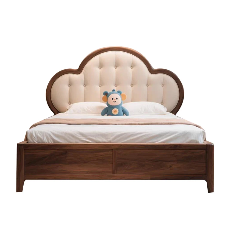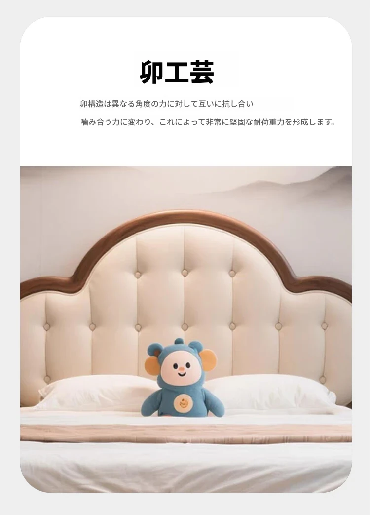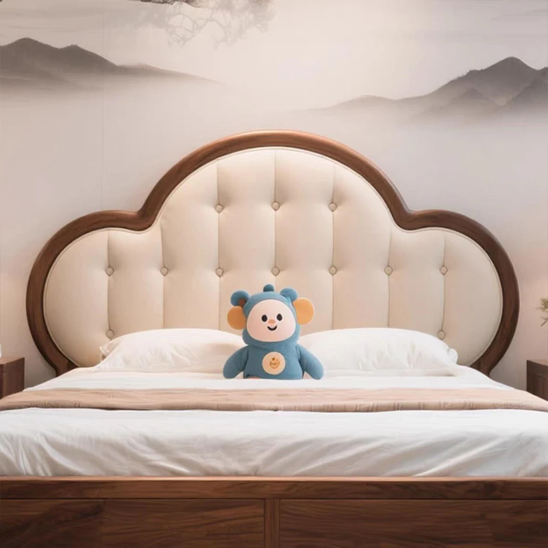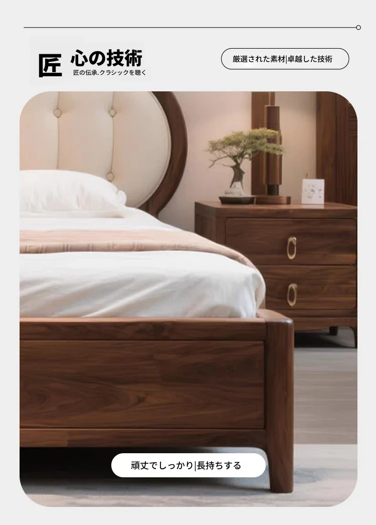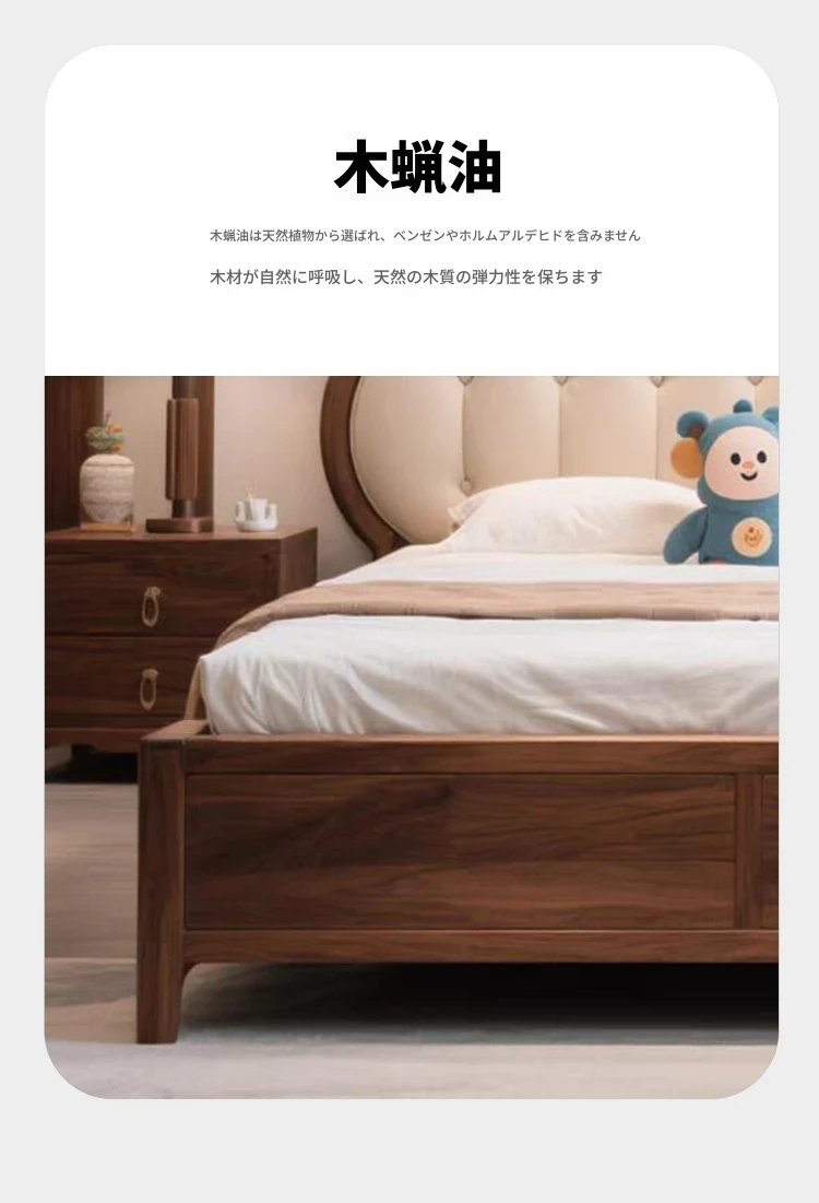2025年新作!新中式実木ベッド - モダンでシンプルな主寝室用のラグジュアリーなダブルベッド。高級ウォールナット材とレザーのコンビネーションで、洗練された空間を演出します。あなたの特別な瞬間を彩る理想の婚礼ベッド!