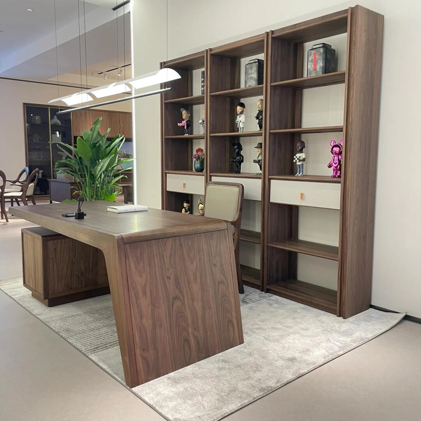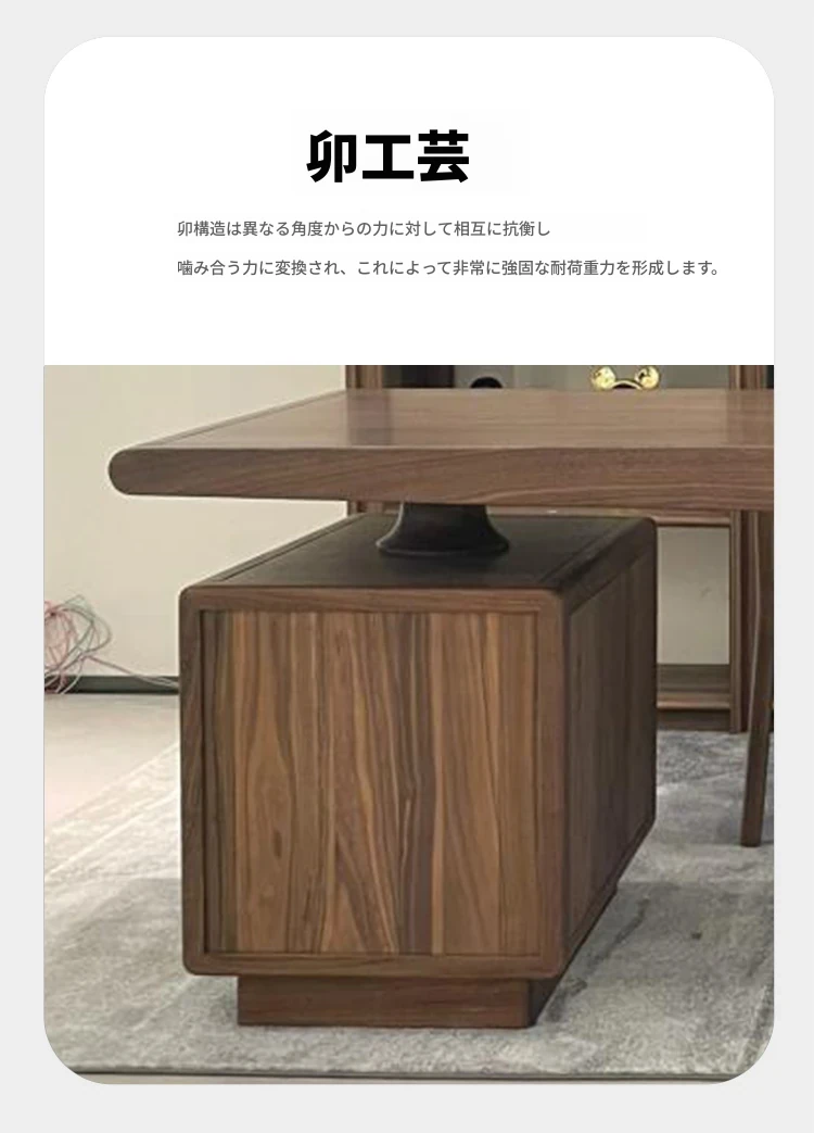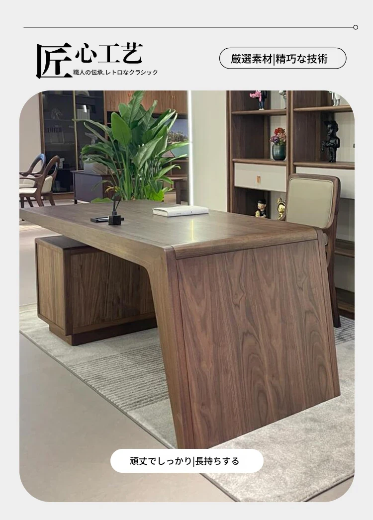 2025年新作!新中式スタイルの無垢材デスク - モダンでシンプルなデザイン、リビングや書斎に最適。アンティーク風のウォールナット材で、上質な書き心地を提供します。おしゃれで機能的な空間を演出!