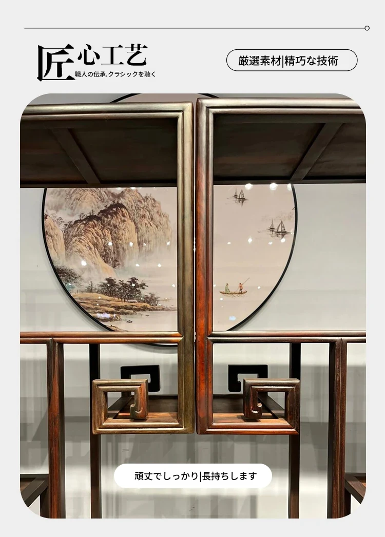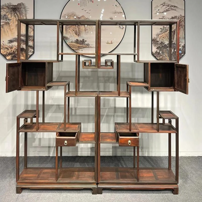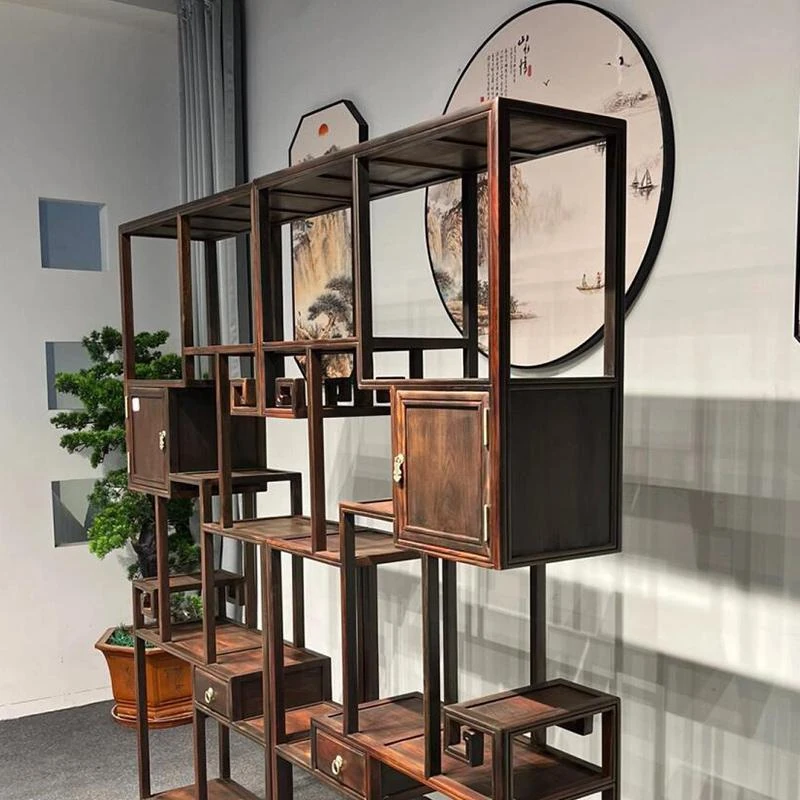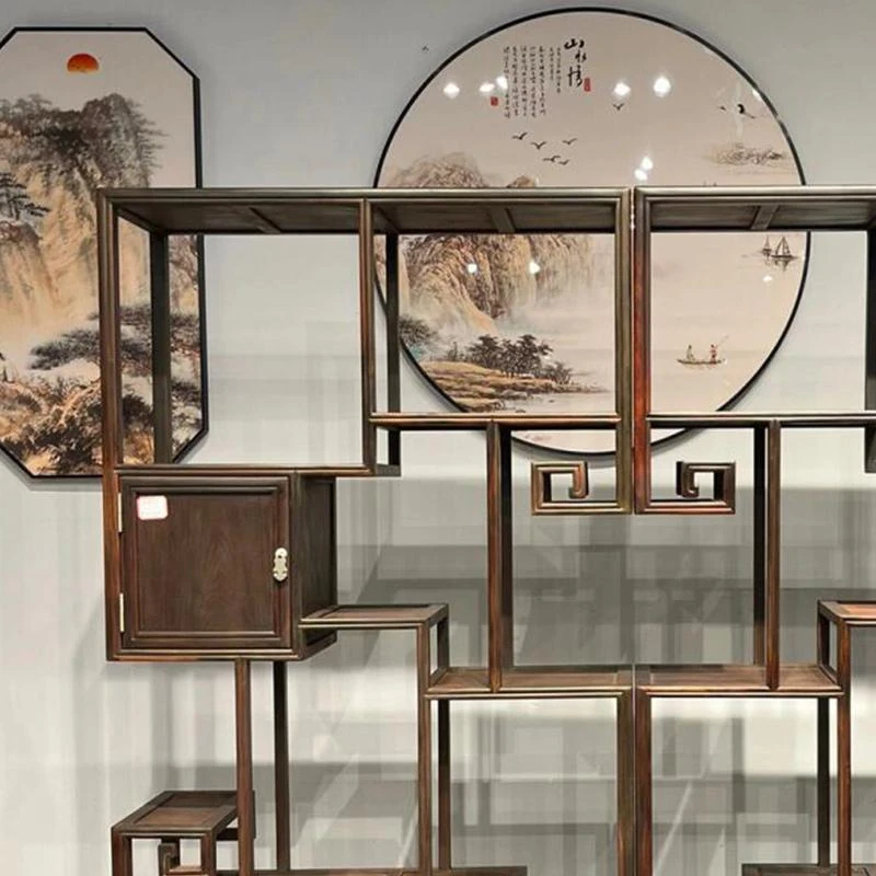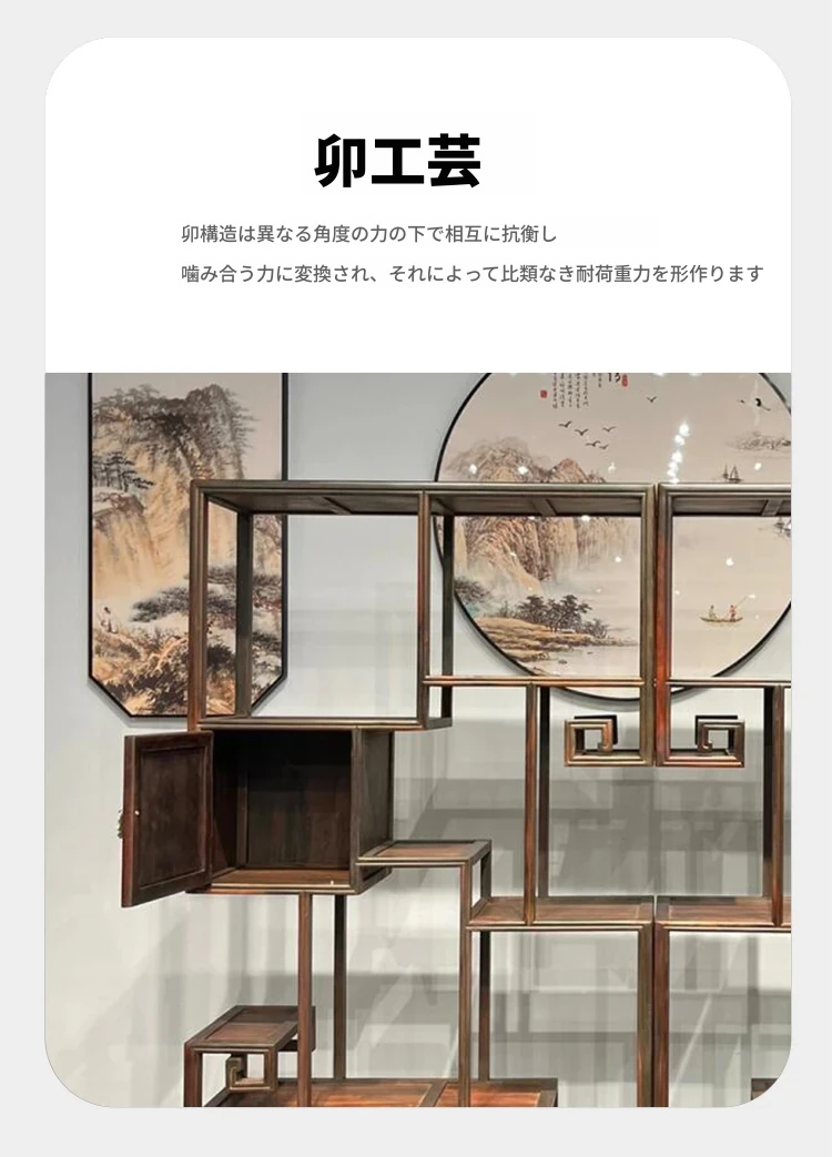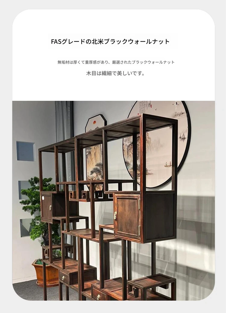 2025年新作!新中式スタイルの無垢材博古架 - ウォールナット製茶葉ディスプレイラック!おしゃれで機能的な収納を実現し、あなたのインテリアを格上げします。