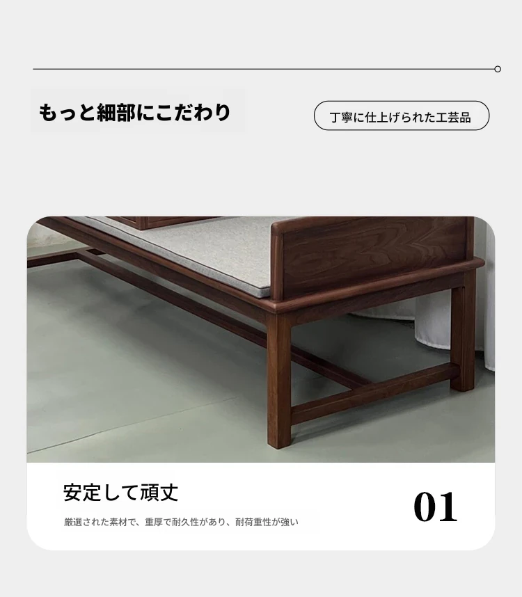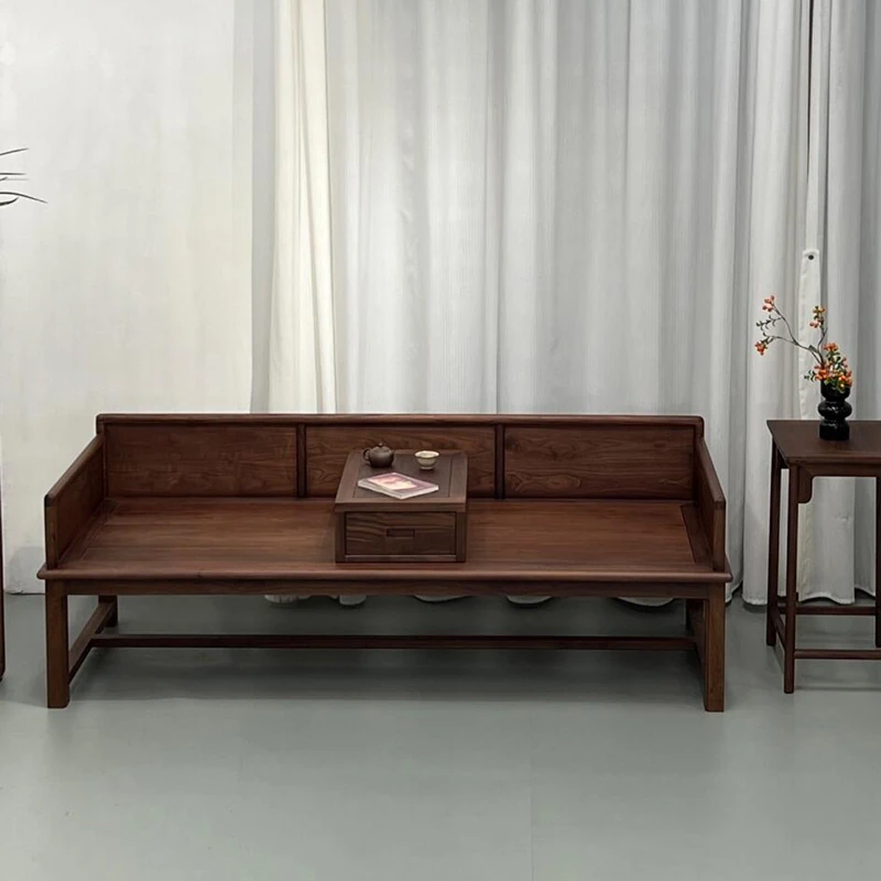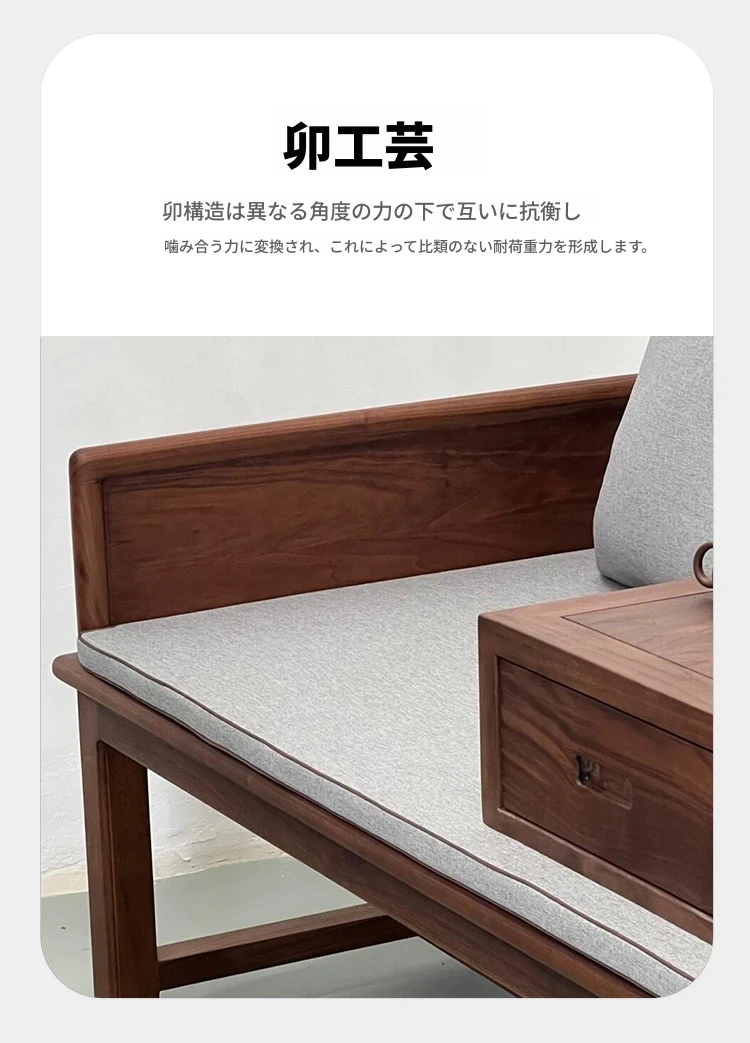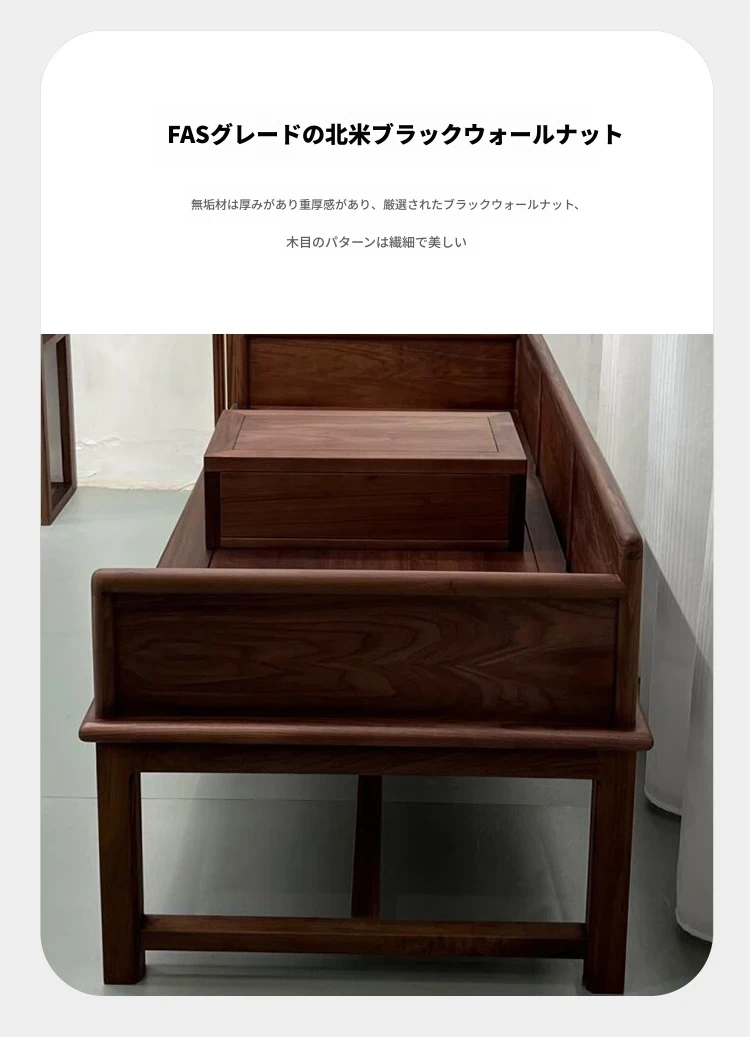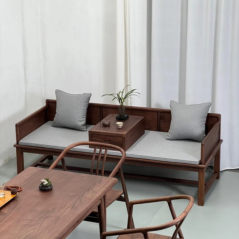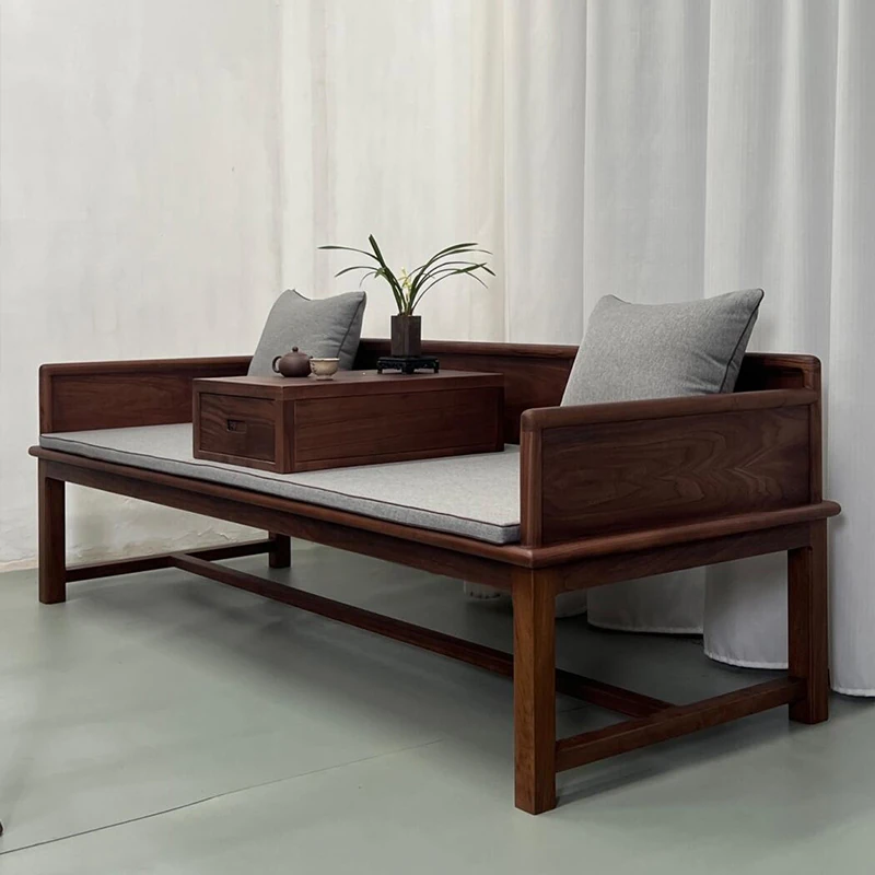2025年新作!新中式実木ローハンベッド - 禅の心を感じるリビングに最適!ウォールナット材使用、贅沢な布製ソファで、別荘やサロンにぴったりの魅力的なデザイン。