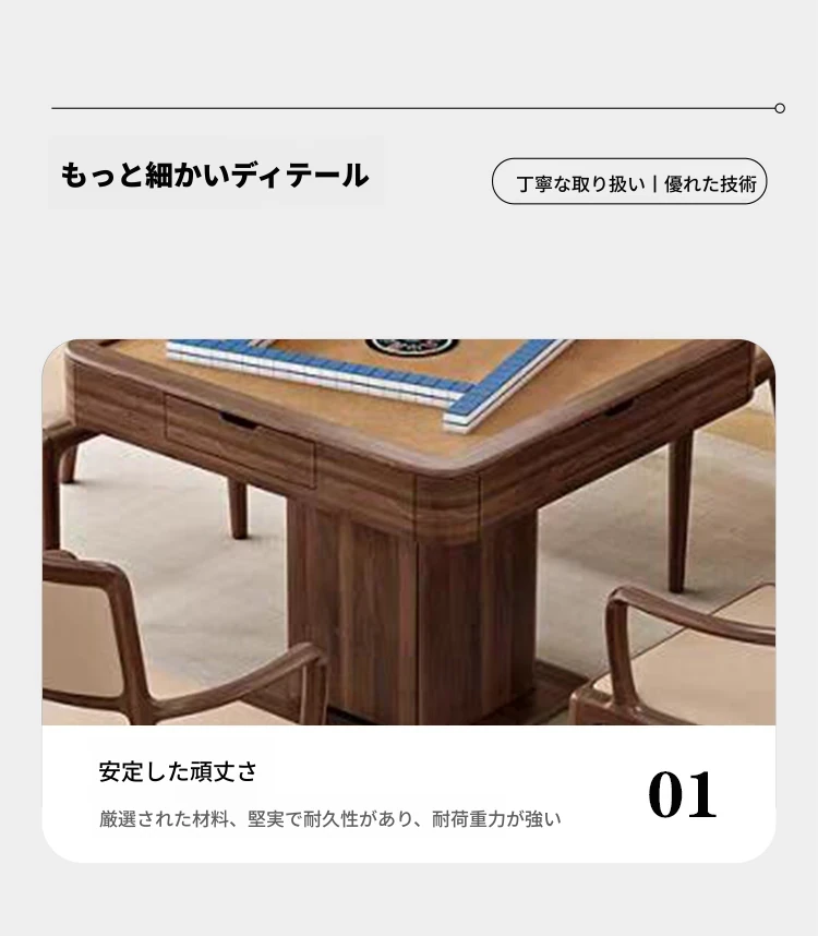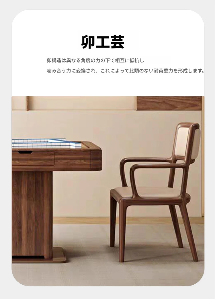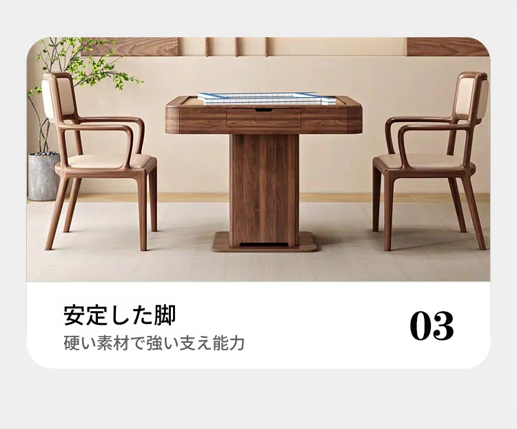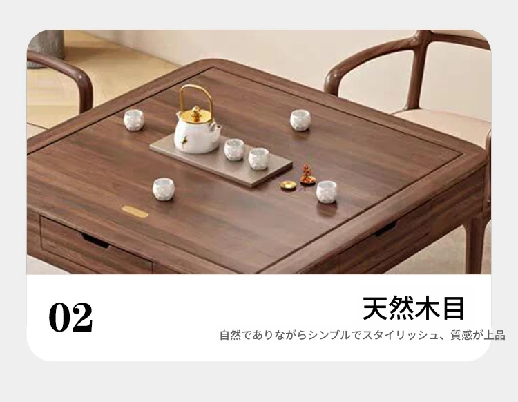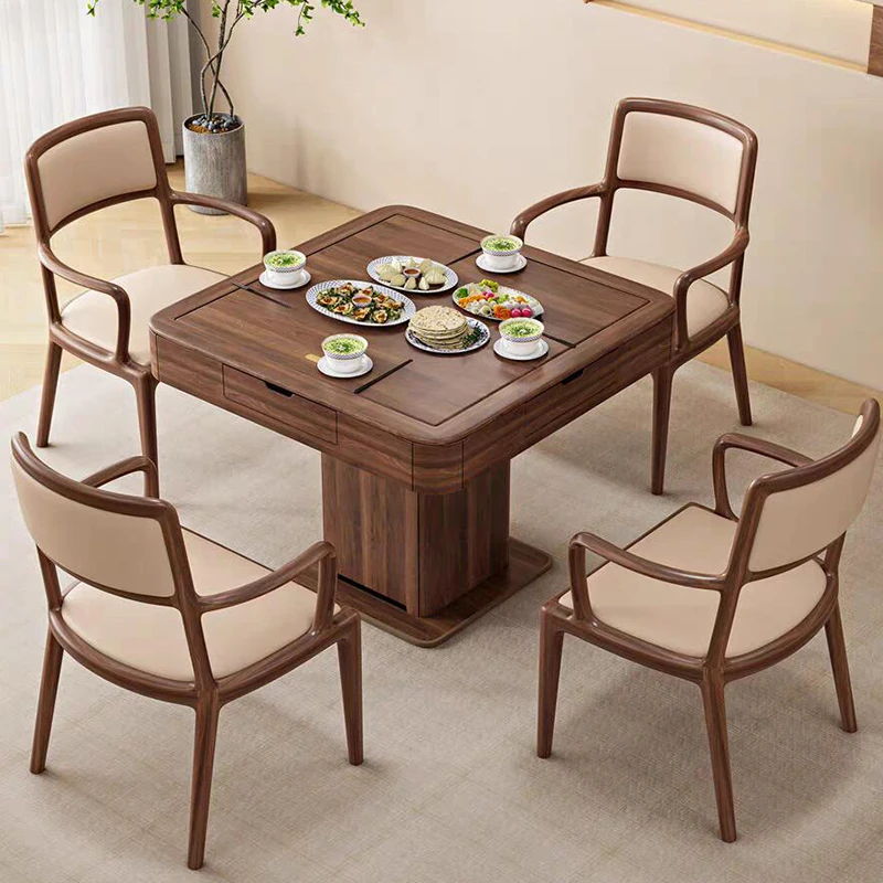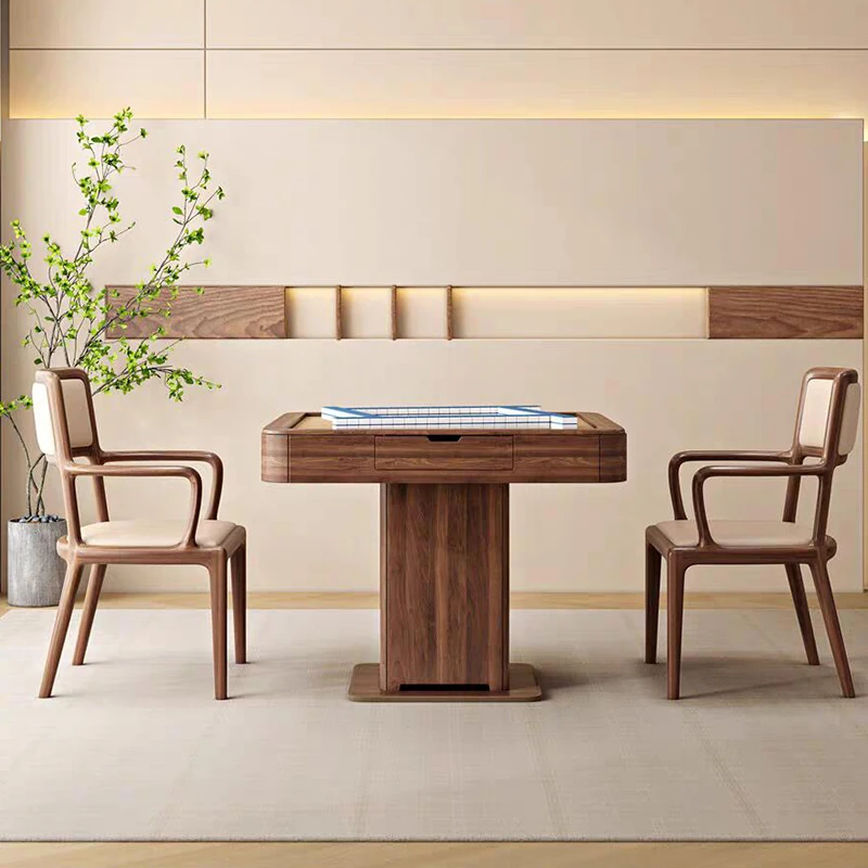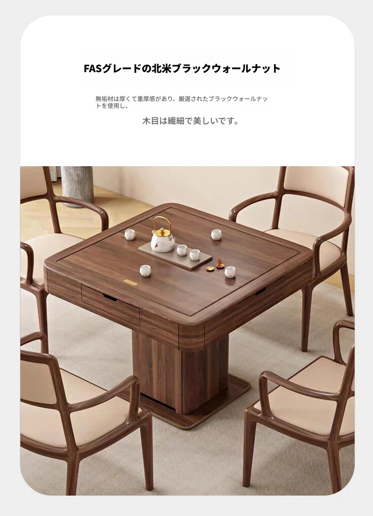 新中式スタイルの無垢材麻雀テーブル2025新作!モダンでシンプル、軽やかな高級感を演出。ウォールナット材の四角形ダイニングテーブルで、家庭での楽しい時間をより特別に!