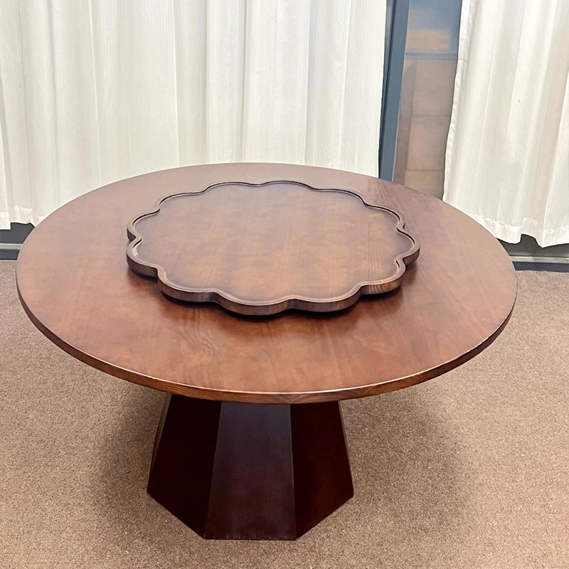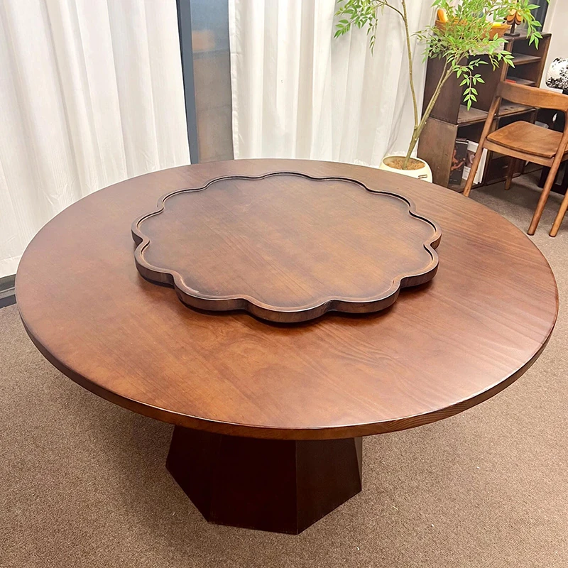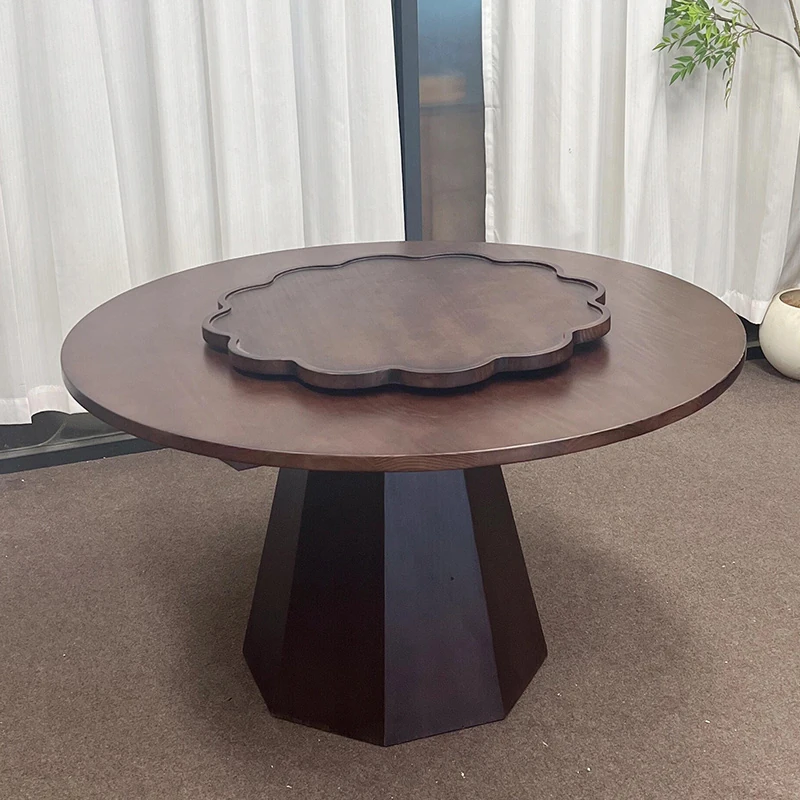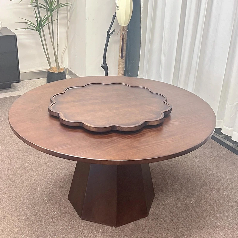 2025年新款!高端胡桃木製・新中式実木ラウンドダイニングテーブル|現代的でシンプルなデザインのリビング用・別荘にも最適!家族の絆を深める、温かみのある食卓をお楽しみください。