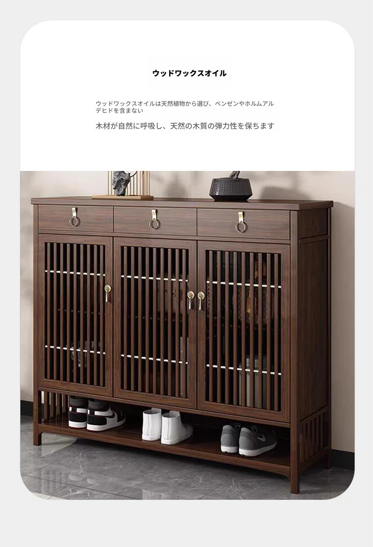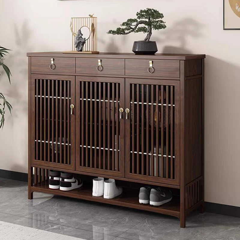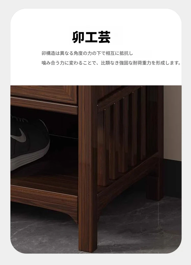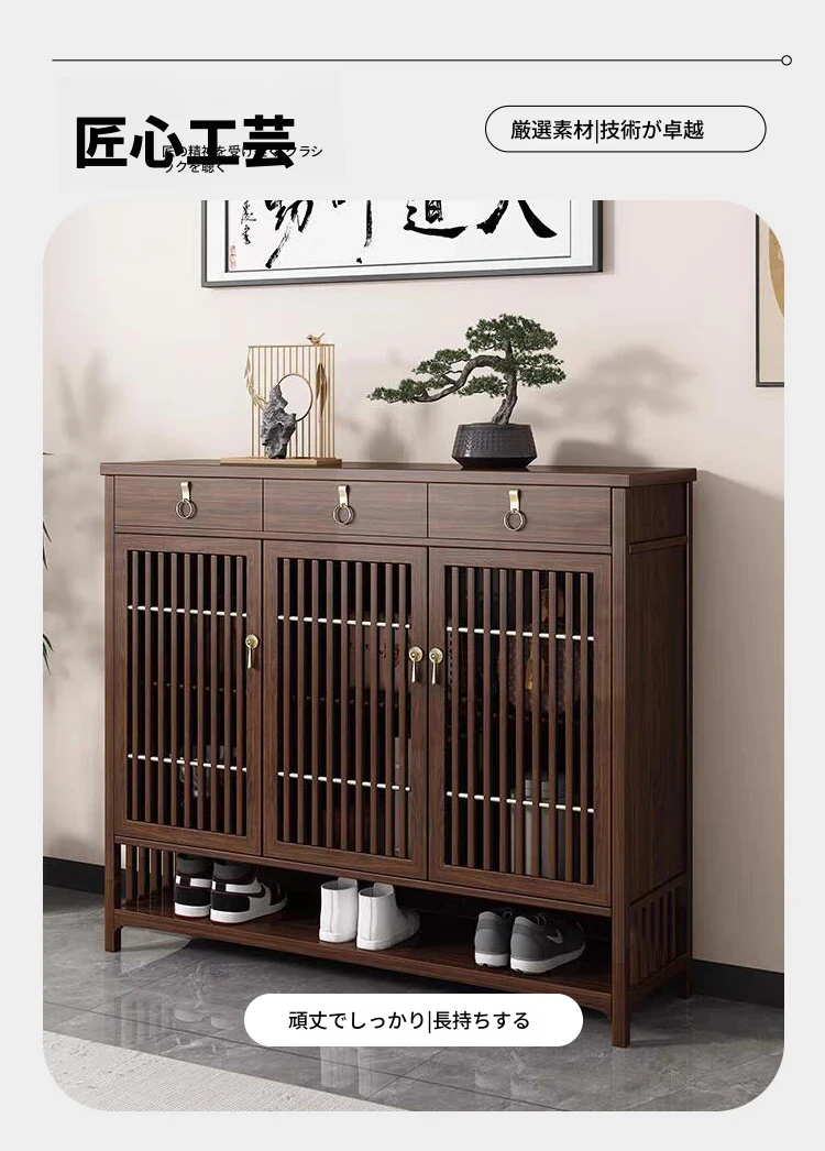 2025年新作!新中式スタイルの無垢材シューズキャビネット - モダンでシンプルなデザイン、リビングルームにぴったりの収納力を持つウォールナット製玄関収納。おしゃれで機能的な空間を演出します!