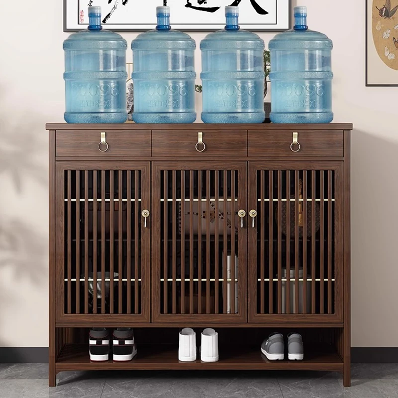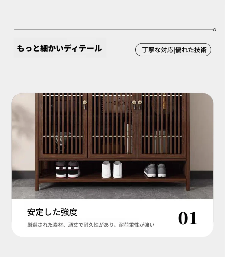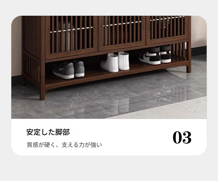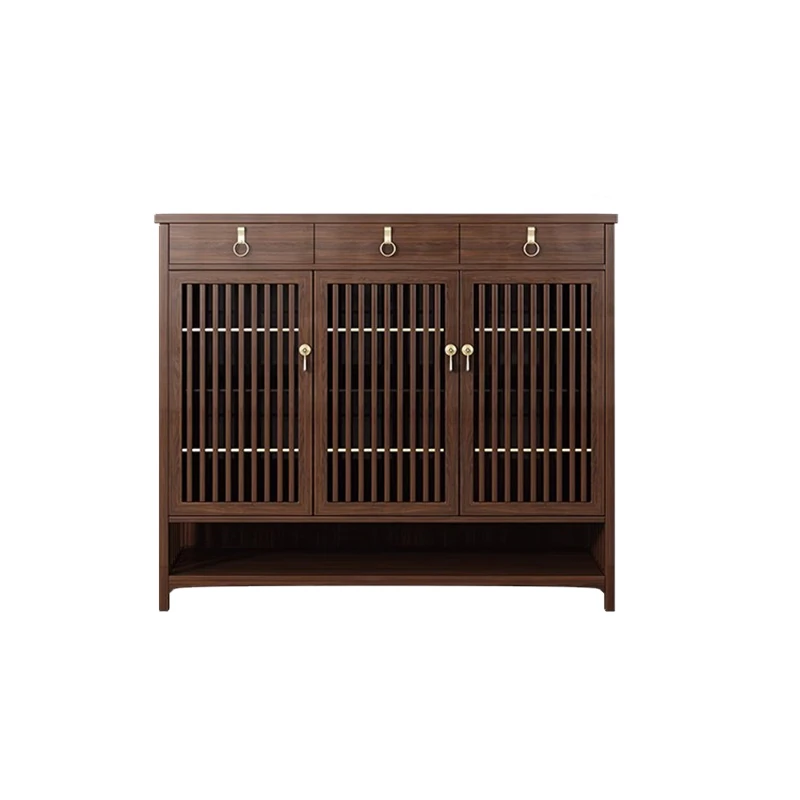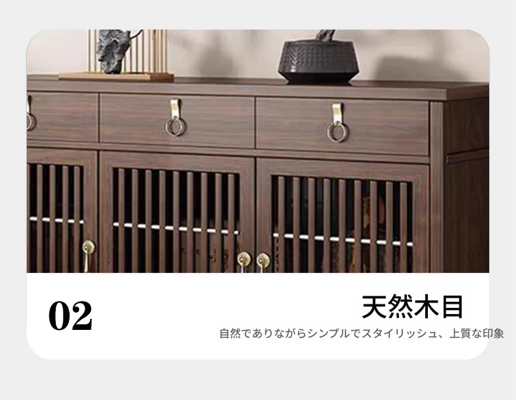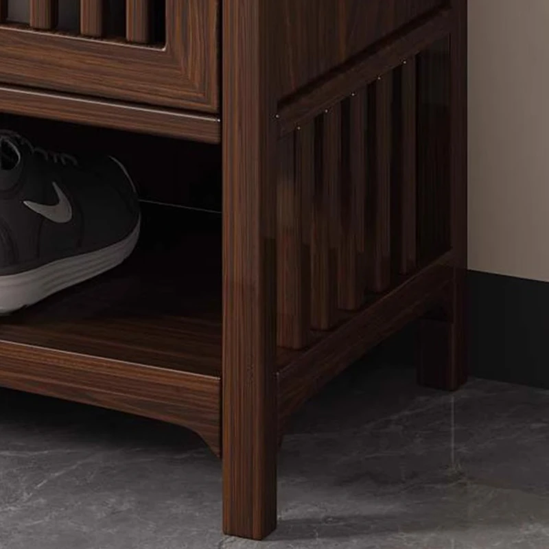 2025年新作!新中式スタイルの無垢材シューズキャビネット - モダンでシンプルなデザイン、リビングルームにぴったりの収納力を持つウォールナット製玄関収納。おしゃれで機能的な空間を演出します!