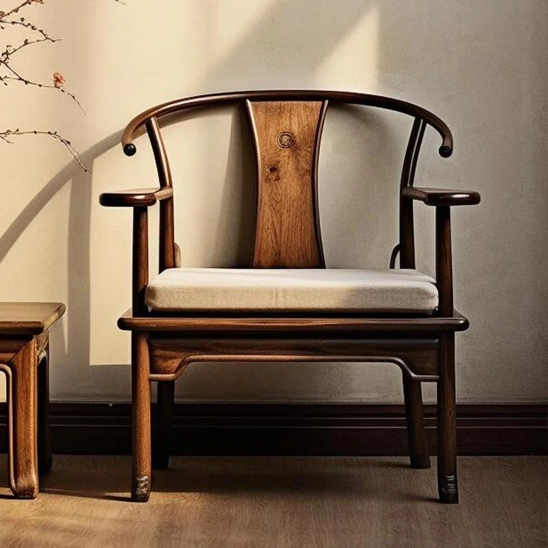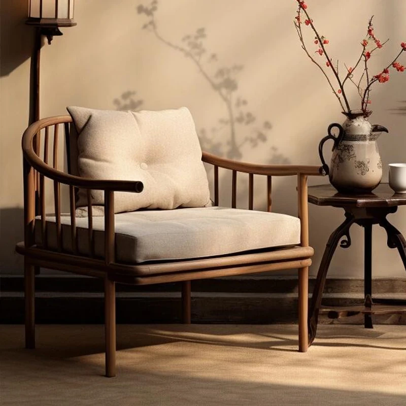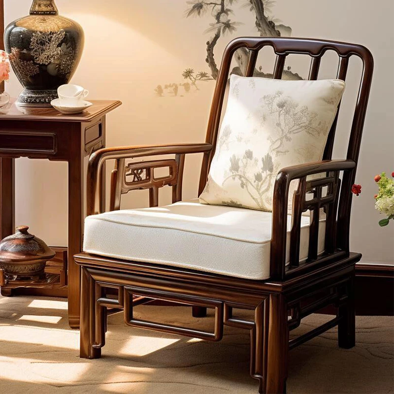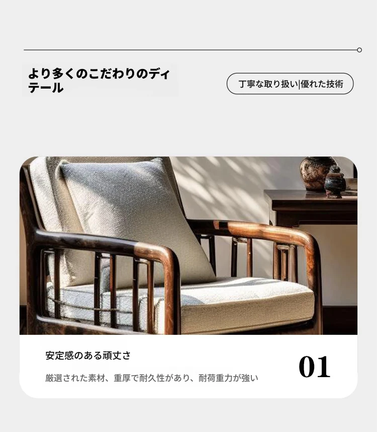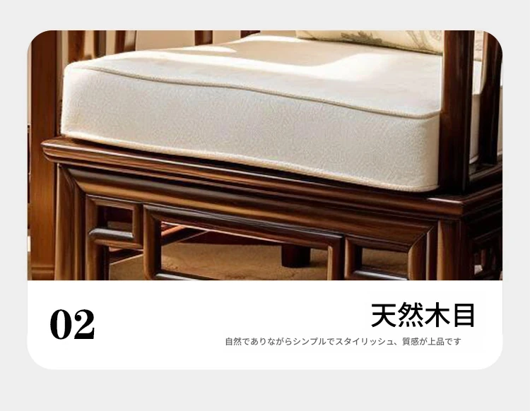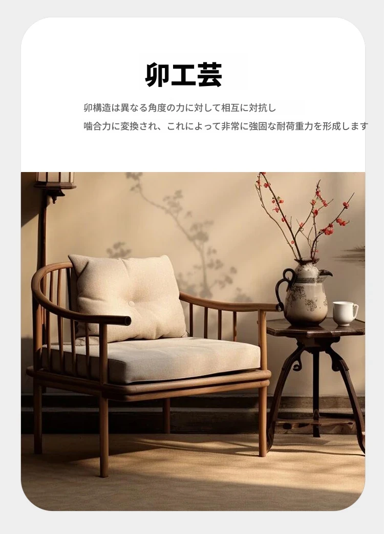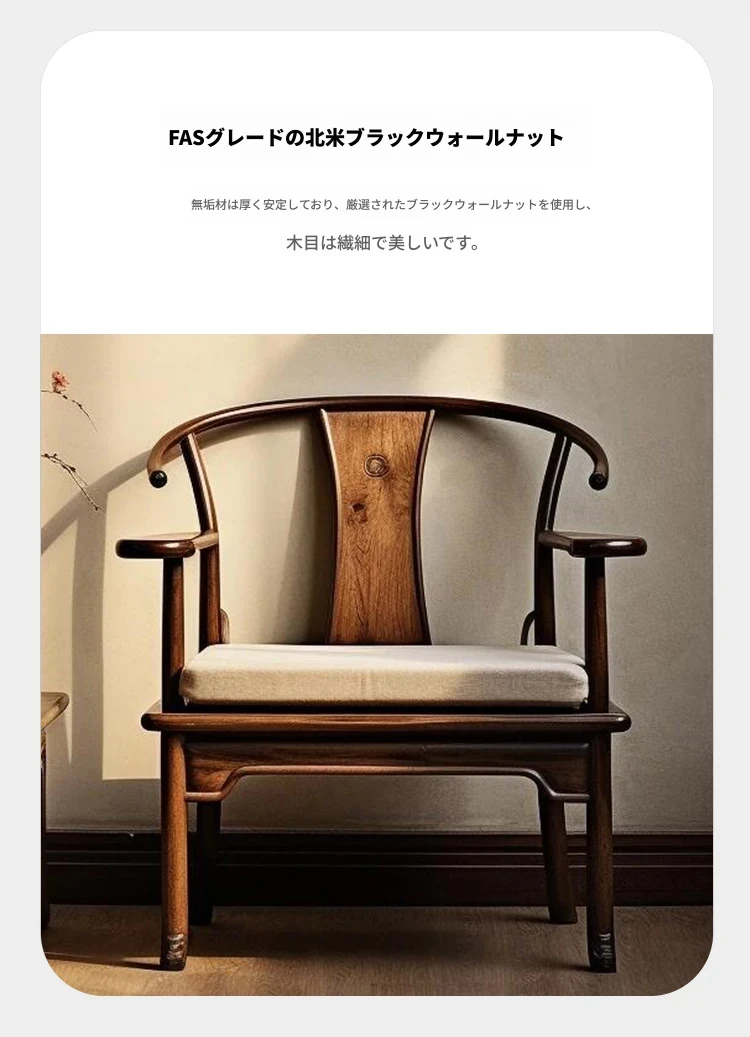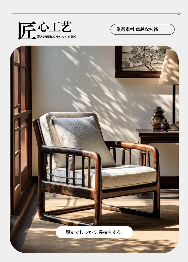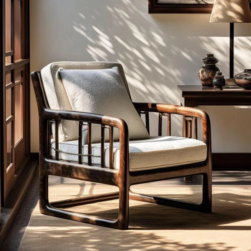 新中式スタイルの無垢材ソファチェア - 2025年新作、モダンで軽やかなラグジュアリーな家庭用リビングソファチェア、ウォールナット材使用!おしゃれな空間を演出し、快適なひとときを提供します。