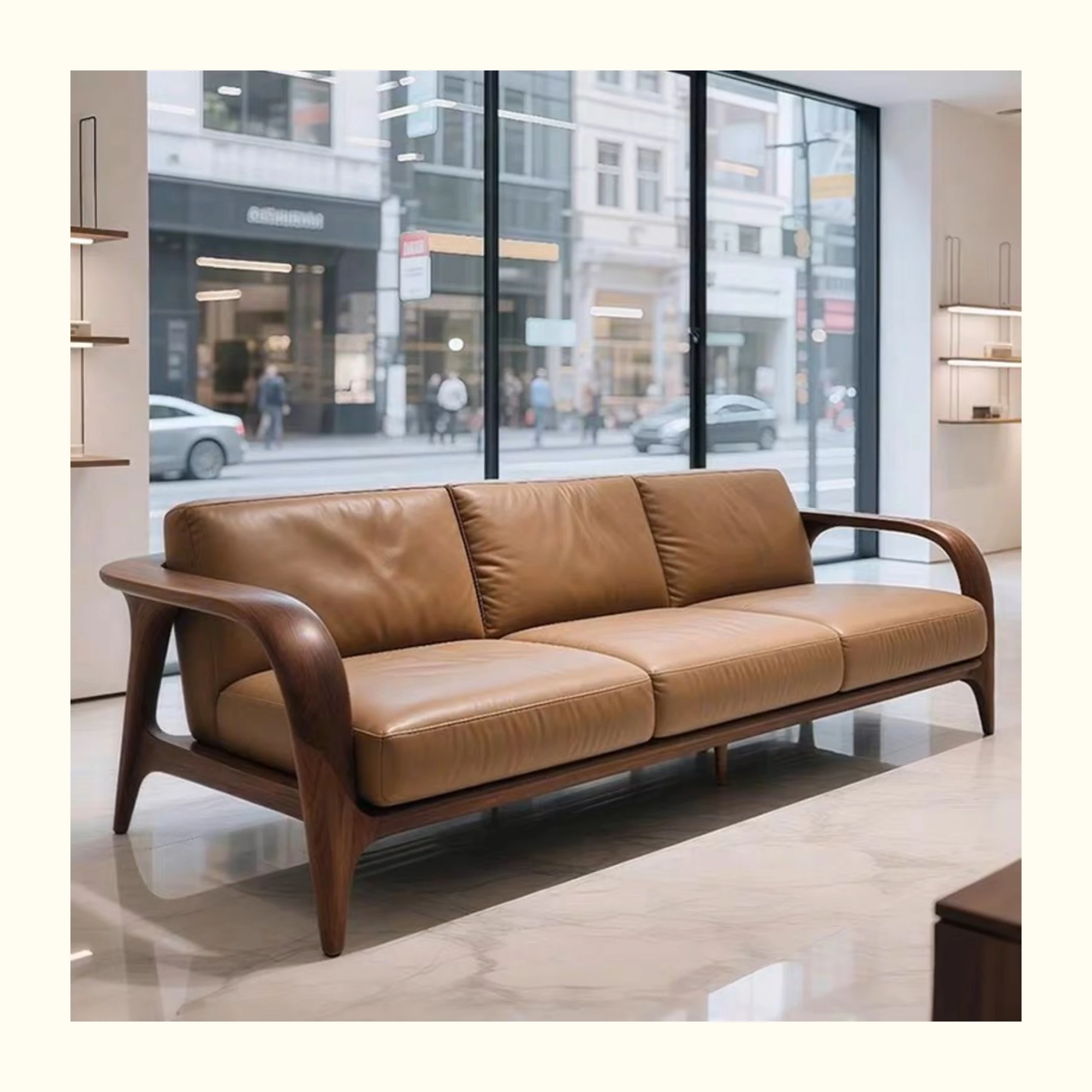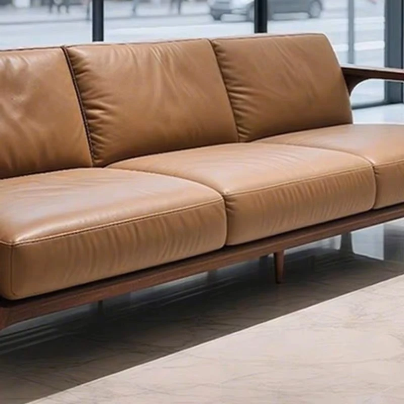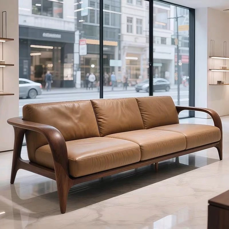 新中式天然木製ソファ 2025年最新モデル!モダンでシンプルなデザイン、居心地抜群のストレートタイプ。古風なウォールナット材使用で、あなたのリビングをおしゃれに演出します!