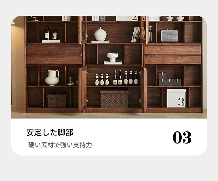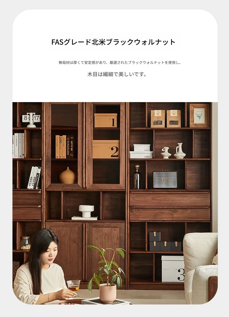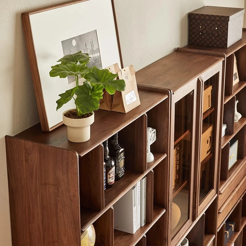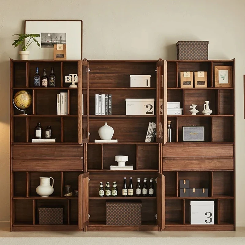 新中式スタイルの2025年新作!ウォールナット材の実木書棚&ディスプレイキャビネット。茶室にぴったりのティーバックラックとしても活用可能!洗練されたデザインでお部屋を格上げします。