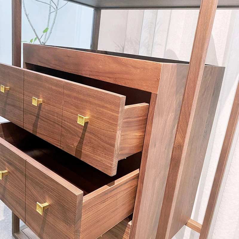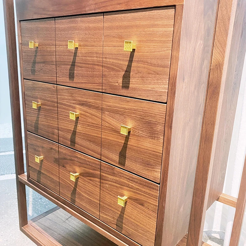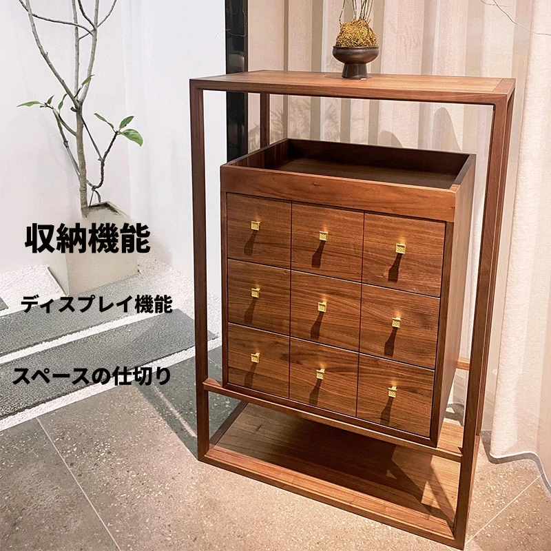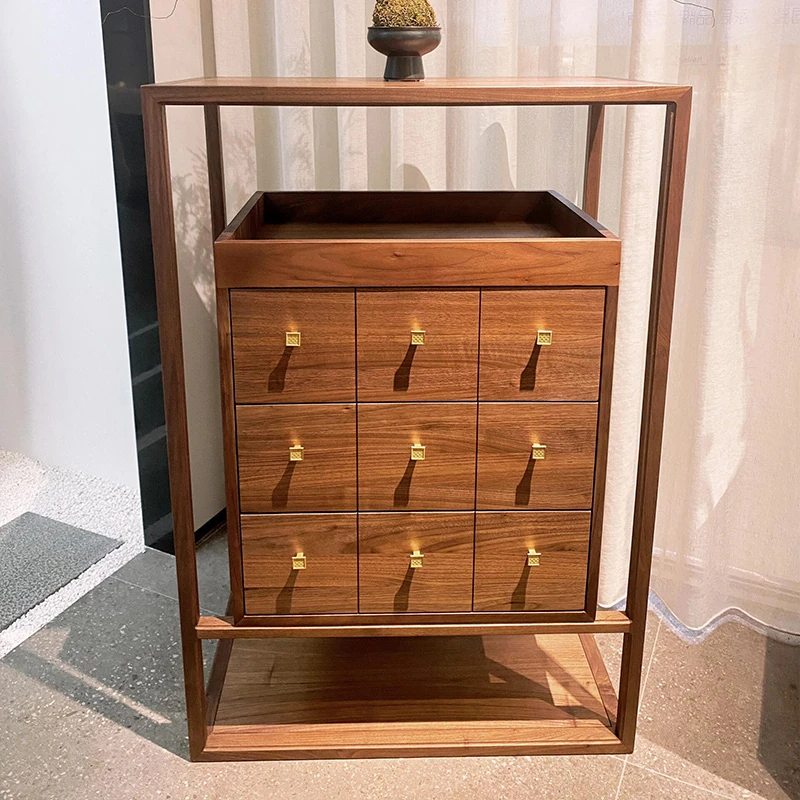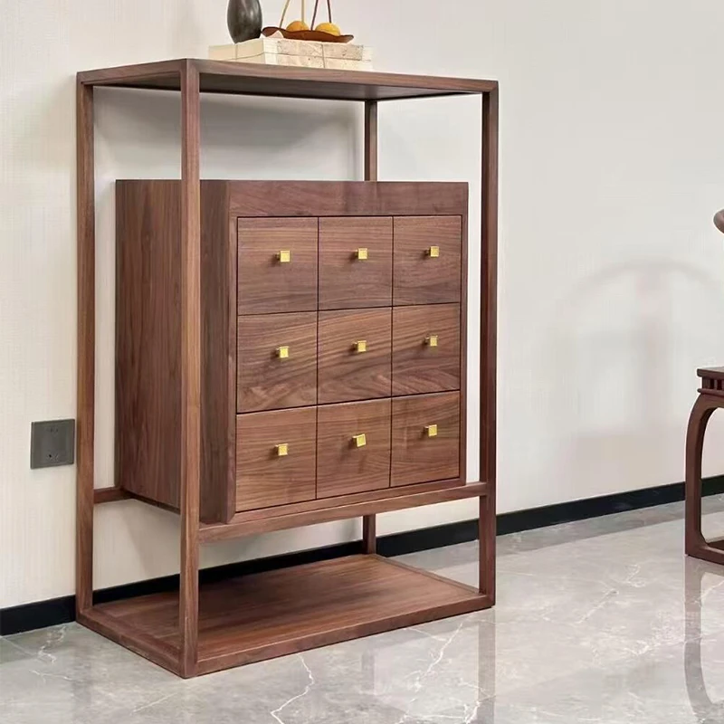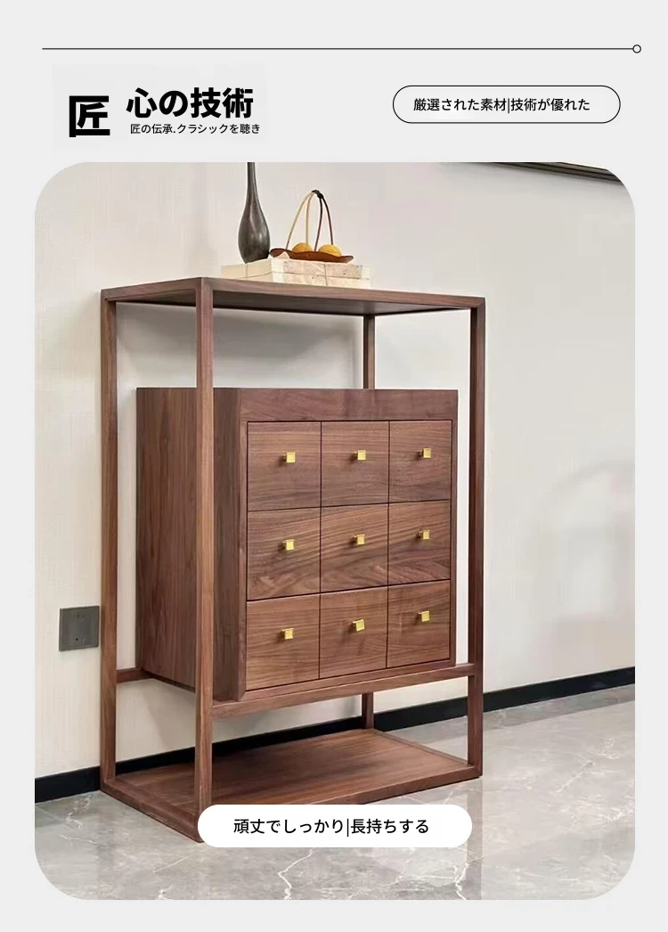 2025年新作!モダンなシンプルデザインの新中式玄関収納キャビネット - クルミ材使用、レトロな雰囲気漂う家庭用リビングストレージキャビネット。おしゃれで機能的な収納で、あなたの家をさらに魅力的に!