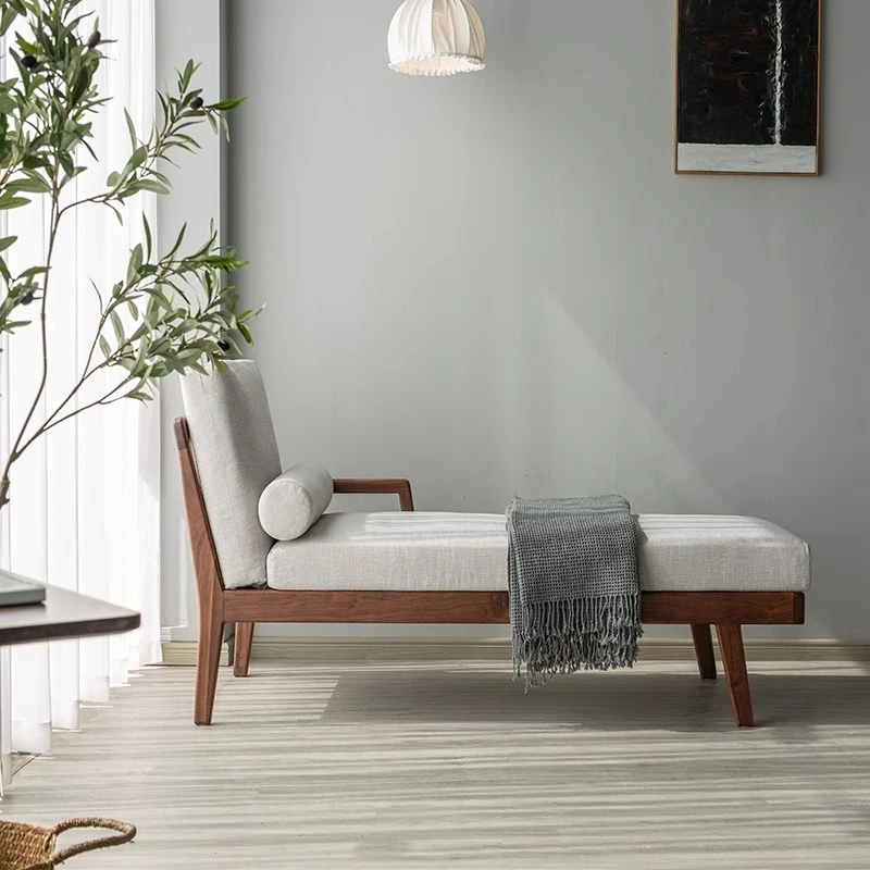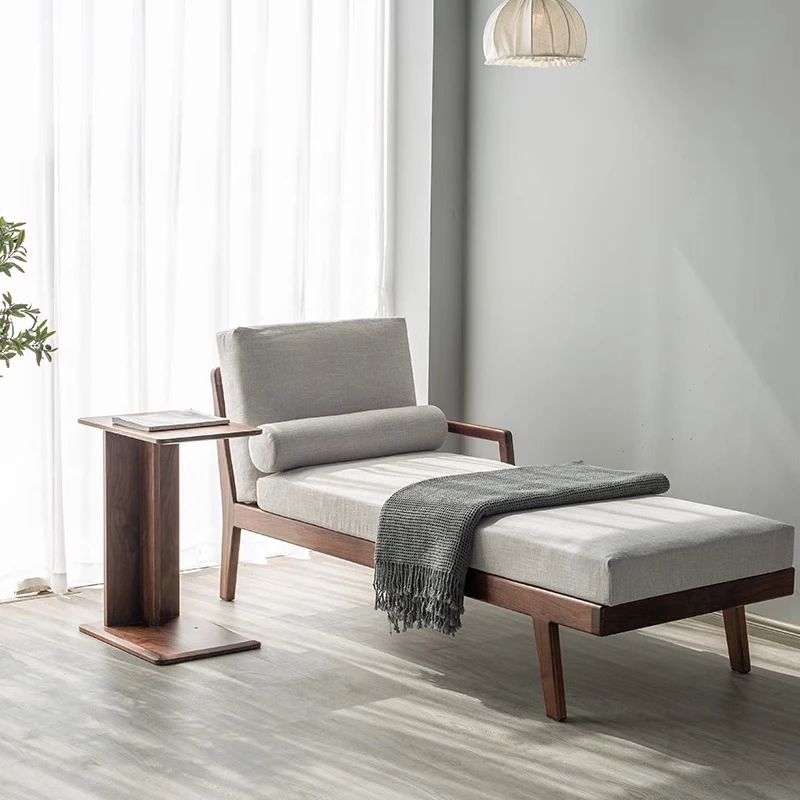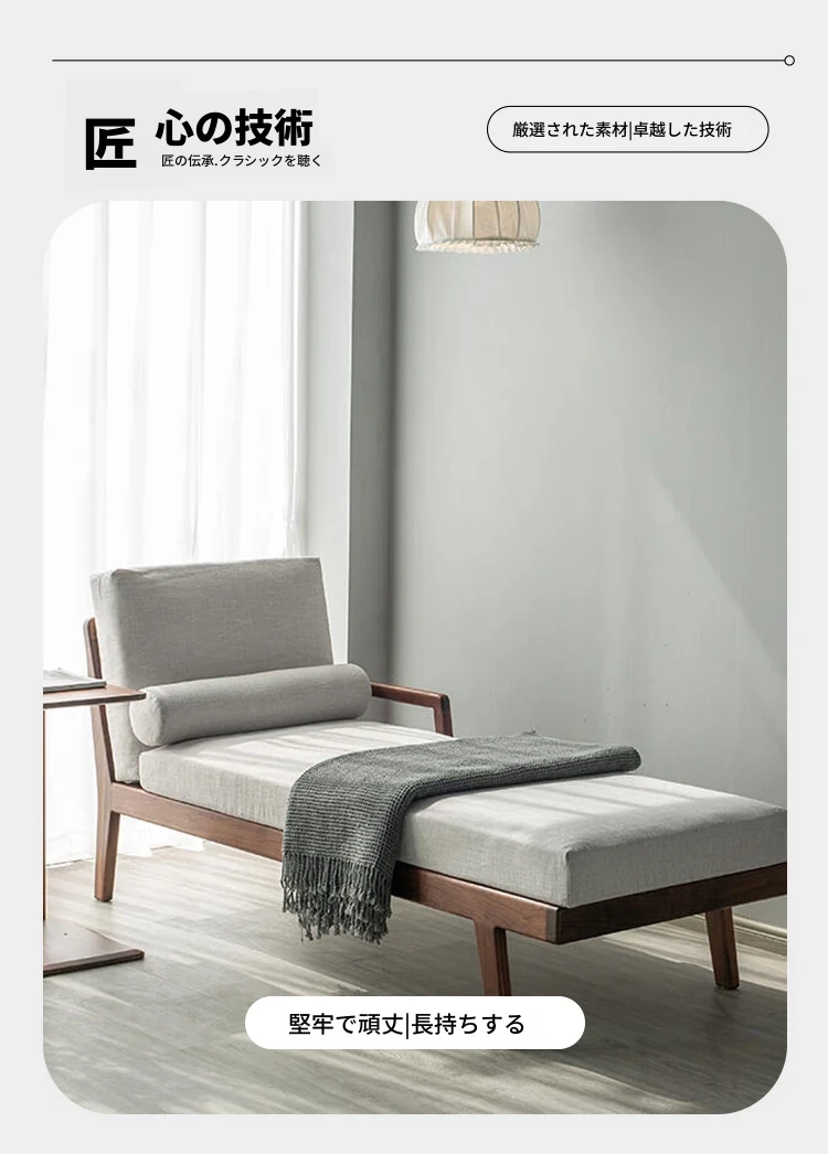 2025年新作!リッチなウォールナット材使用のラグジュアリーなカウチソファ。スタイリッシュな布張りの美人榻で、贅沢なリラックスタイムを。木製のシングルソファとしても最適!おしゃれなリビングにぴったりの一品です。