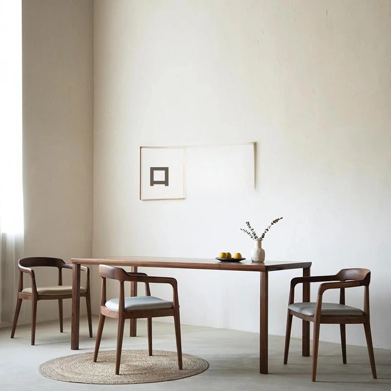 2025年新作!新中式スタイルの無垢材テーブル - おしゃれな胡桃の木製、シンプルで高級感あふれるデザイン。家族団らんやおもてなしに最適なダイニングテーブル!