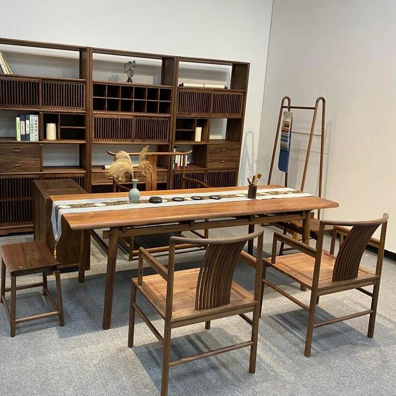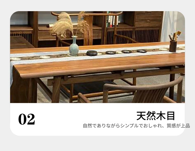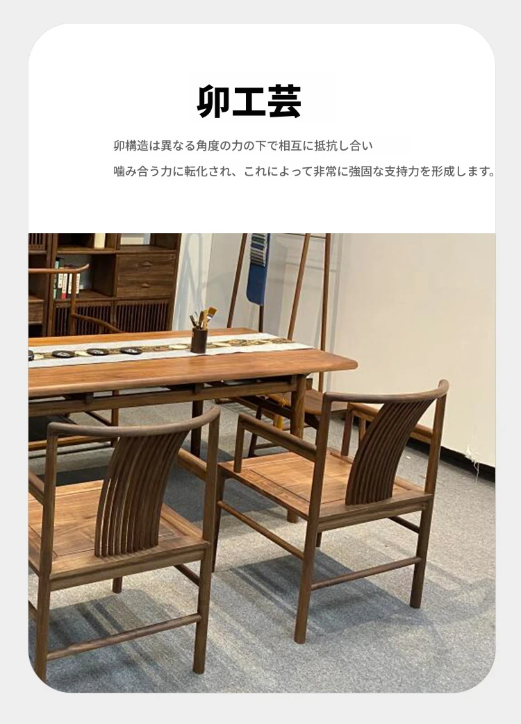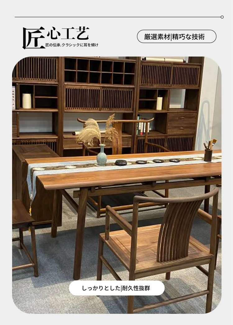 2025年新作!新中式デザインの一体型茶卓・ダイニングテーブル。高級感あふれる無垢材のくるみの木を使用したシンプルで洗練された家用テーブル。おしゃれな空間を演出し、特別な食事の時間を提供します!