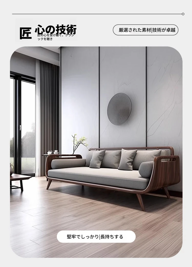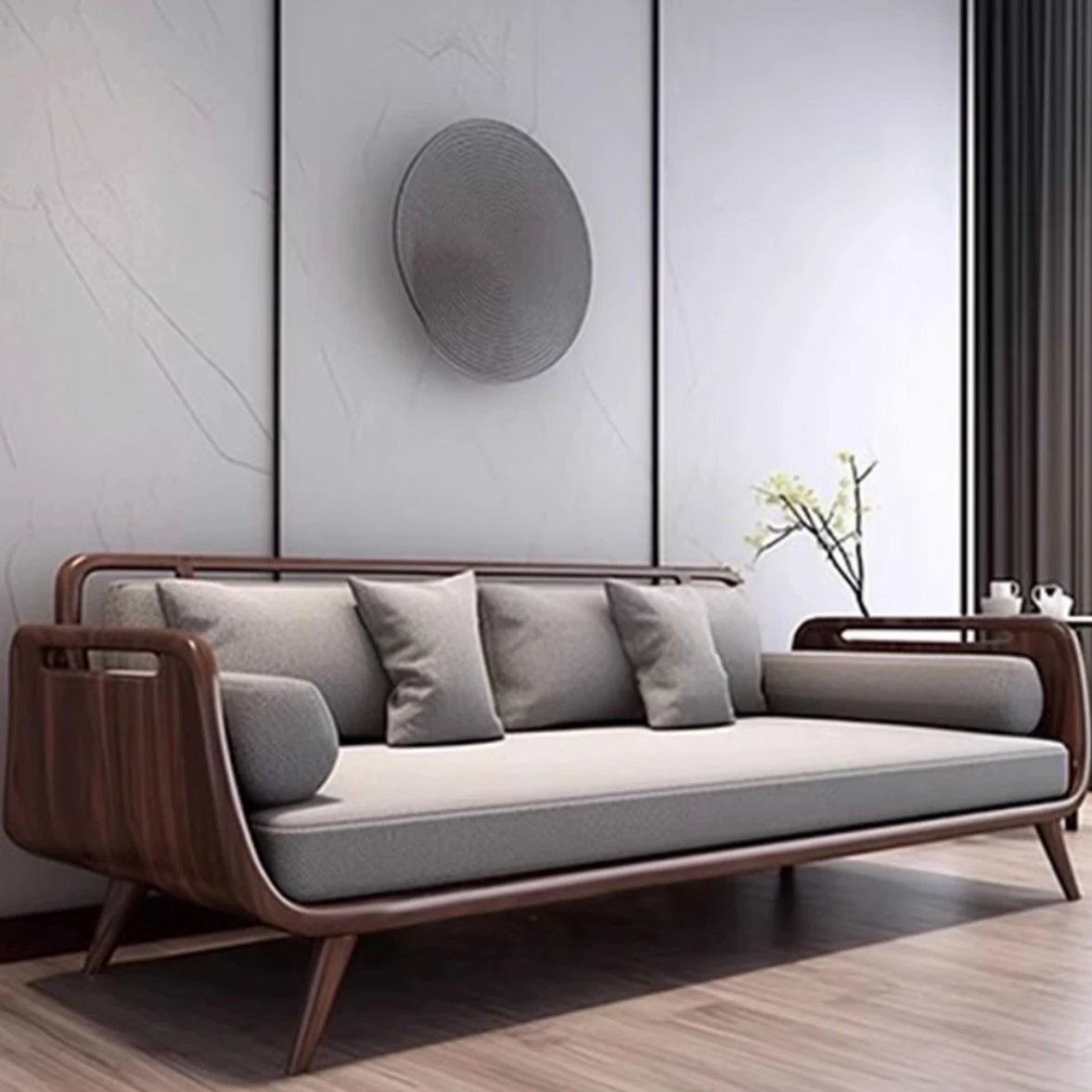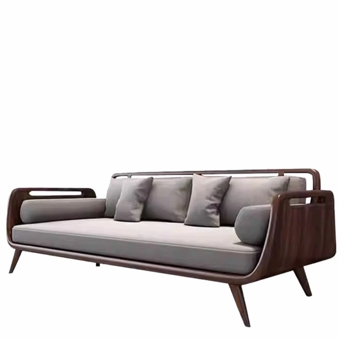 新しい中式ウォールナットソファ2025年モデル、軽やかなラグジュアリーとモダンなミニマルデザイン、上質なファブリックの羅漢ベッド付き。高級感あふれる実木ソファで、あなたのリビングに洗練された雰囲気をプラス!
