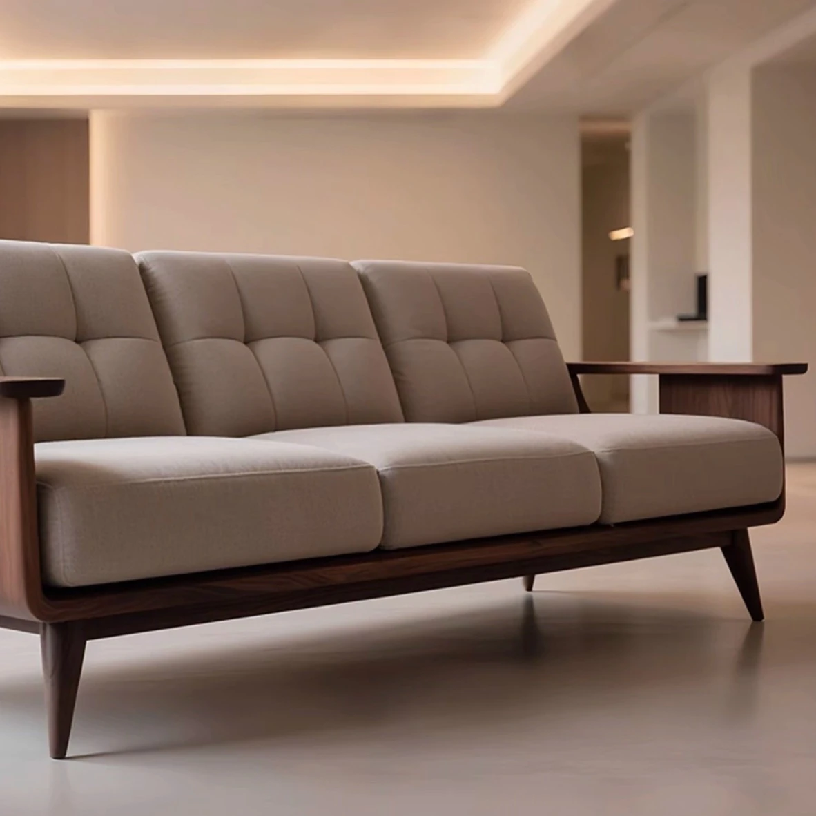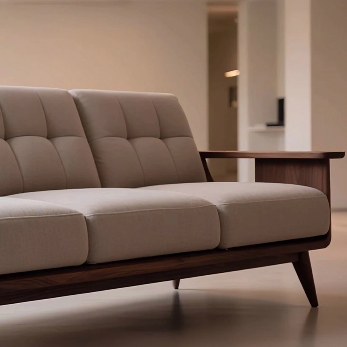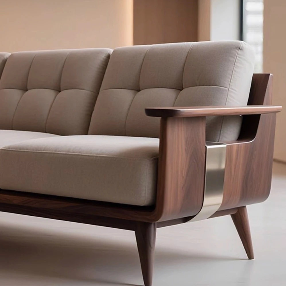 2025年新作!高級胡桃木デザインの新中式実木ソファ - スタイリッシュな直排三人掛けで、中古風のリビングにぴったり!上質な素材と洗練されたデザインで、洗練された空間を演出します。