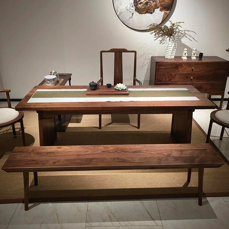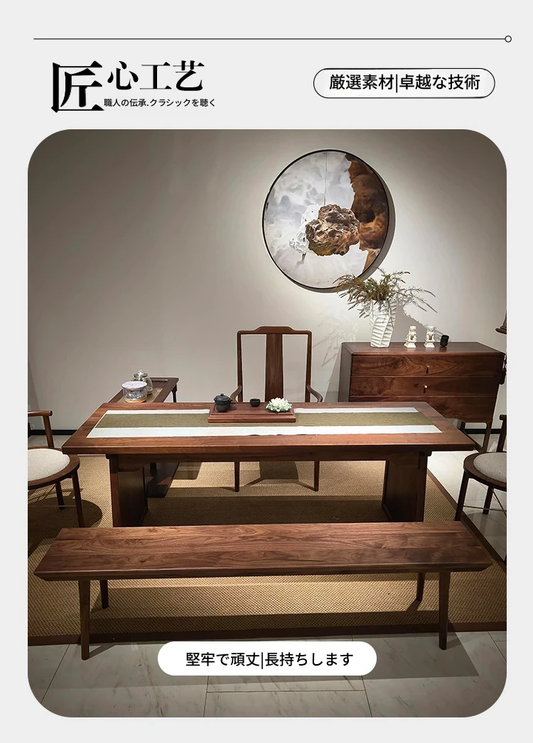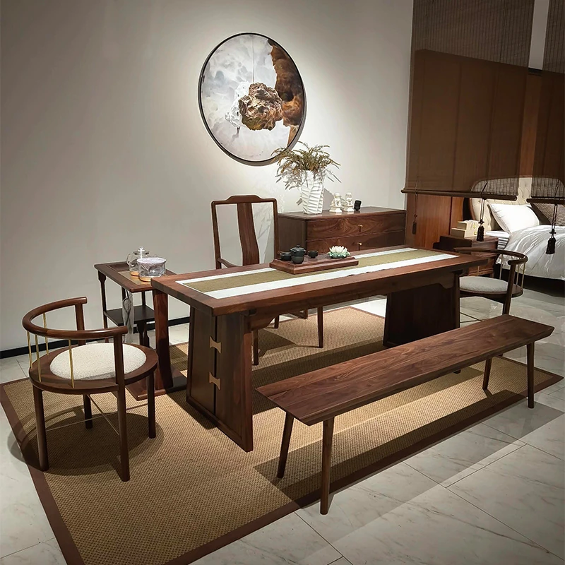 2025年新作 高級感溢れる新中式実木の軽奢茶卓 ウォールナット材を使用したモダンデザイン リビングに最適な高品質ティーテーブル
