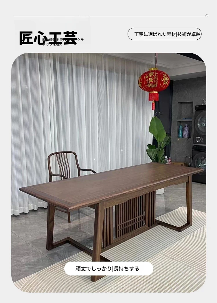 2025年新款!高級無垢材質の書斎兼用ティーテーブル - シンプルなウォールナット仕上げで、スタイリッシュなリビングにぴったり!おしゃれで機能的なデザインで、心地よいひとときを演出します。