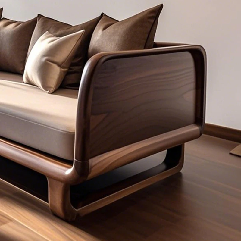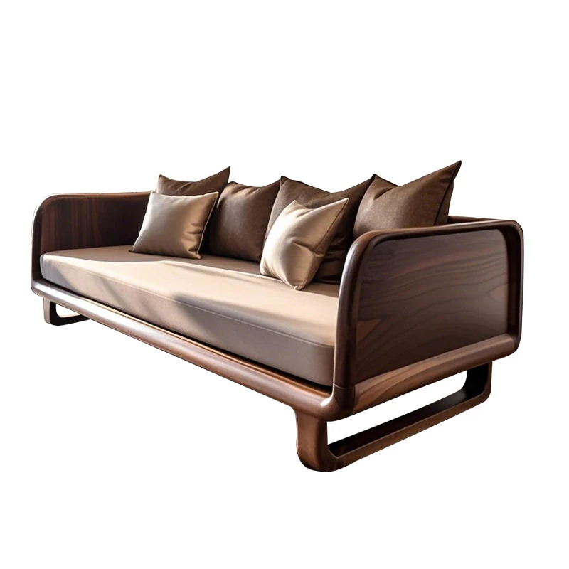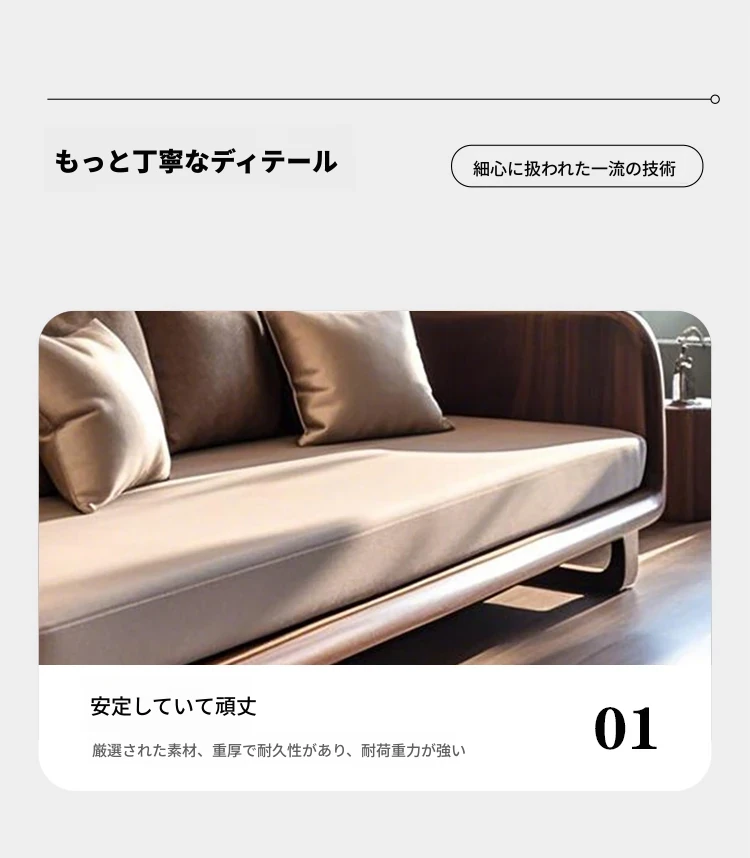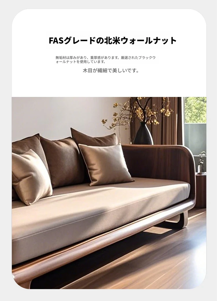 新中式高級黒胡桃木ソファ 2025年新作 シンプルで禅の風情漂う茶室兼用ローハンベッドソファで、リラックスしたひとときをお楽しみください。