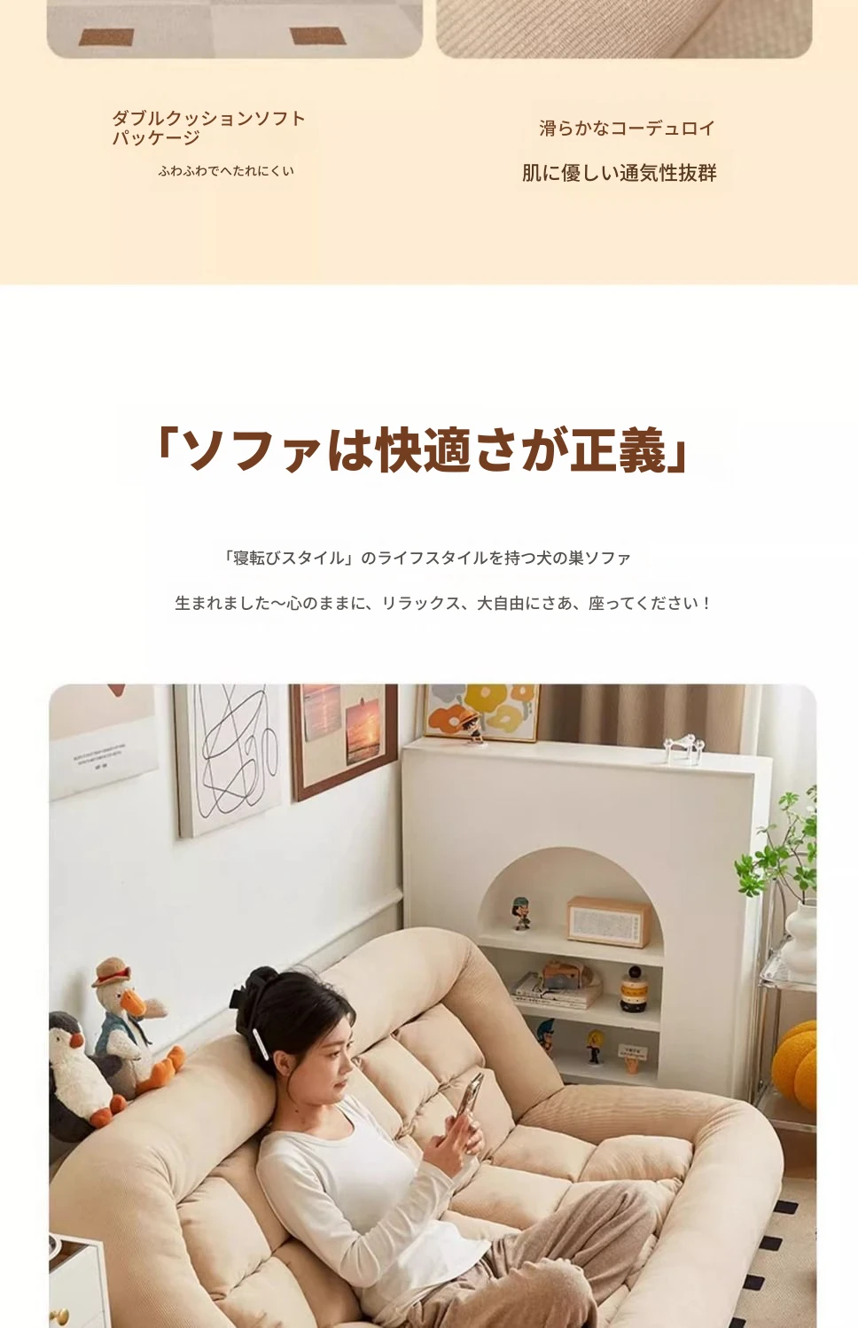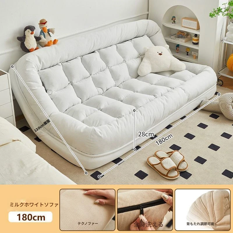 ラグジュアリースタイルxアイボリー【無料で大クッションx2プレゼント】 超大サイズ【180x130】多段階調整