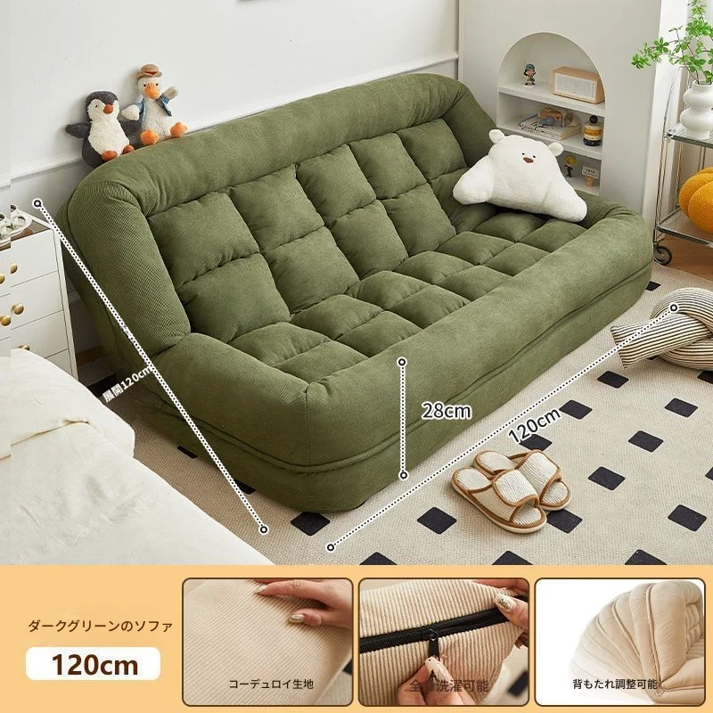 ラグジュアリースタイルxダークグリーン【無料で大クッションx2プレゼント】 中サイズ【120x120】多段階調整