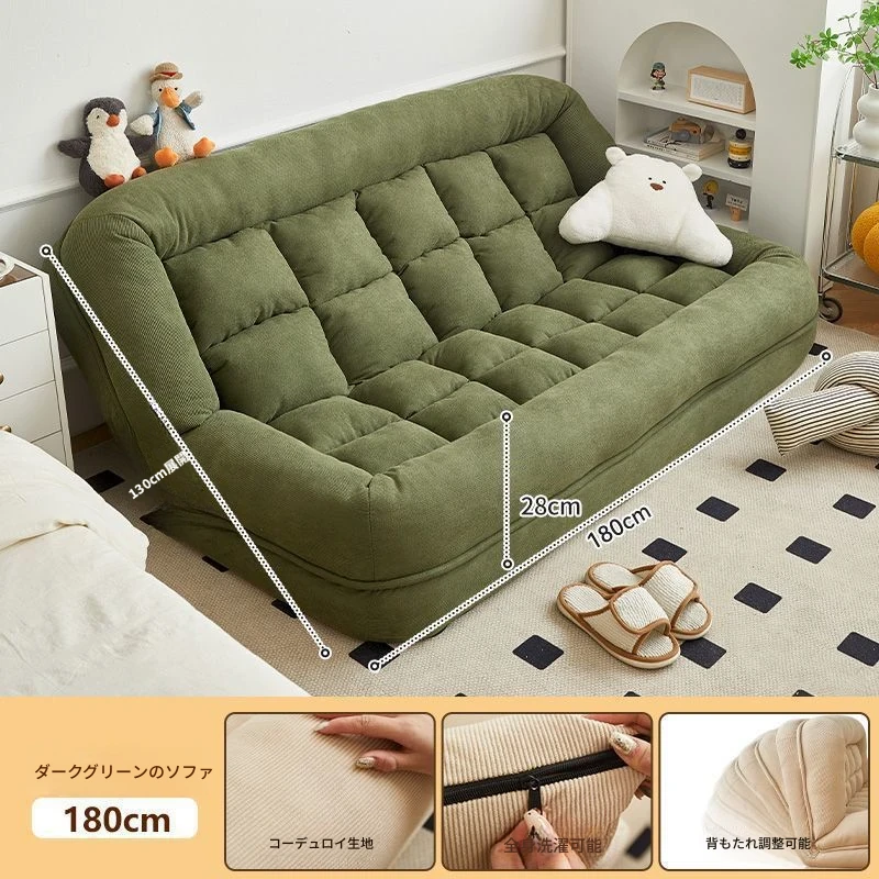 ラグジュアリースタイルxダークグリーン【無料で大クッションx2プレゼント】 超大サイズ【180x130】多段階調整