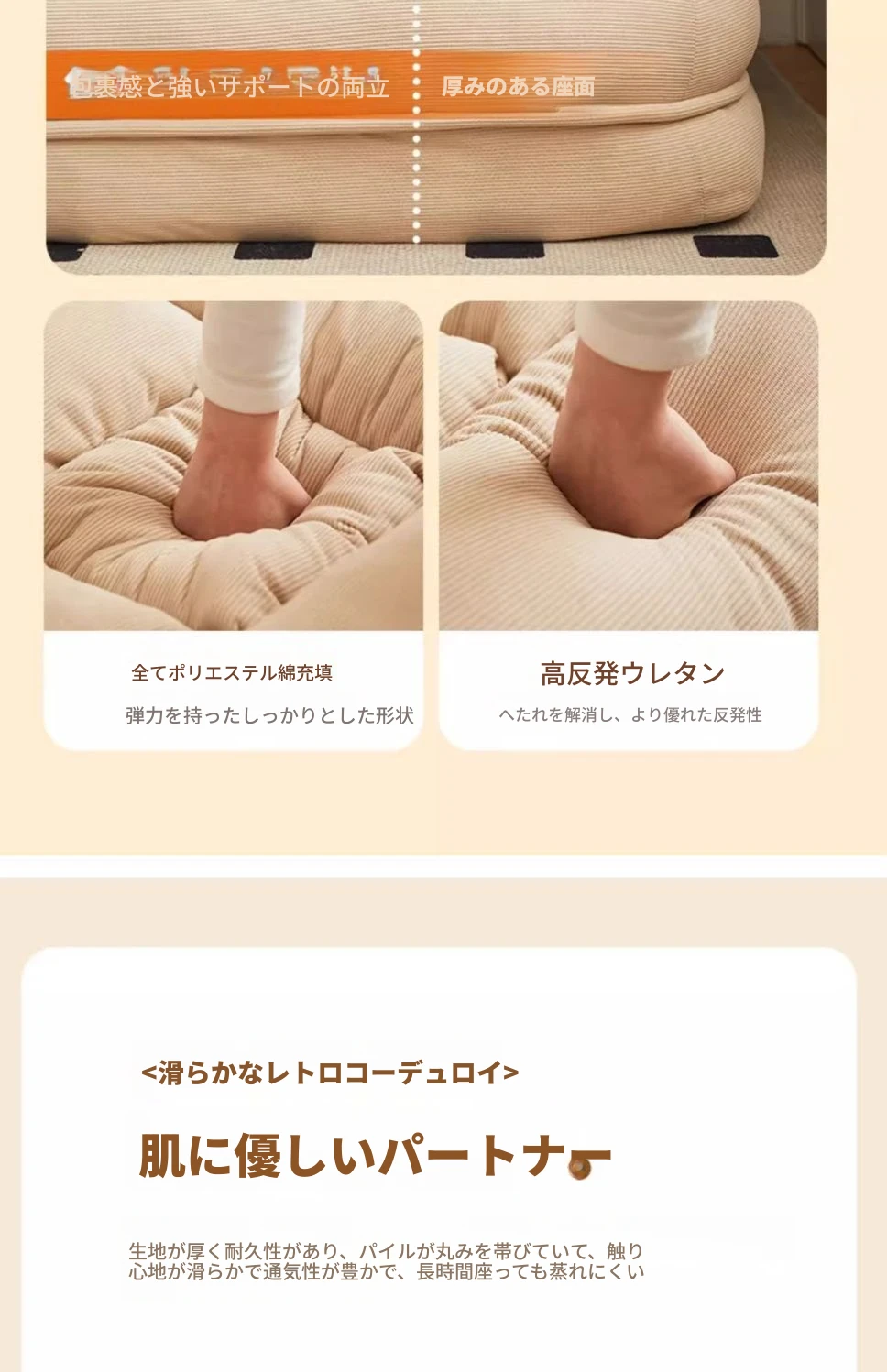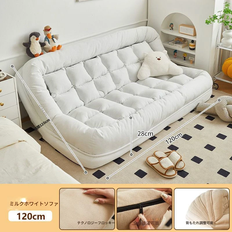 ラグジュアリースタイルxアイボリー【無料で大クッションx2プレゼント】 中サイズ【120x120】多段階調整