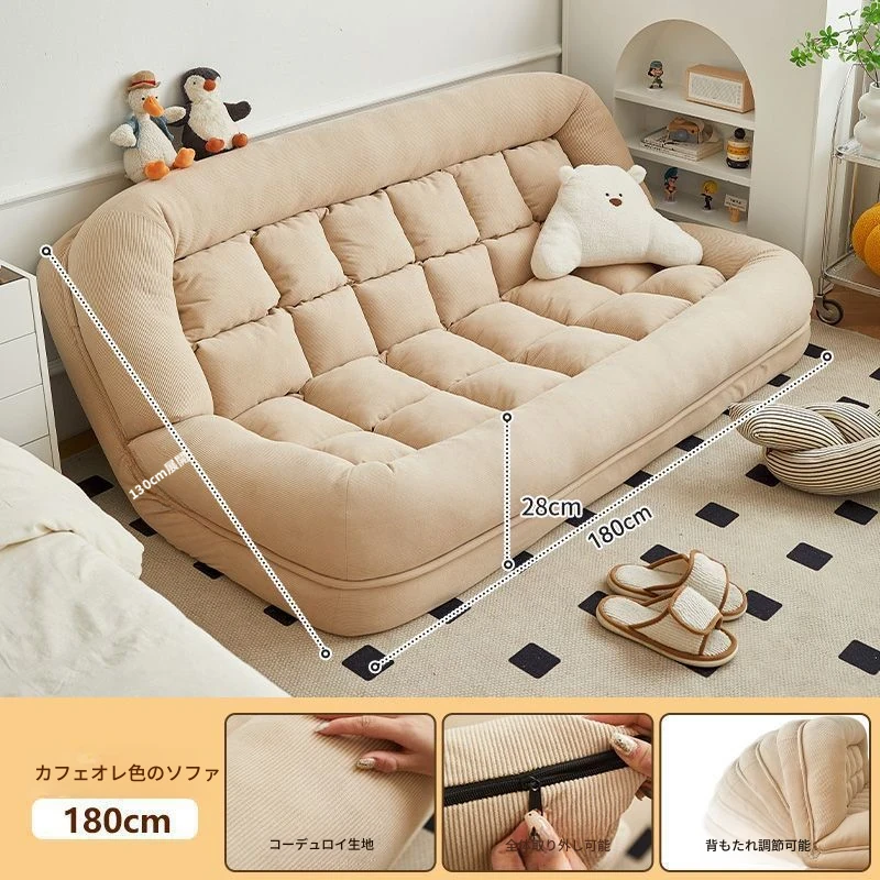 ラグジュアリースタイルxベージュ【無料で大クッションx2プレゼント】 超大サイズ【180x130】多段階調整