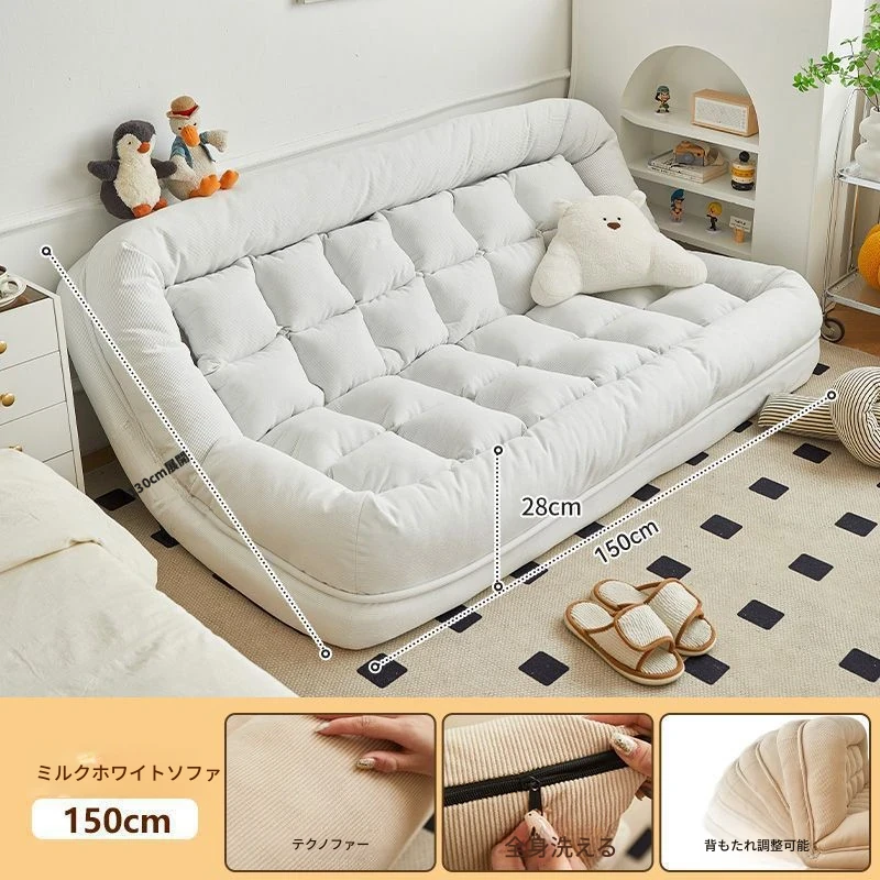 ラグジュアリースタイルxアイボリー【無料で大クッションx2プレゼント】 大サイズ【150x130】多段階調整