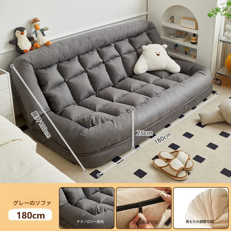 ラグジュアリースタイルx暖かいグレー【無料で大クッションx2プレゼント】 超大サイズ【180x130】多段階調整