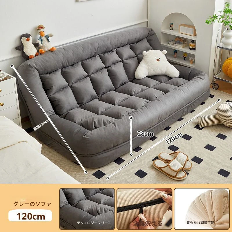 ラグジュアリースタイルx暖かいグレー【無料で大クッションx2プレゼント】 中サイズ【120x120】多段階調整