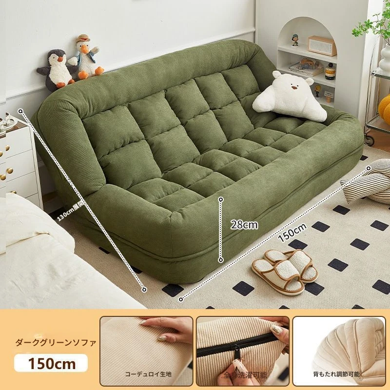 ラグジュアリースタイルxダークグリーン【無料で大クッションx2プレゼント】 大サイズ【150x130】多段階調整