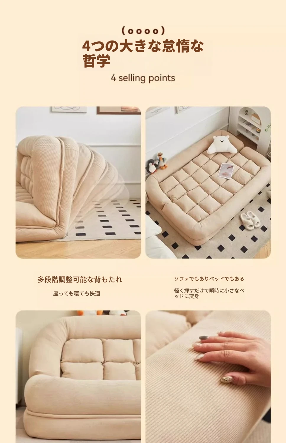 ラグジュアリースタイルxベージュ【無料で大クッションx2プレゼント】 中サイズ【120x120】多段階調整