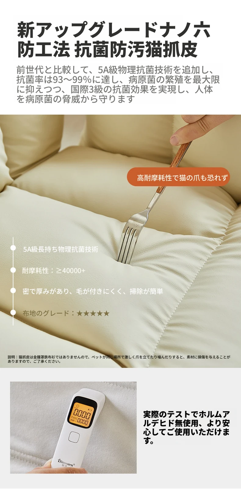 ラグジュアリー【クリームホワイト-キャットスクラッチレザー】耐摩耗性&耐引っかき性