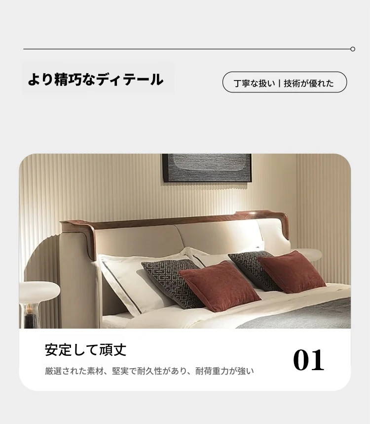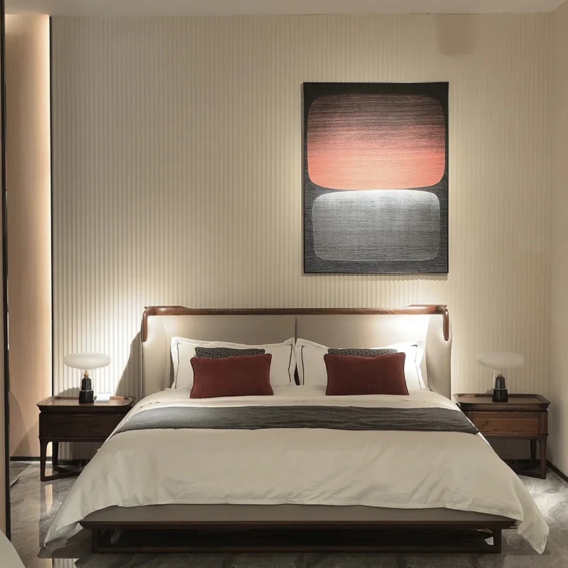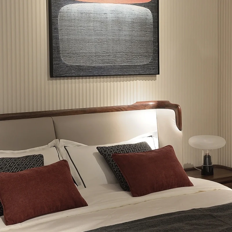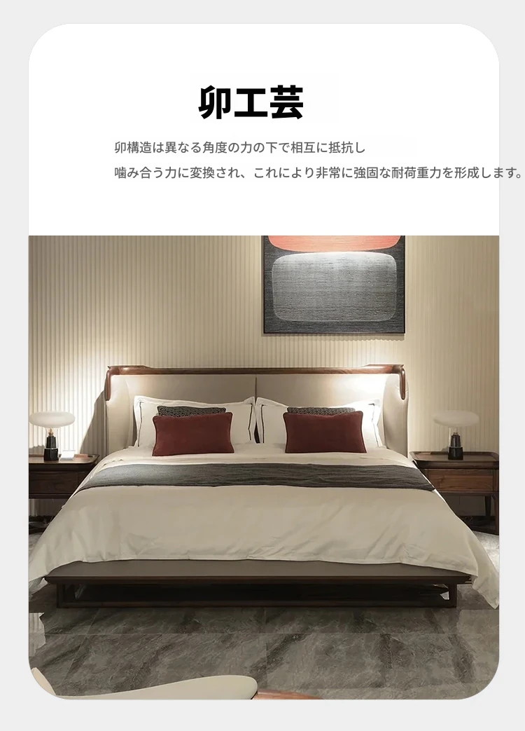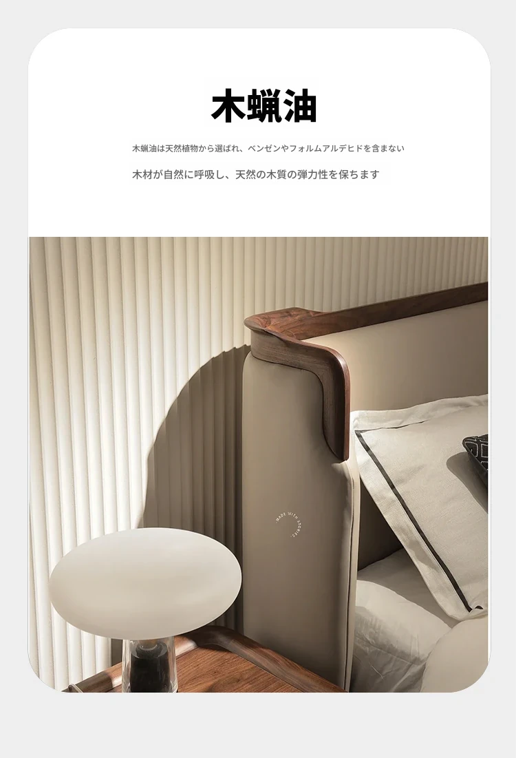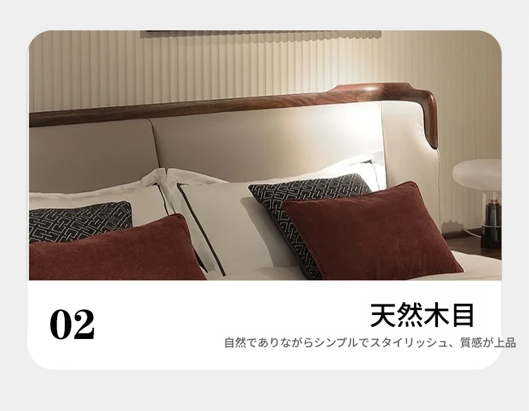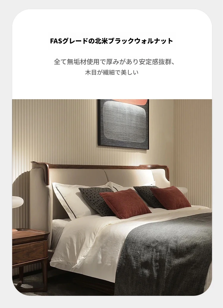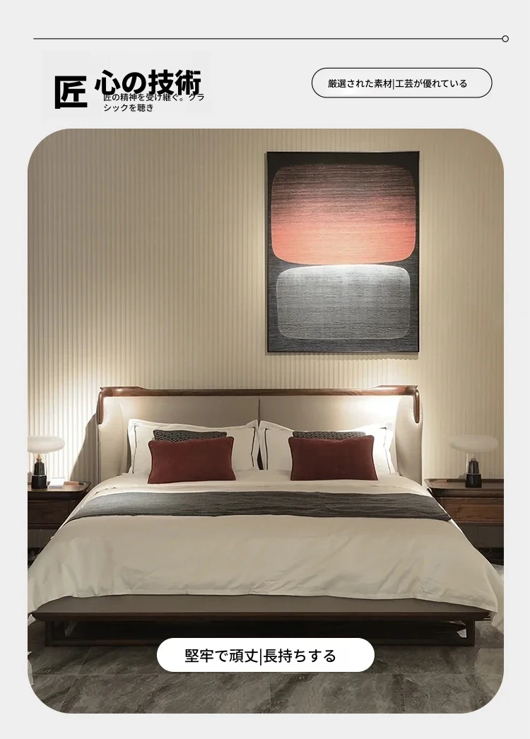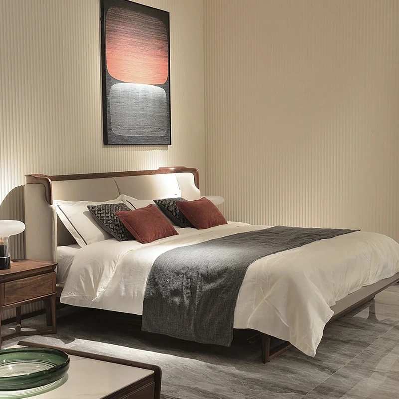 新中式スタイル主寝室用高級ダブルベッド2025年新作!高級レザーソフトパック&ウォールナット材使用、贅沢な空間を演出する軽奢ベッド。あなたの夢の寝室を実現します!