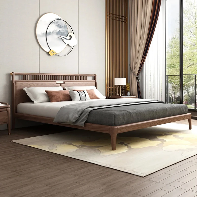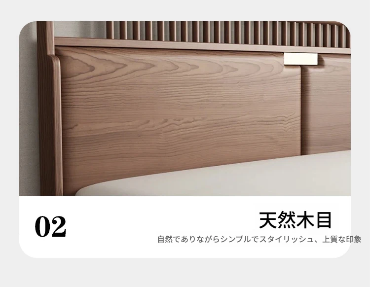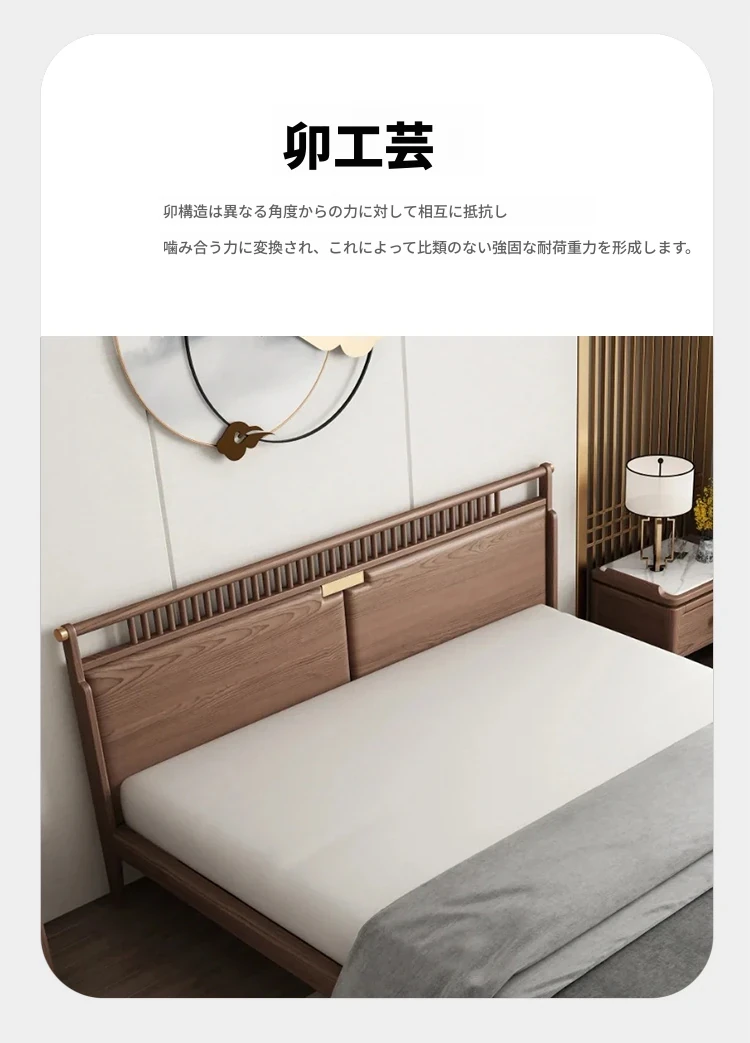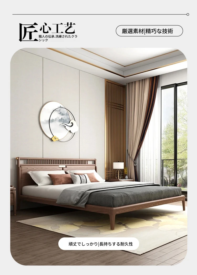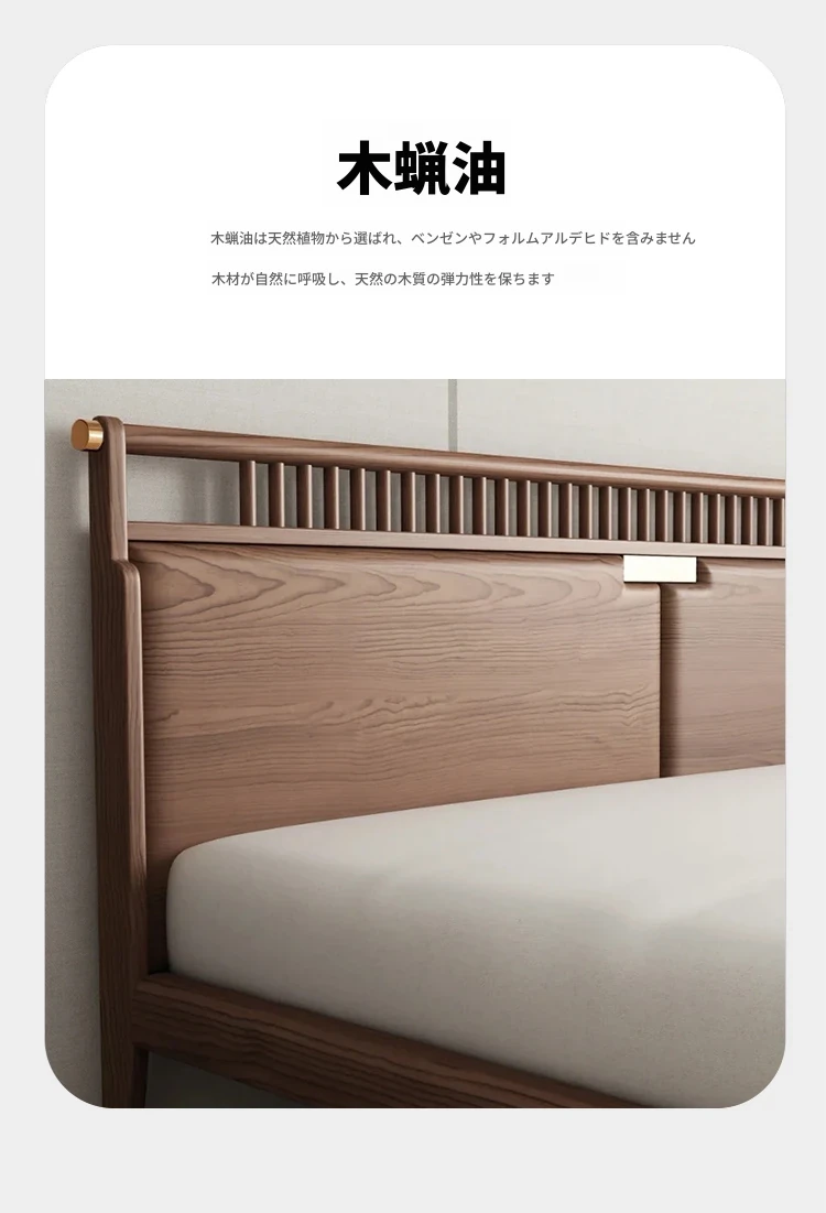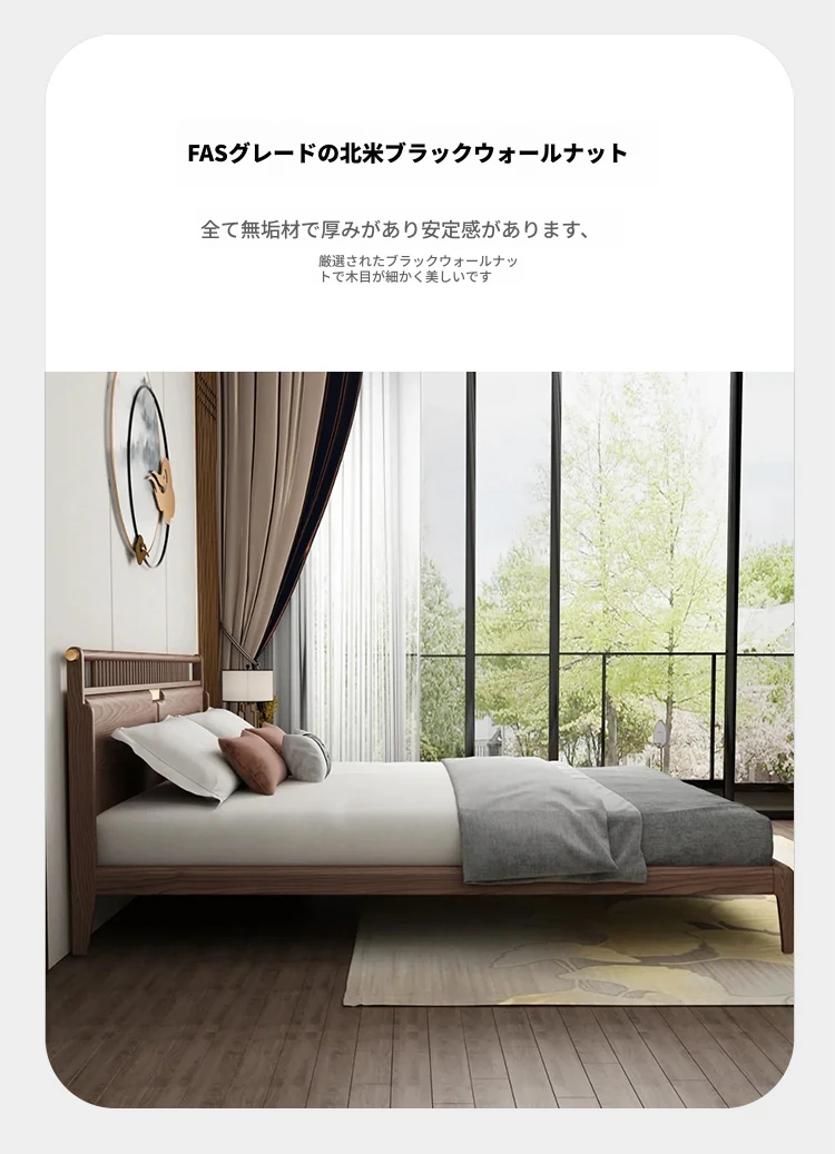 高級感あふれるダブルベッド!2025年新作、ウォールナット材使用の1.8m幅ソフトレザー付きベッド。主寝室にぴったりな洗練されたデザインで、心地よい眠りを提供します。