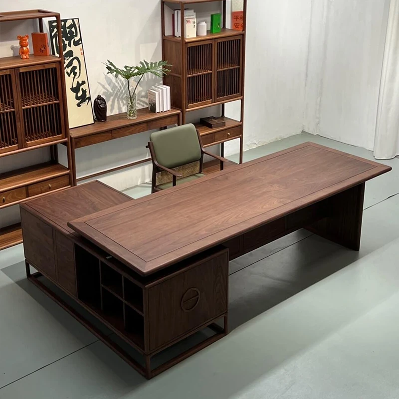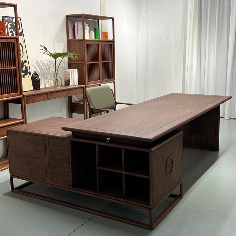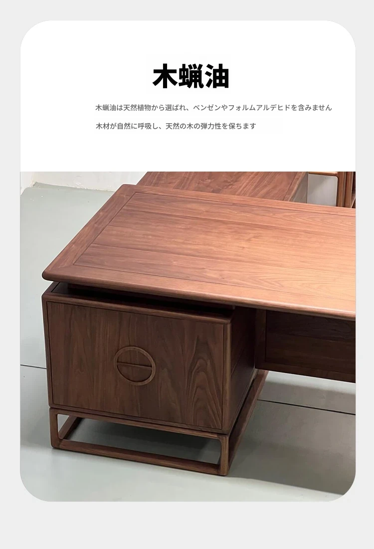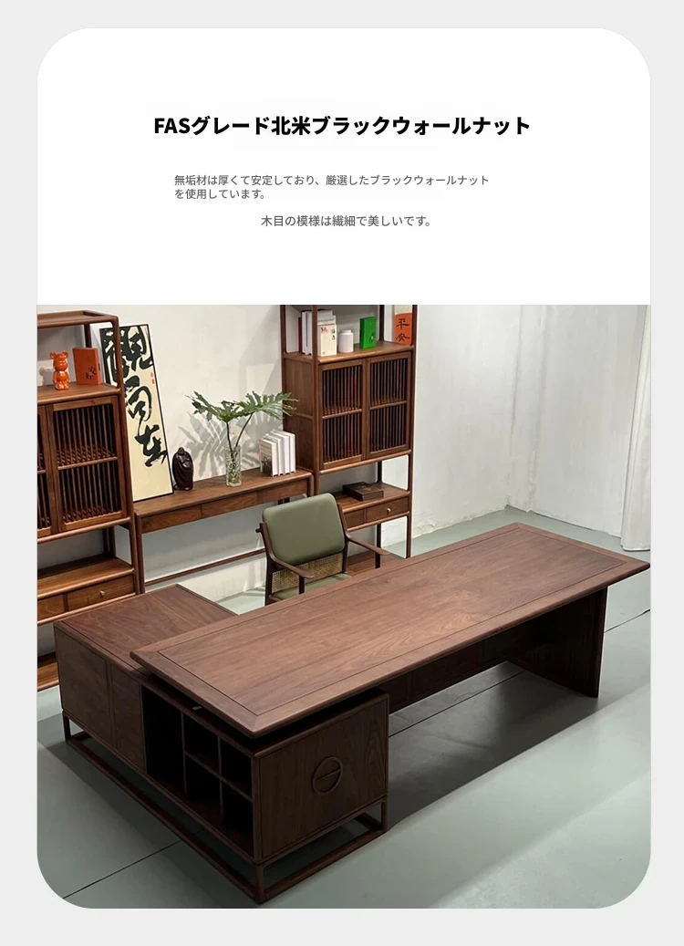 2025新作!新中式スタイルのオフィスデスク&チェアセット - シンプルでエレガントな無垢材使用、ウォールナットの社長デスク。快適な作業環境を提供し、ビジネスの成功をサポートします!