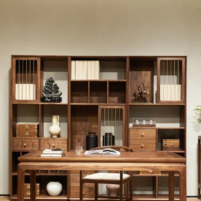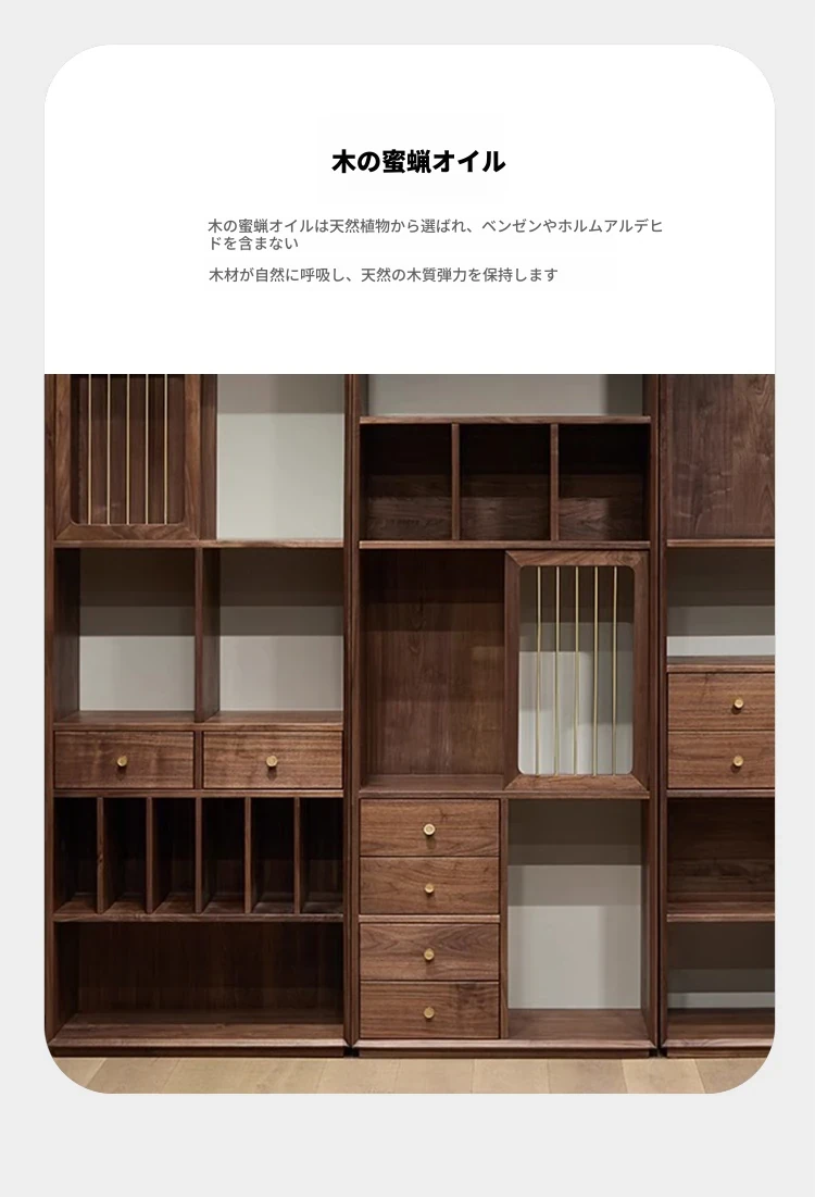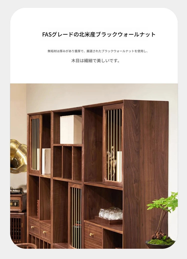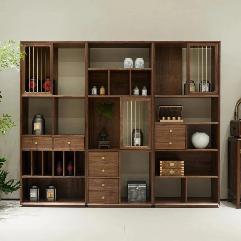 多宝阁2025年新作!シンプルなデザインの実木製展示キャビネット。茶葉や茶室に最適!胡桃の木を使用した新中式の博古架。おしゃれで機能的、あなたのインテリアにぴったり!