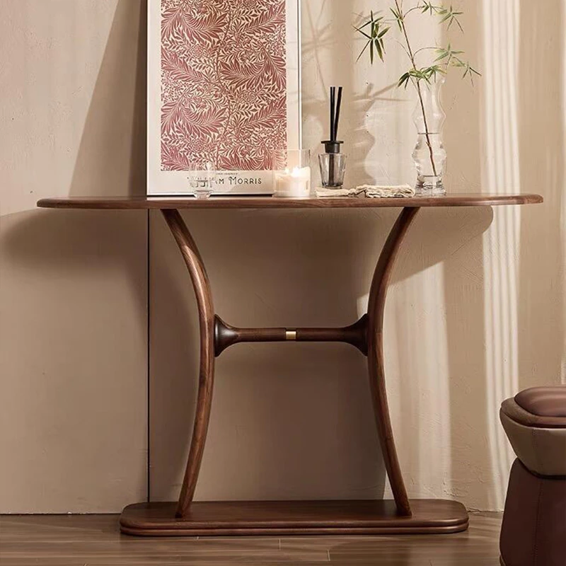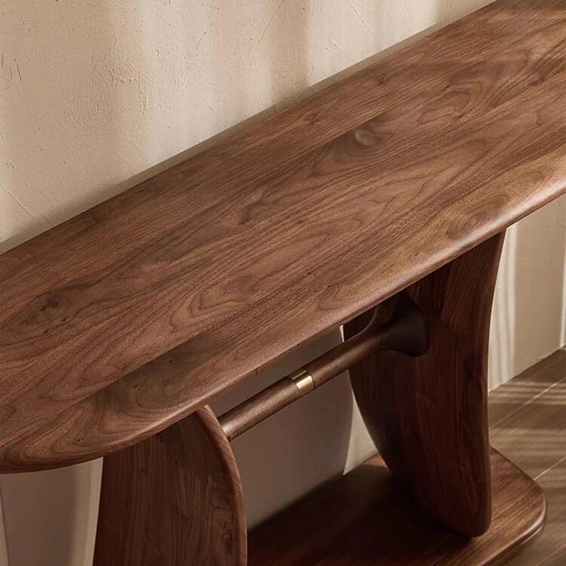 2025年新作!新中式デザインの玄関テーブル - モダンでシンプルな無垢材製、ウォールナット仕上げの家庭用エントランスキャビネット。スタイリッシュな収納で、あなたの玄関を華やかに彩ります!