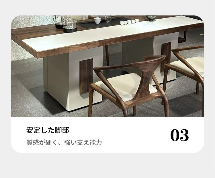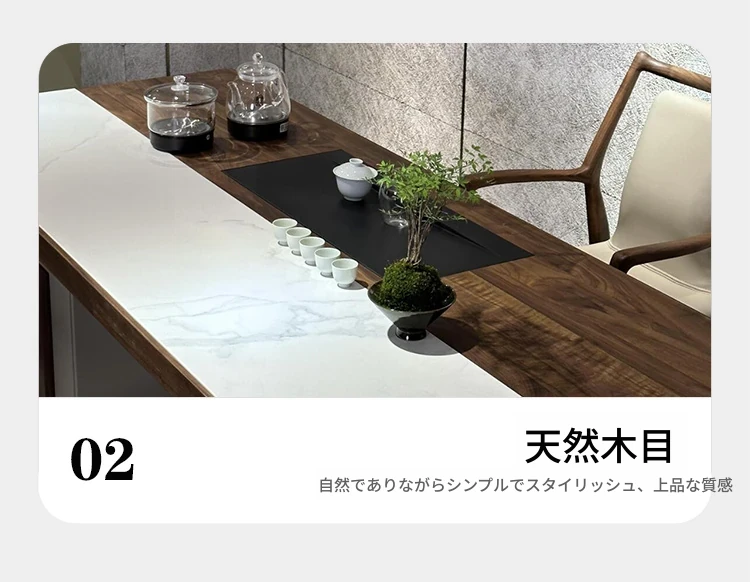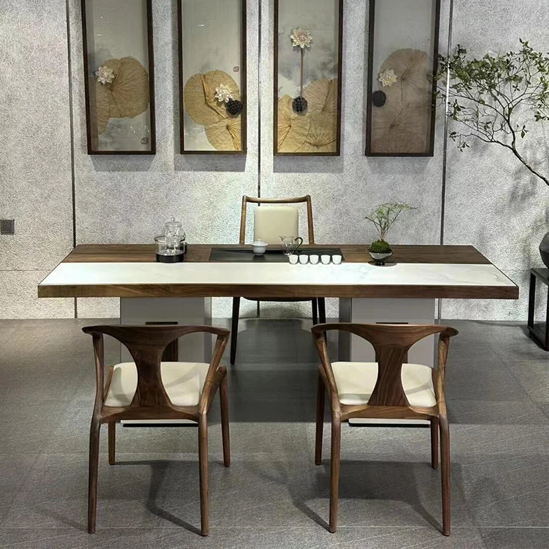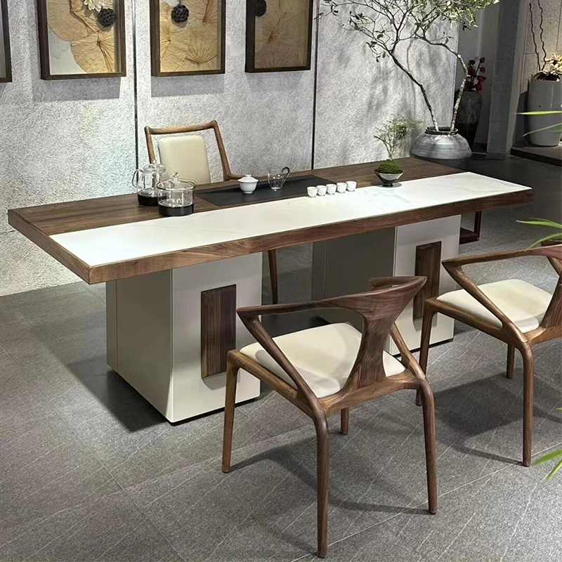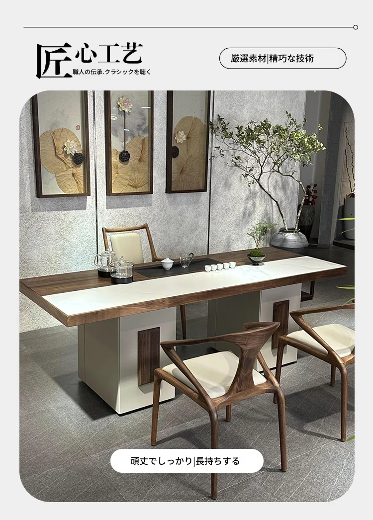 2025年新作!高級感あふれる現代的な岩板茶卓 - 胡桃の木を使用した新中式スタイルの実木製ティーテーブルで、あなたのリビングルームを格上げ!お茶を楽しむひとときを、贅沢に演出します。