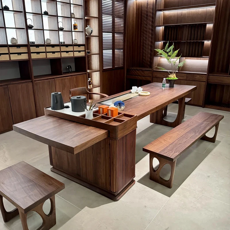 2025年新款!モダンでラグジュアリーな胡桃木製のティーテーブル。上質な素材と洗練されたデザインで、リビングにぴったりの新中式スタイルの茶台。家でのリラックスタイムを演出します!